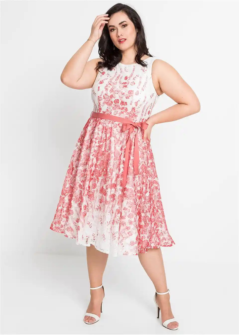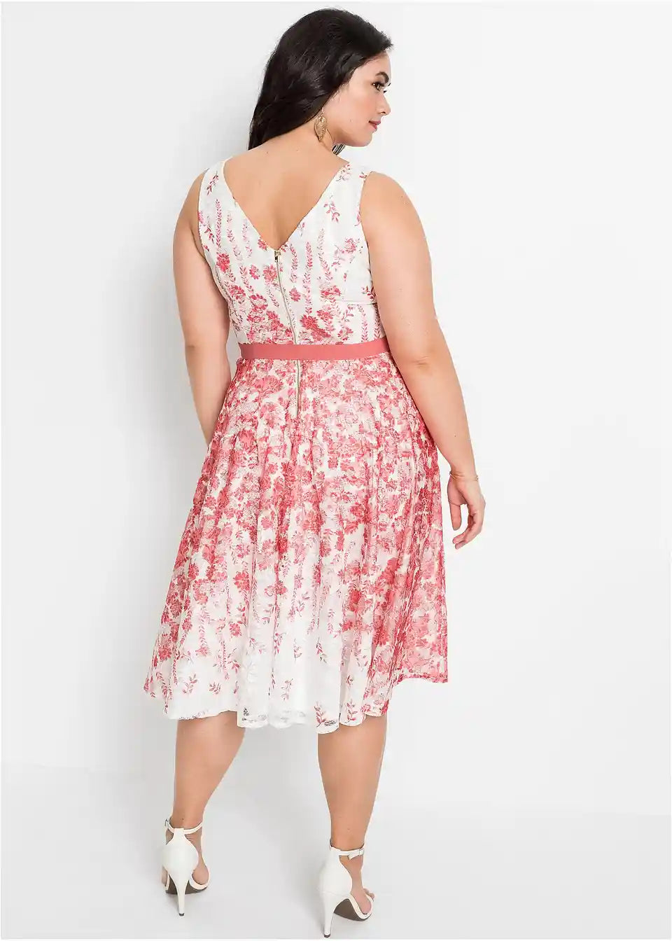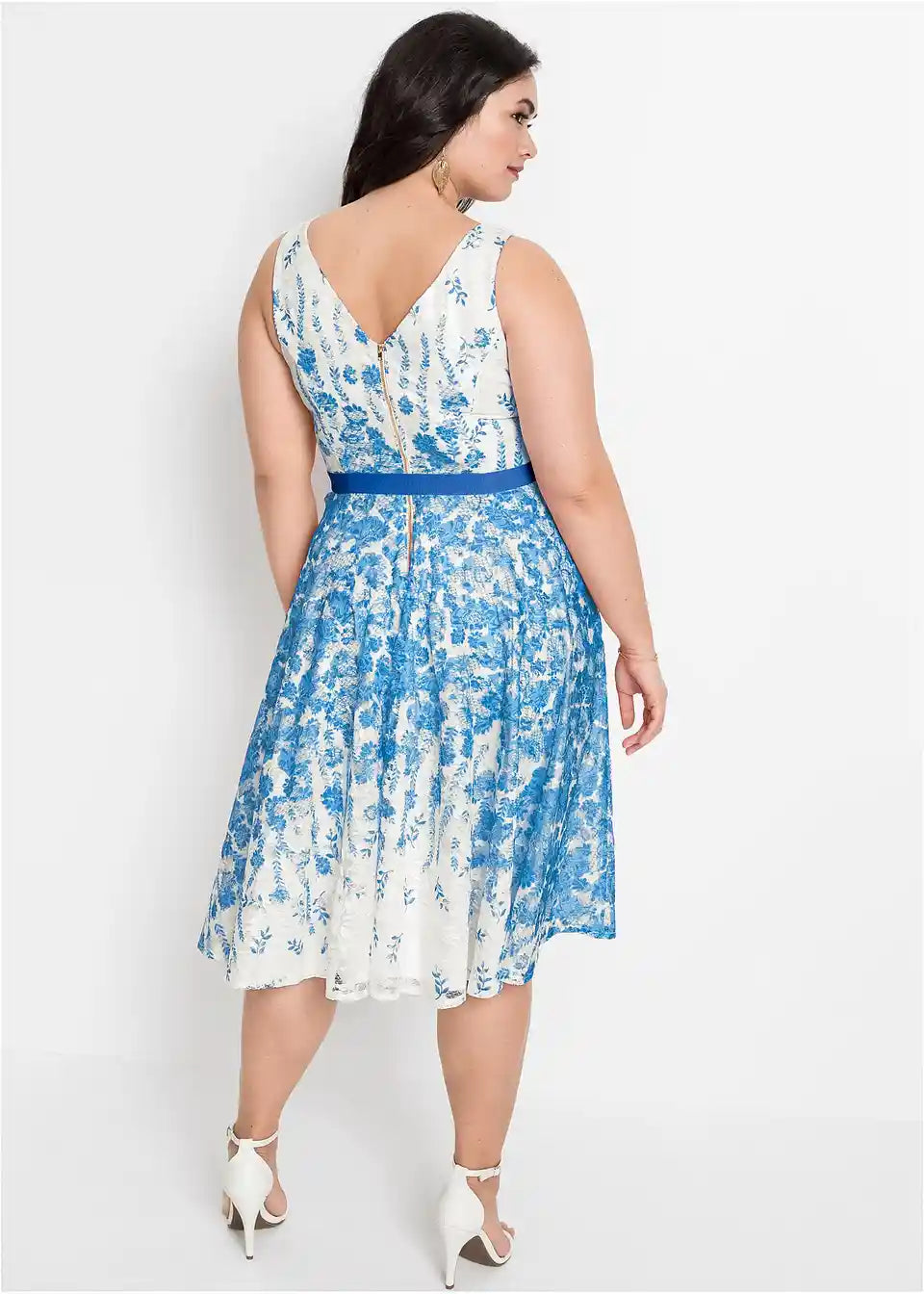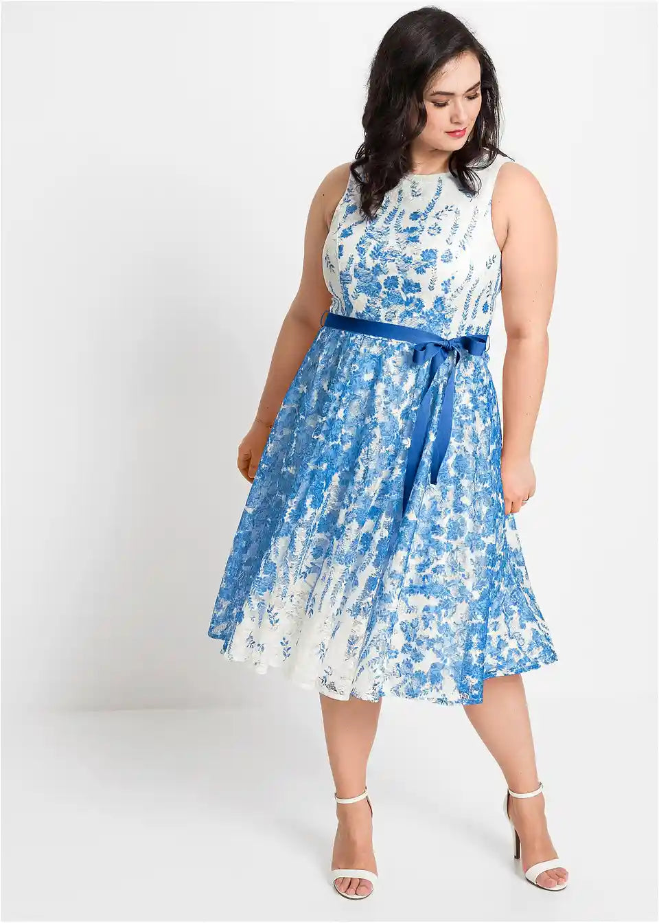 Romantično i ženstveno: Lepršava midi haljina od čipke s vezicom od sjajnog satena u struku