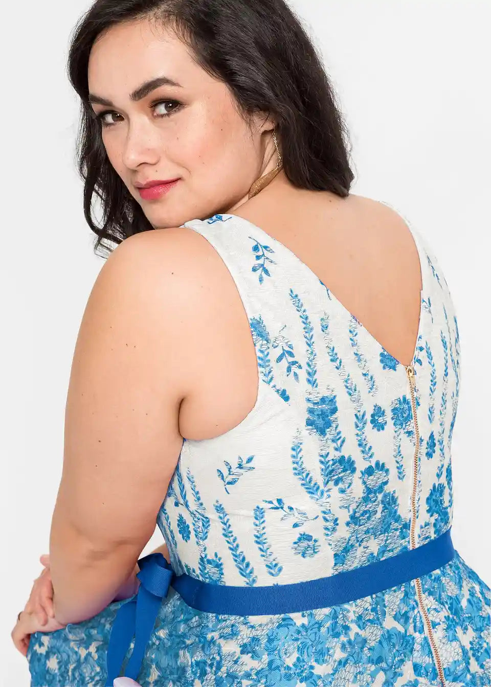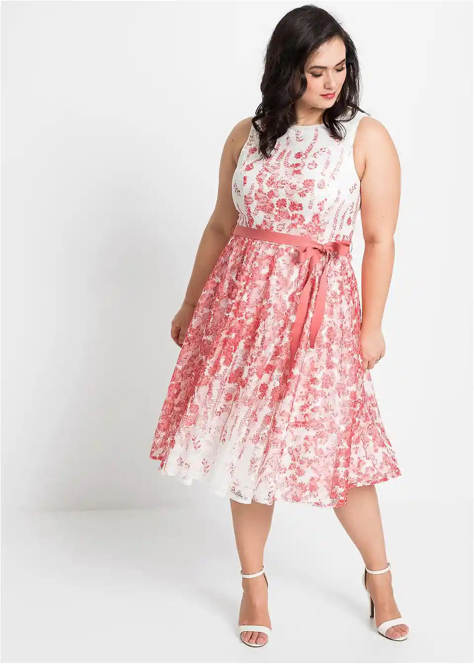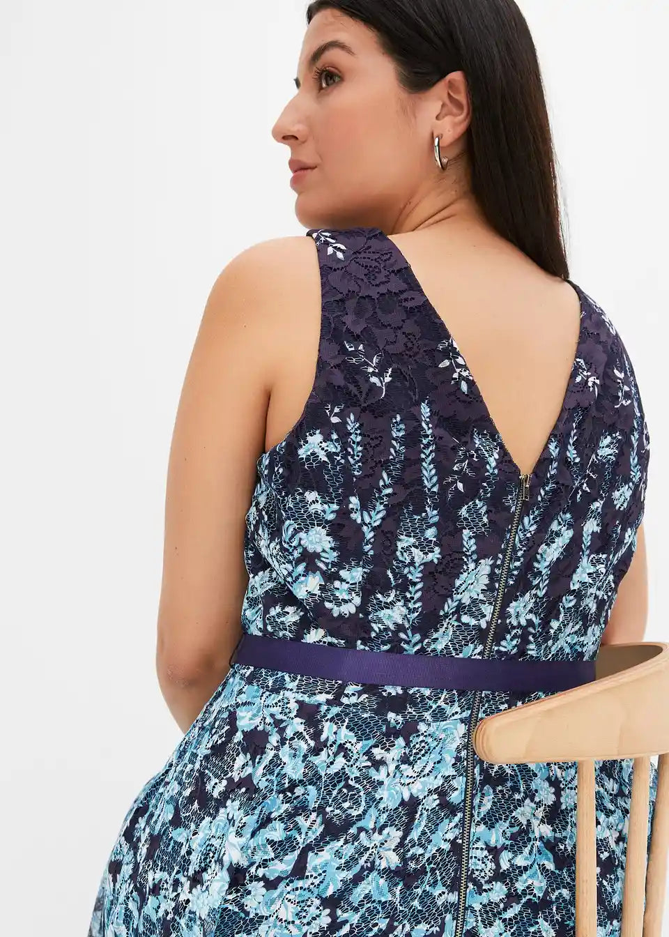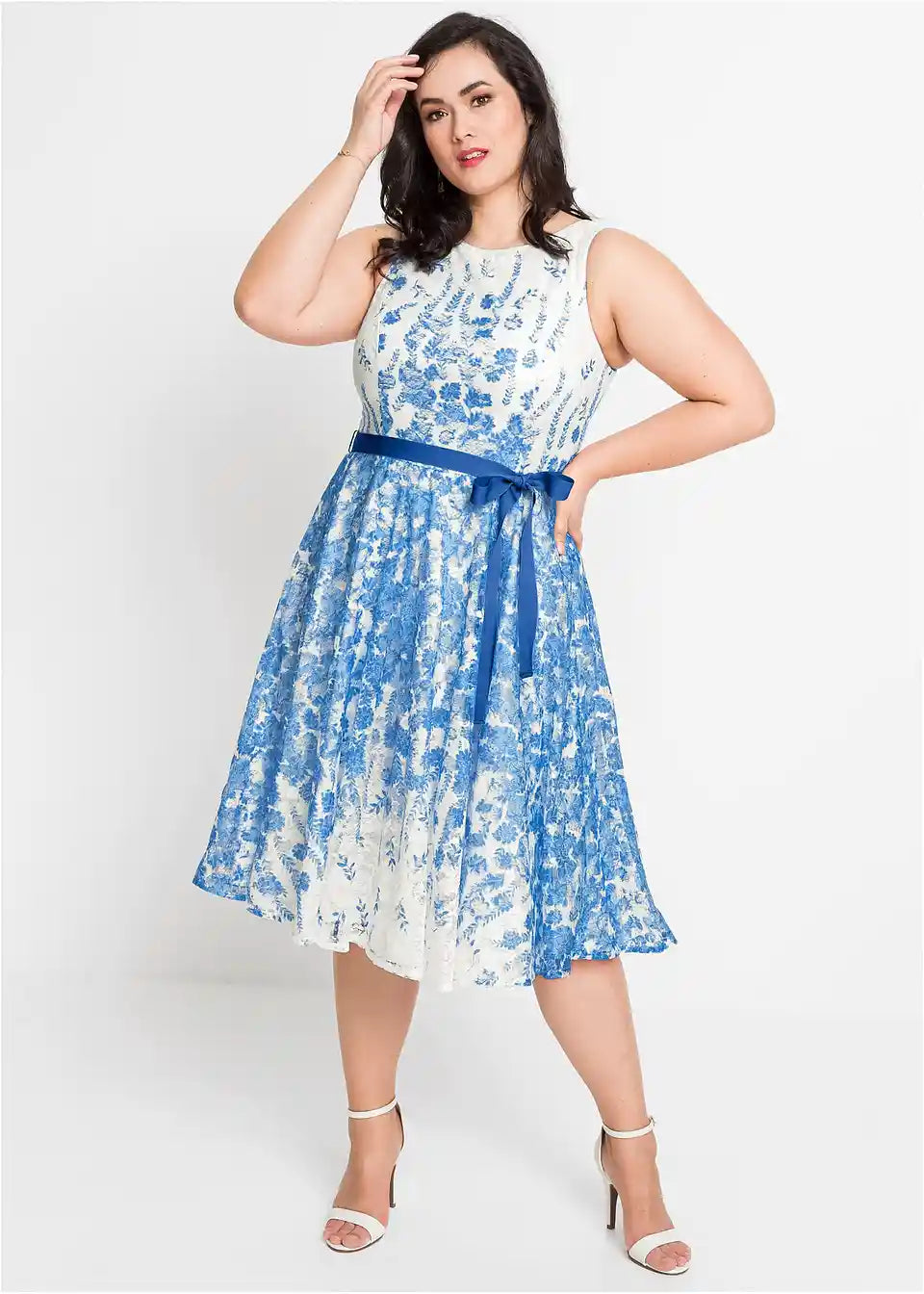 Romantično i ženstveno: Lepršava midi haljina od čipke s vezicom od sjajnog satena u struku
