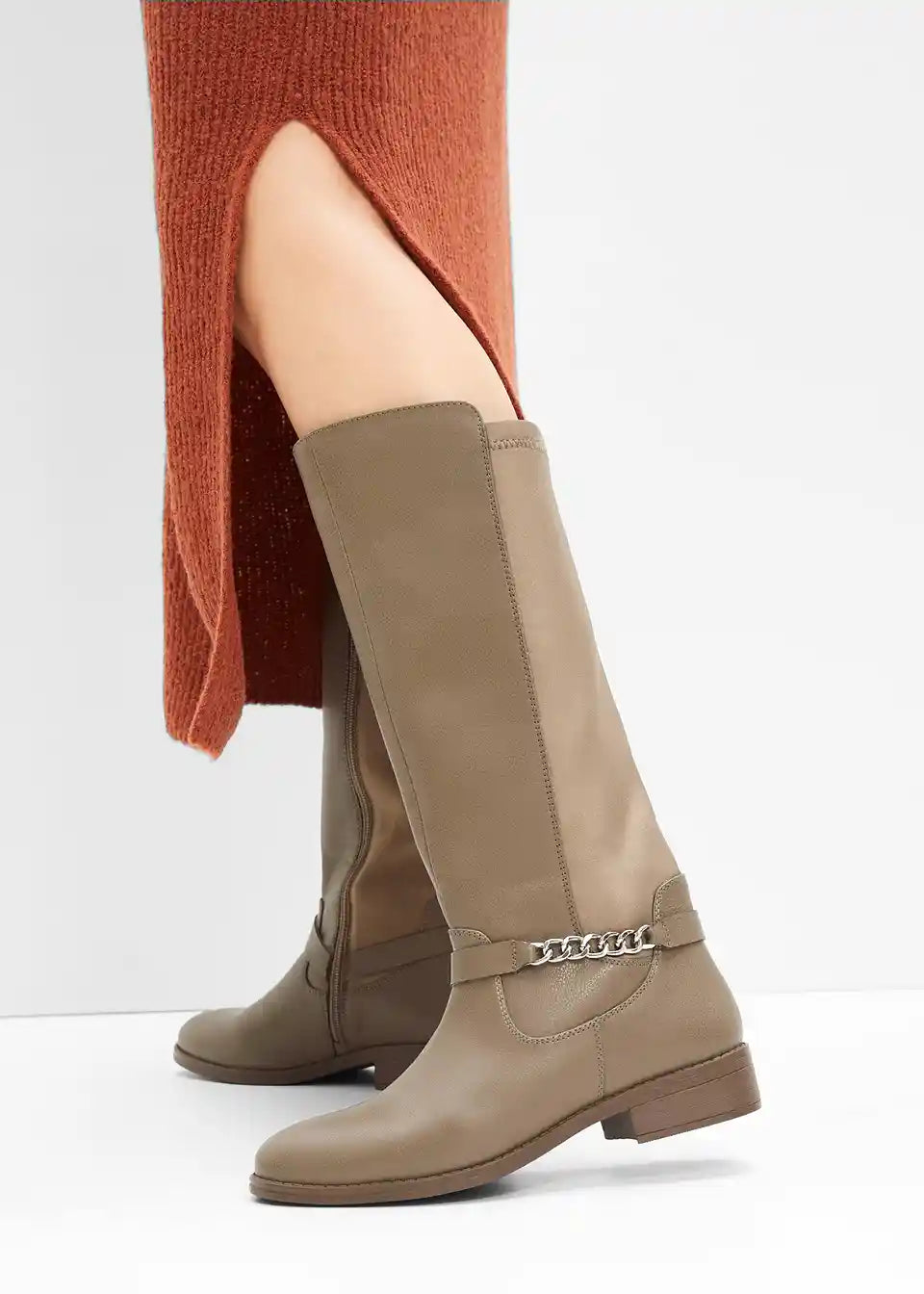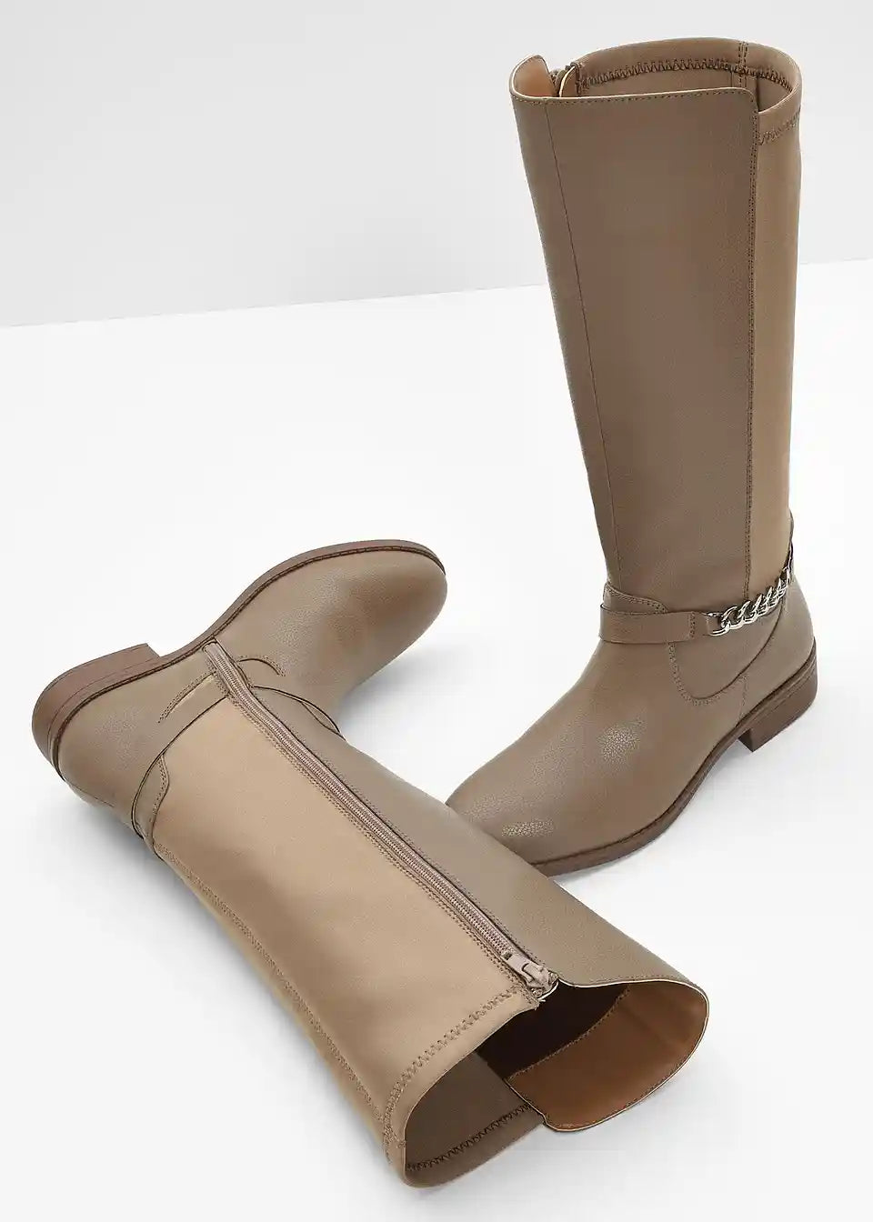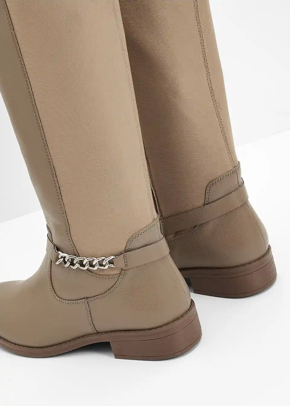 Udobna čizma s širokim sarom i dekorativnim lancem