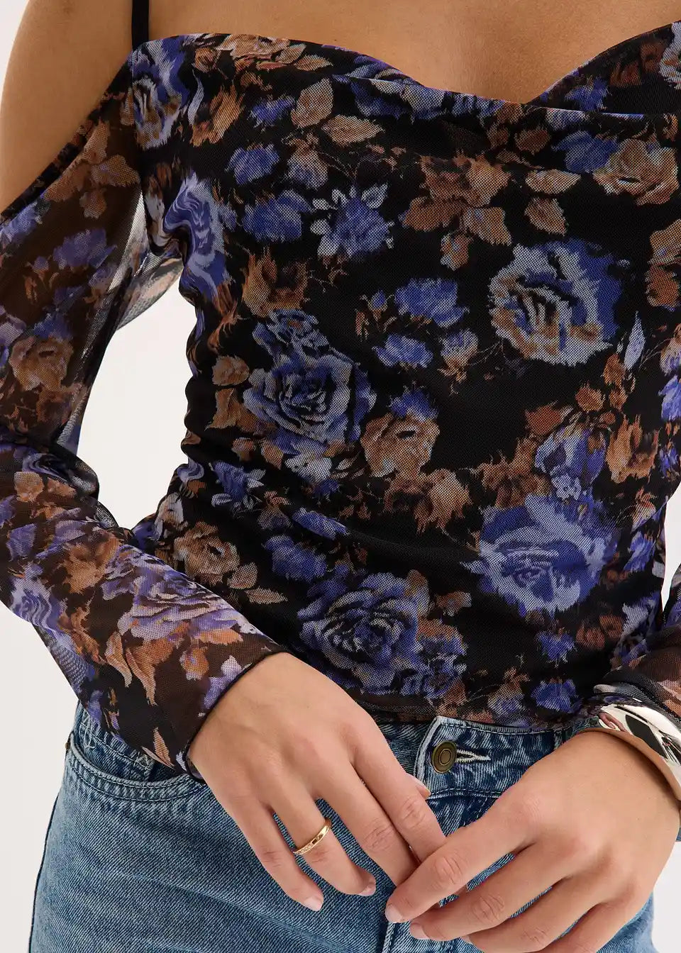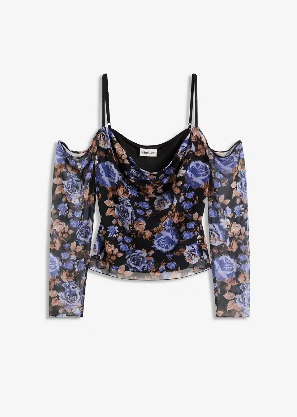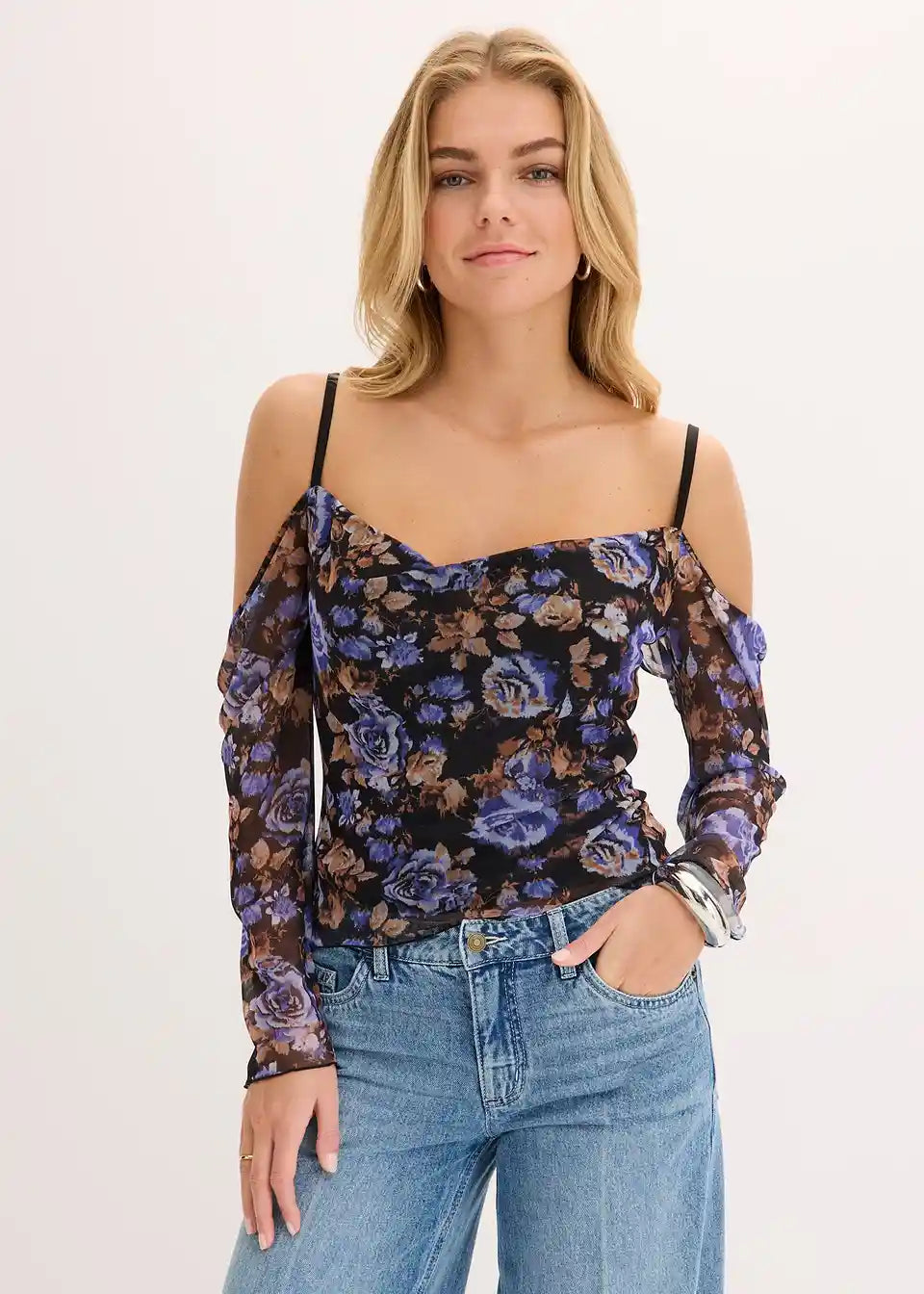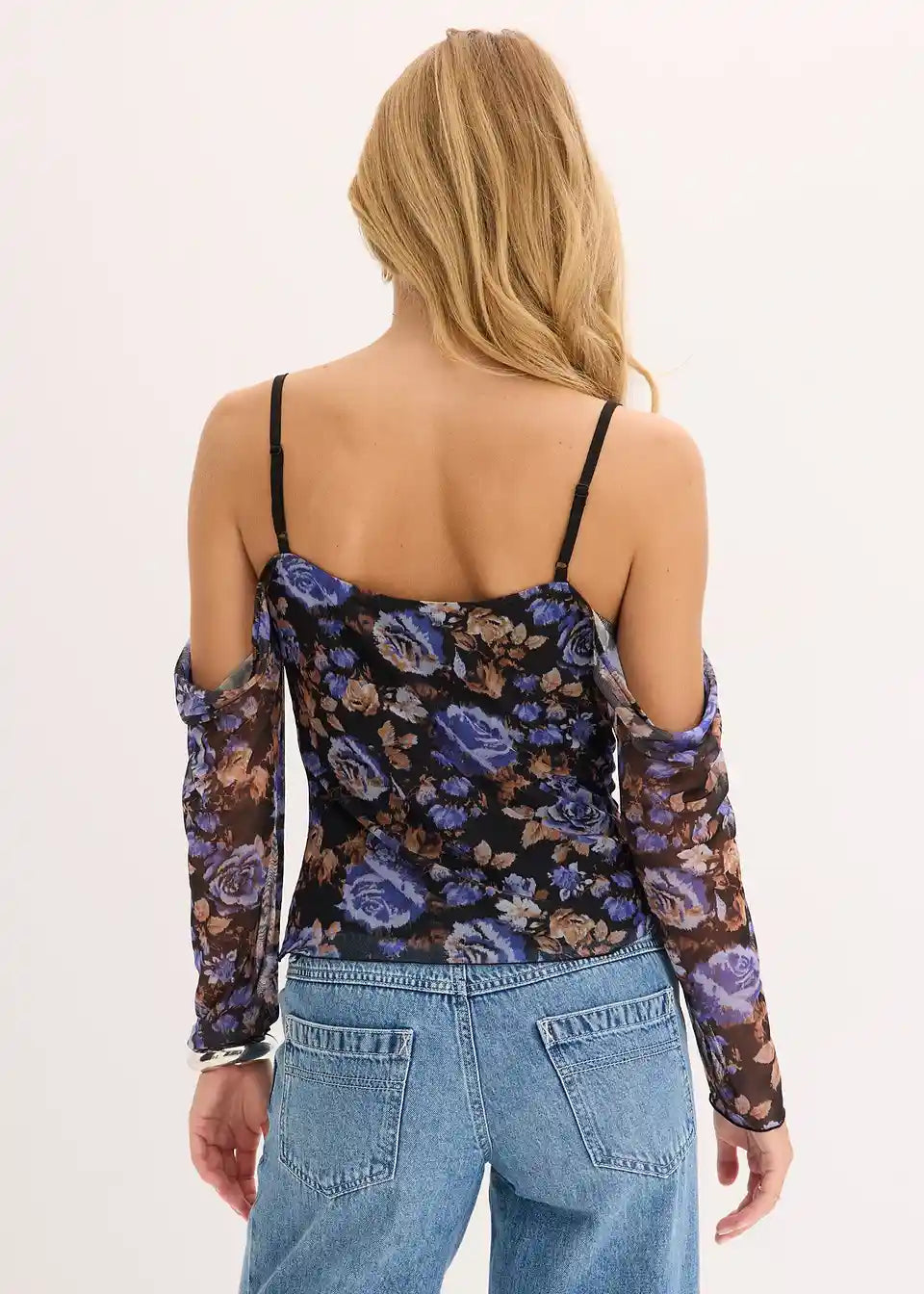 Majica s otvorenim ramenima od laganog mrežastog materijala