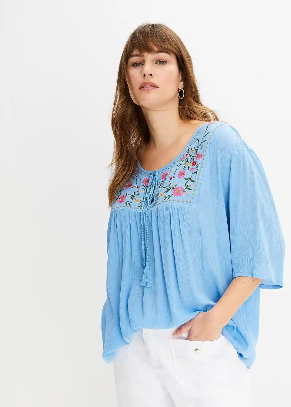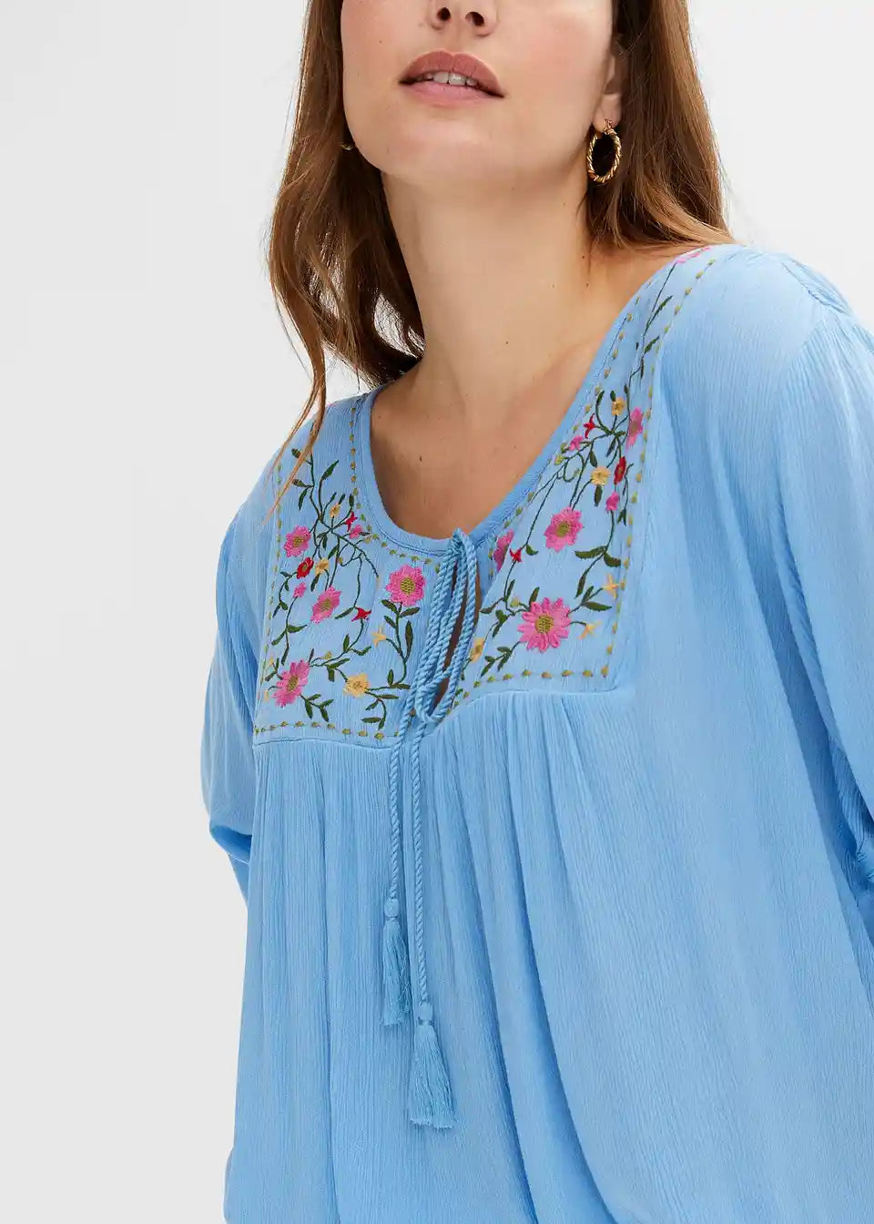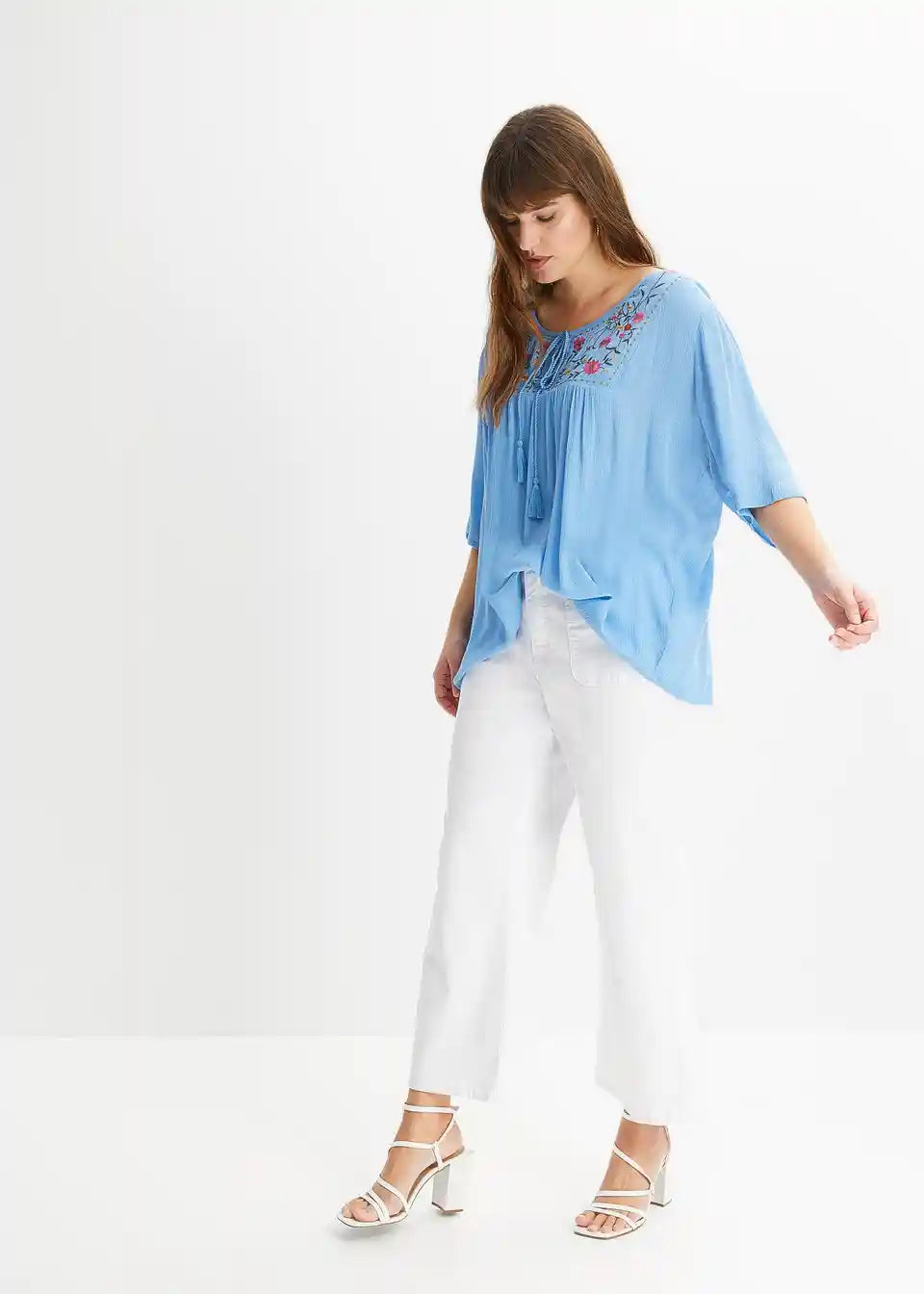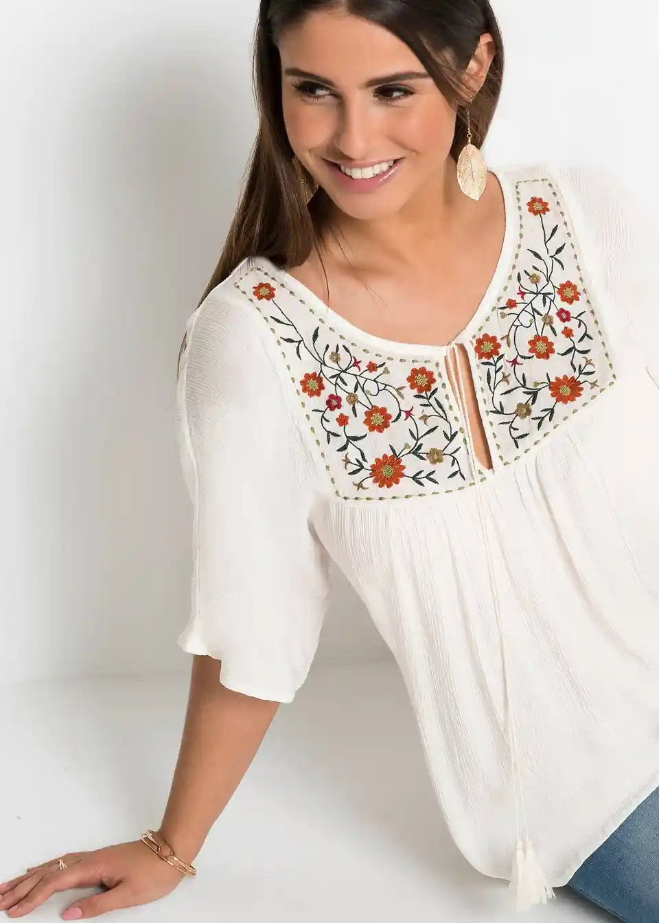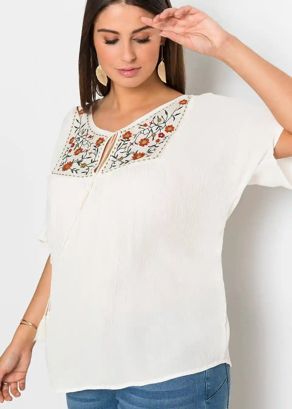 Moderna tunika s ukrašenim dekolteom i vezicama za vezanje