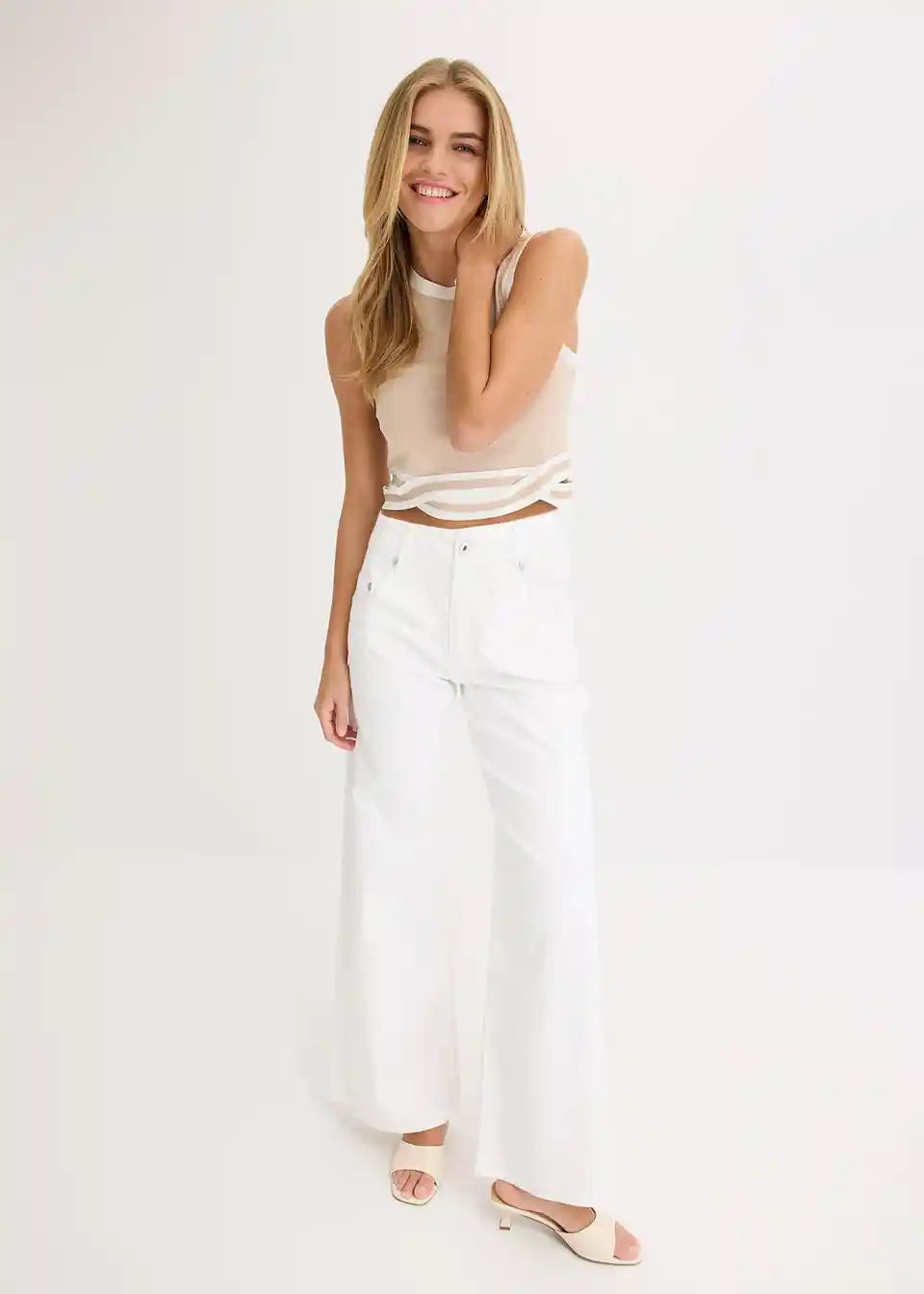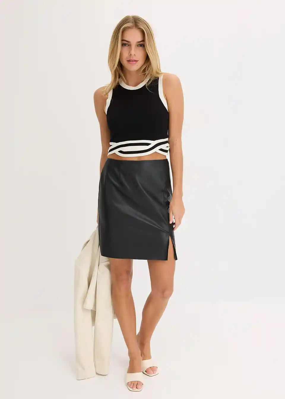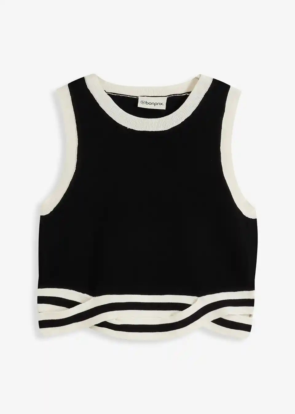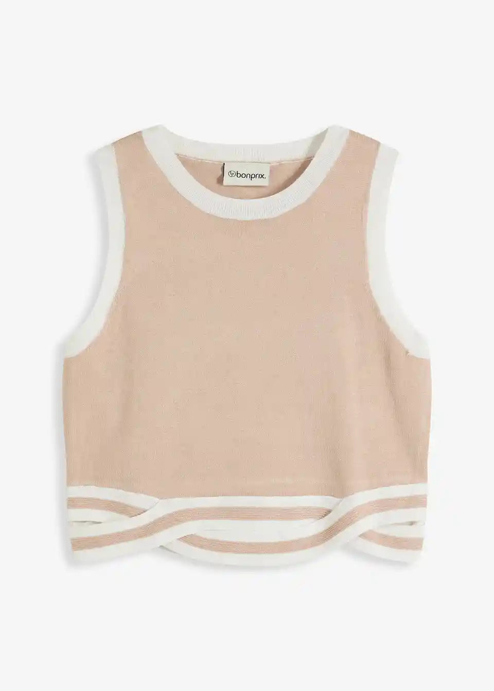 Kratka pletena majica bez rukava sa zarolanim rubom