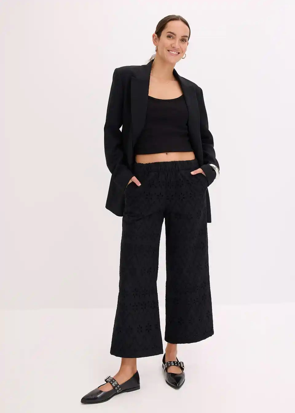 Culotte hlače s rupičastim vezom