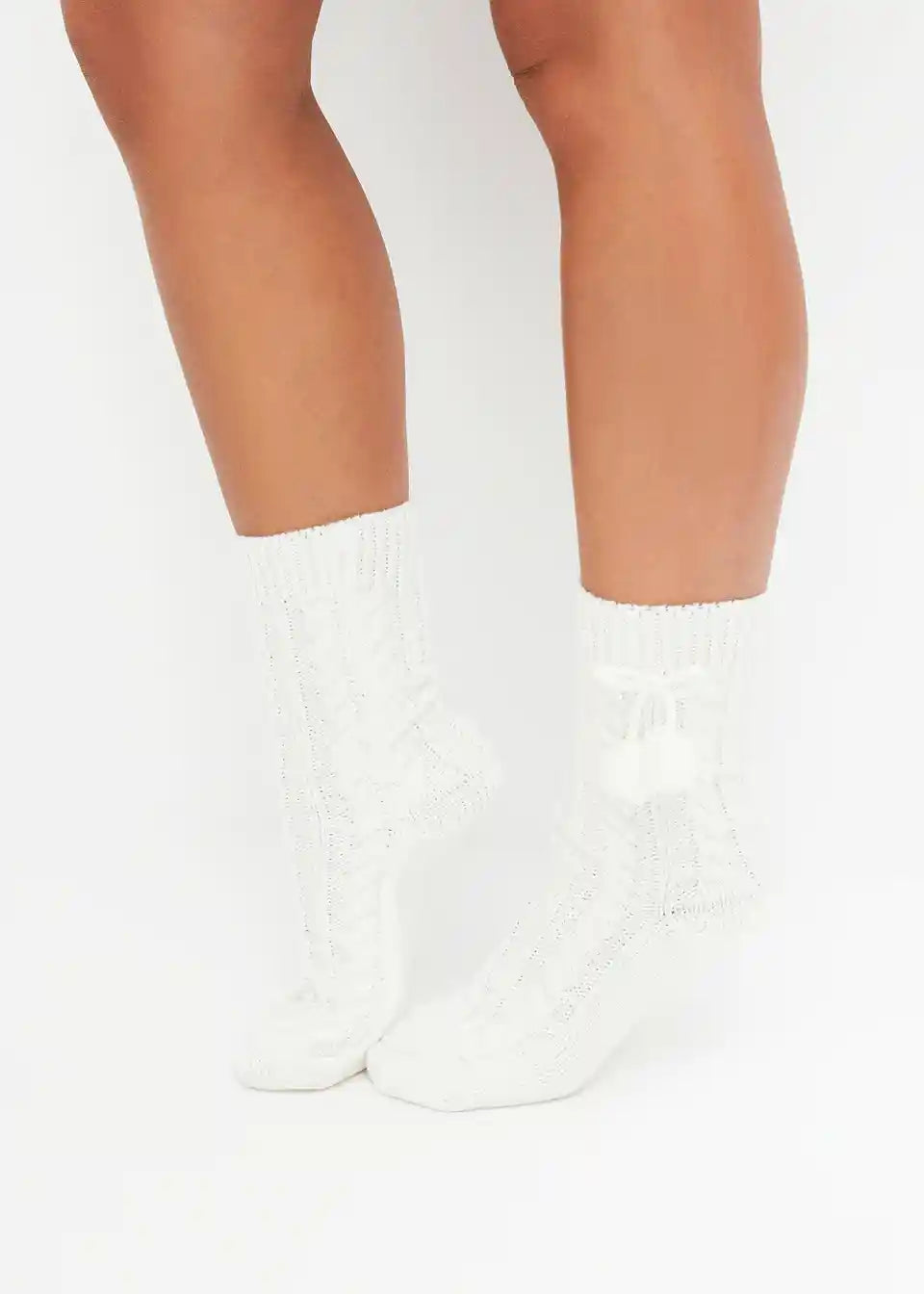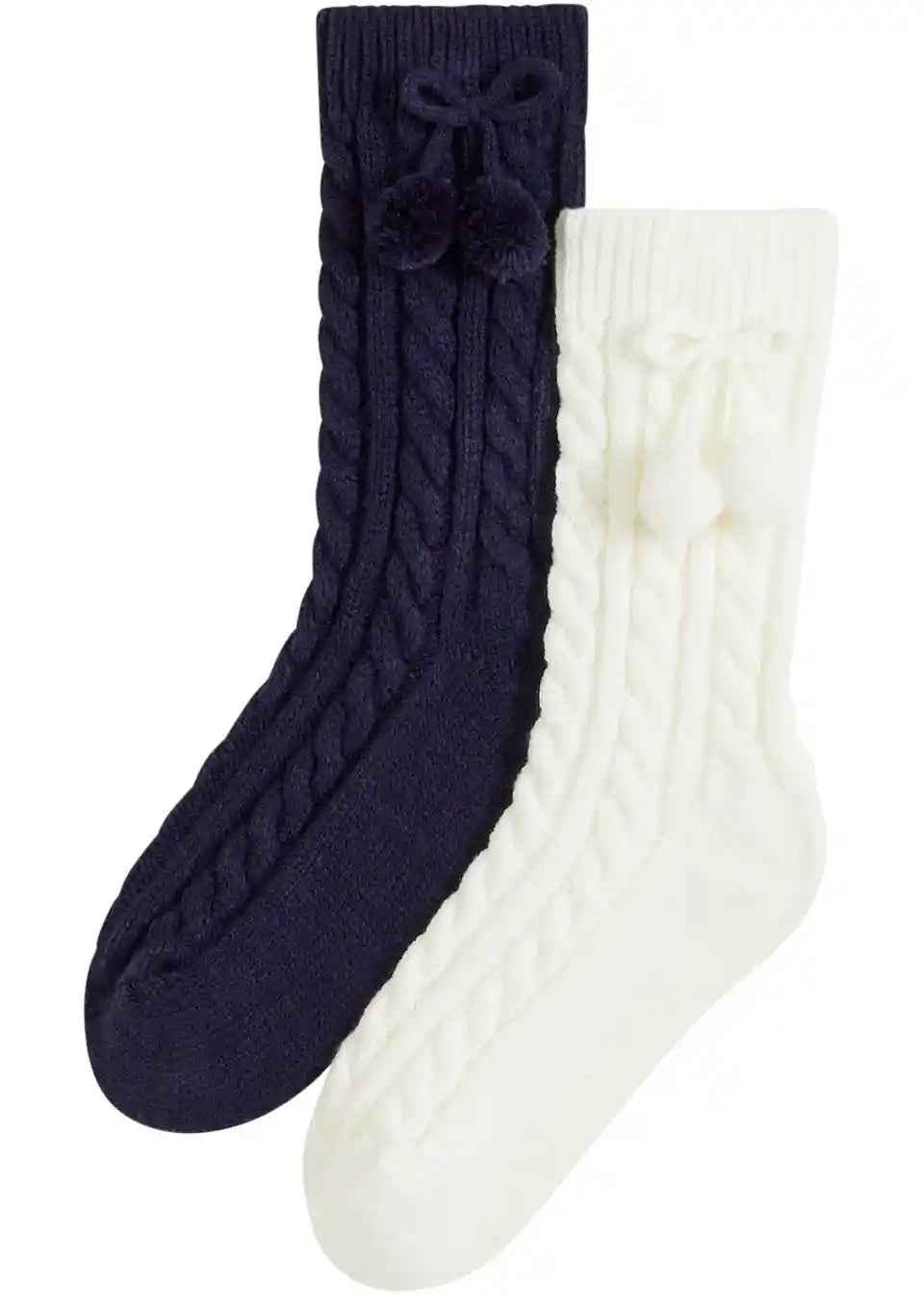 Debele udobne čarape s pletenim uzorkom u dvostrukom pakiranju