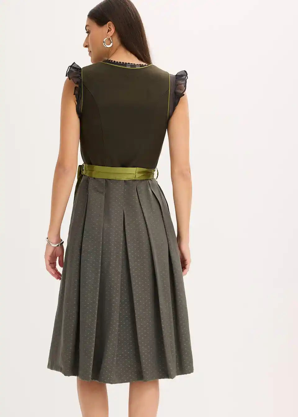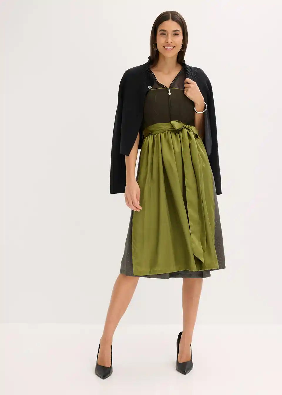 Moderno i ženstveno: Dirndl s gornjim dijelom od mješavine lana i suknjom od žakarda te pregačom od sjajnog satena.