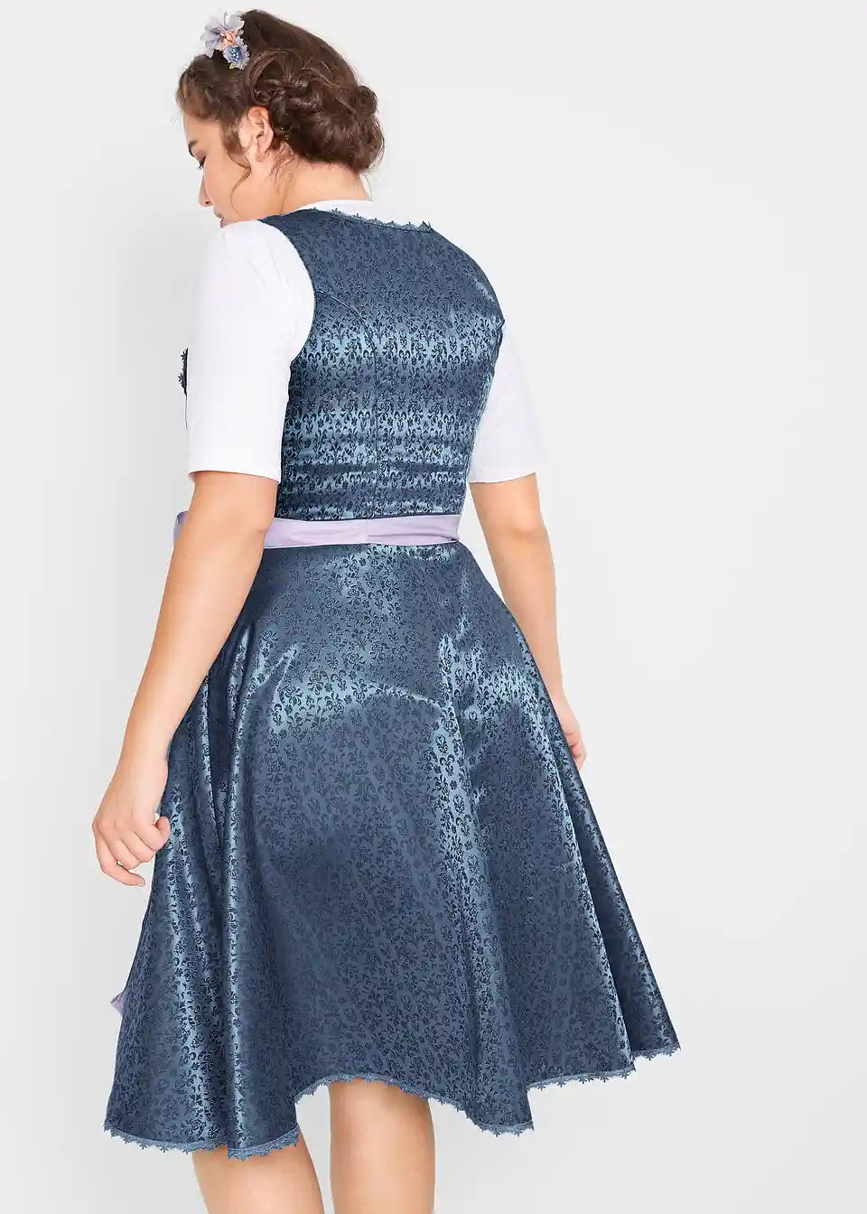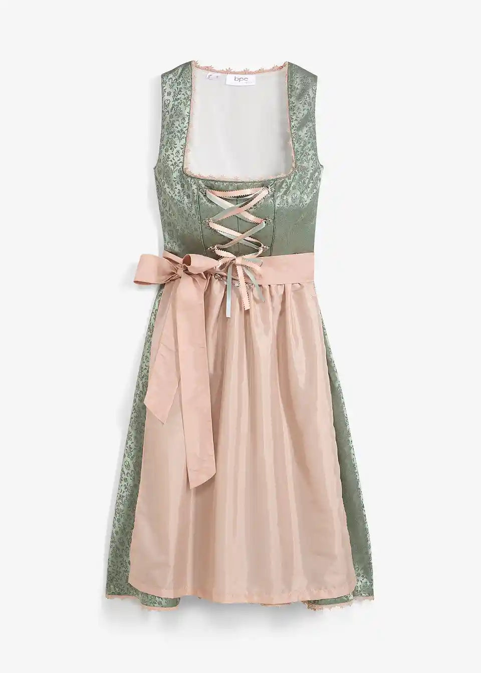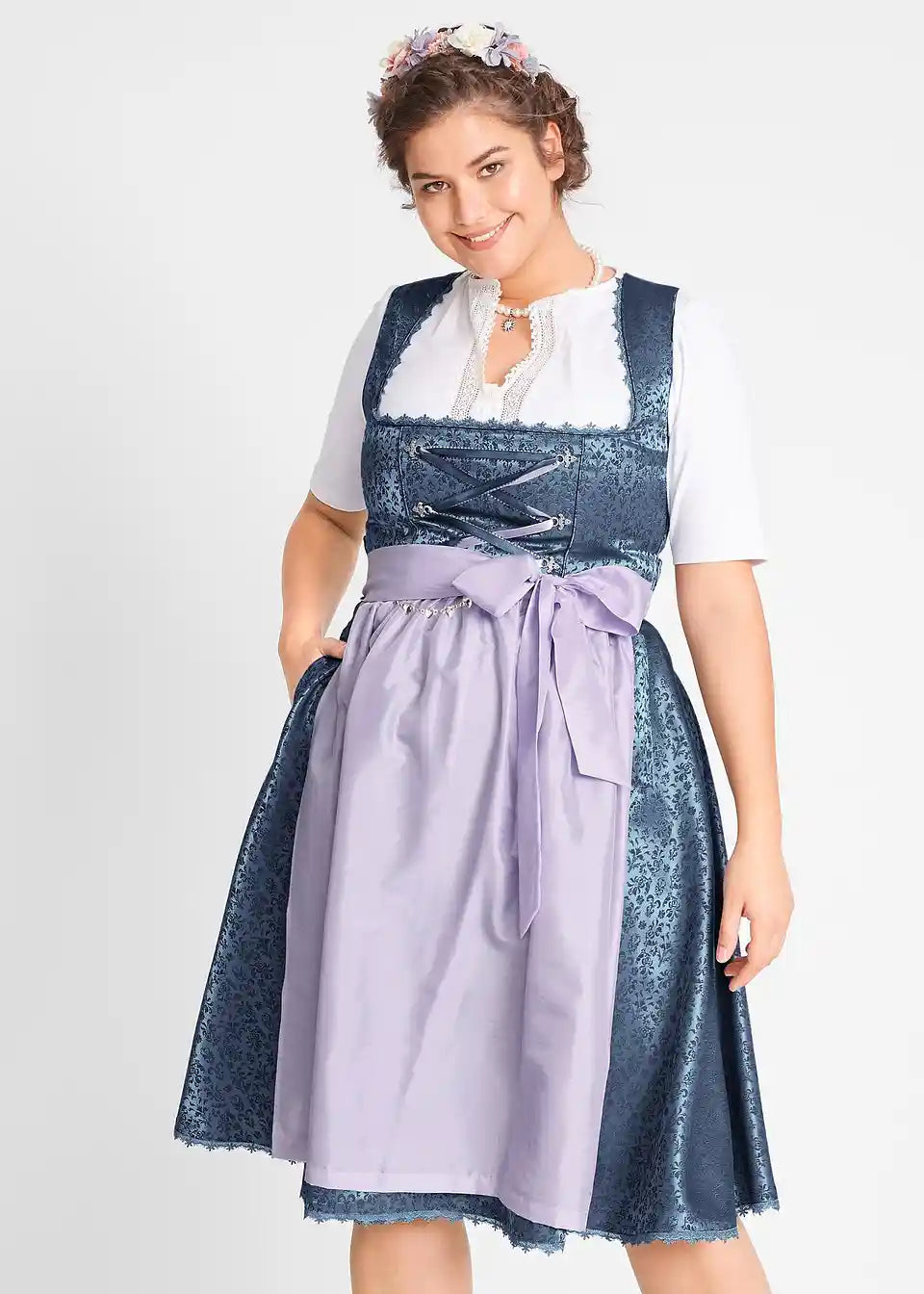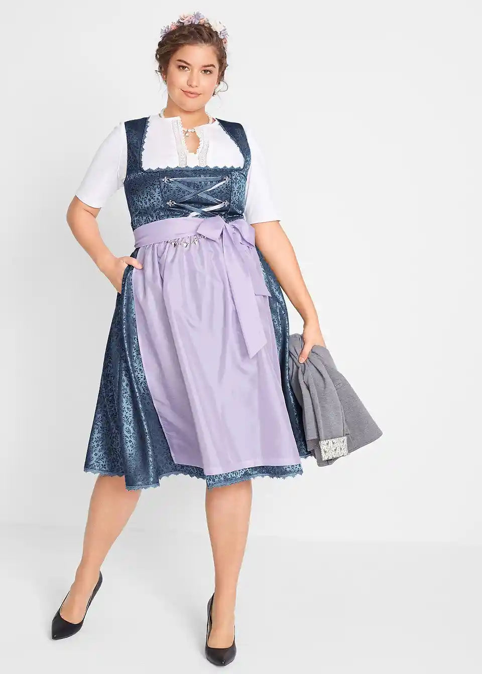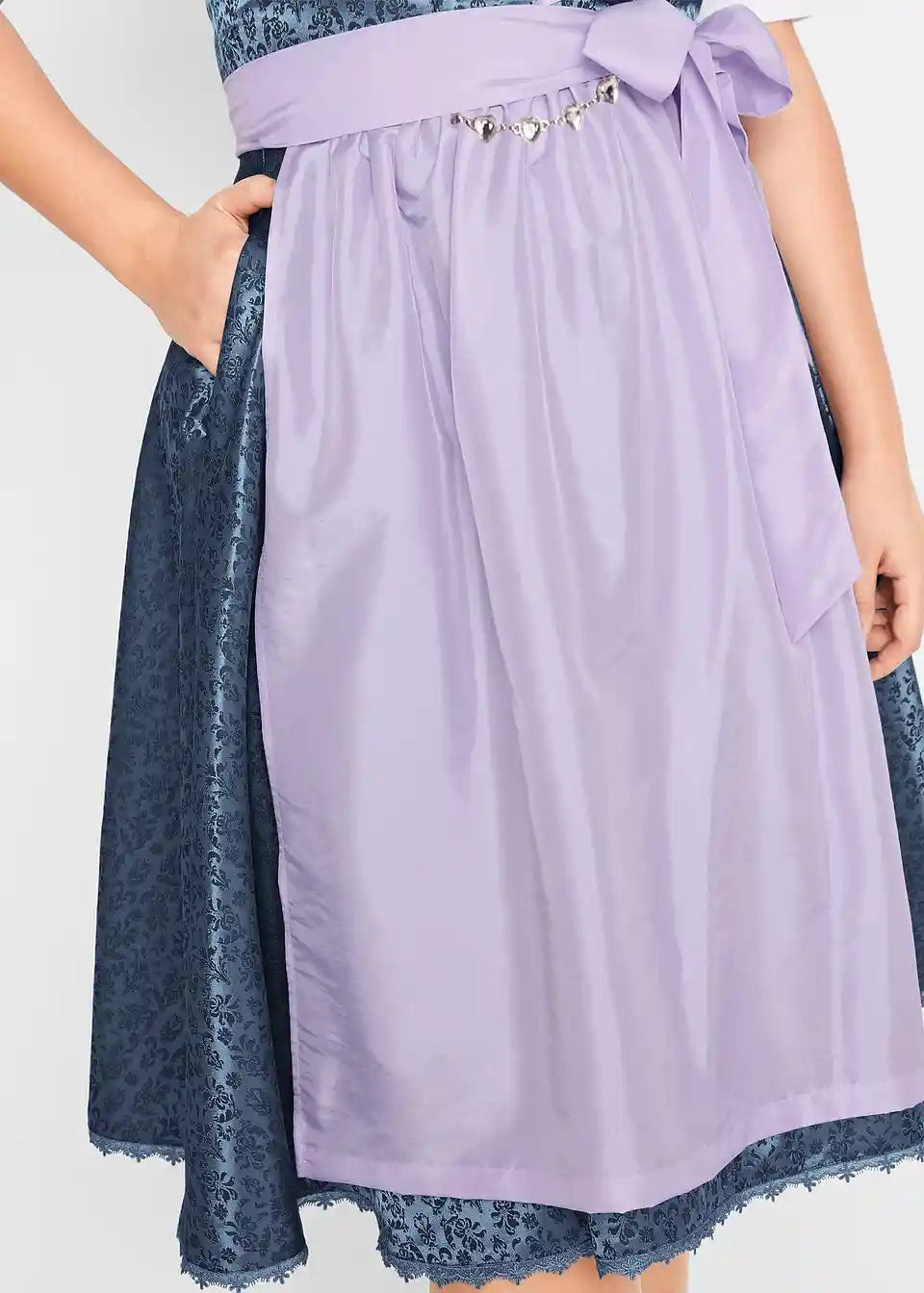 S ovim dirndl modelom bpc žene su klasično odjevene za Oktoberfest. Narodna haljina ističe se duljinom do listova i atraktivnim uzorkom. Čipkasta bordura i fina satenska vezica ukrašavaju carré dekolte modela. Sjajna pregača s ukrasnim lančićem u obliku srca na pojasu prekriva praktičan džep na suknji. Dirndl se zatvara sprijeda pomoću patentnog zatvarača.