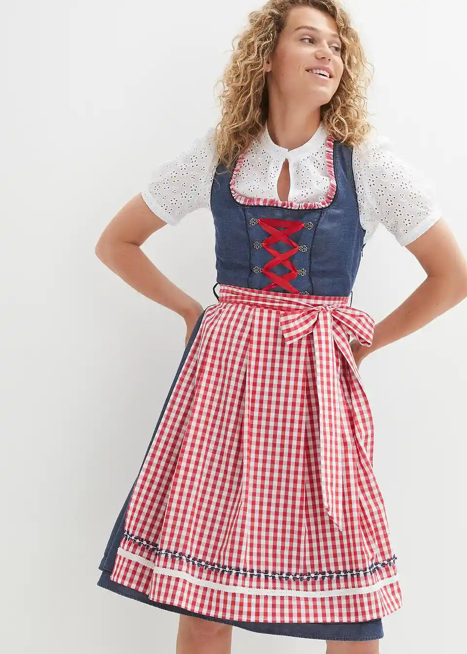 Dirndl u izgledu trapera s pregačom u dužini do koljena
