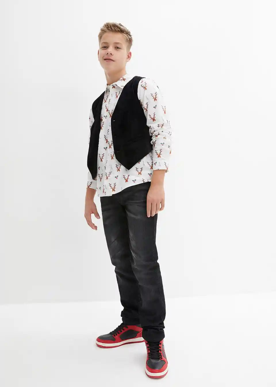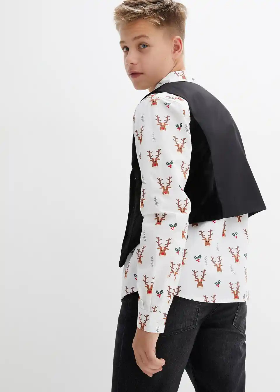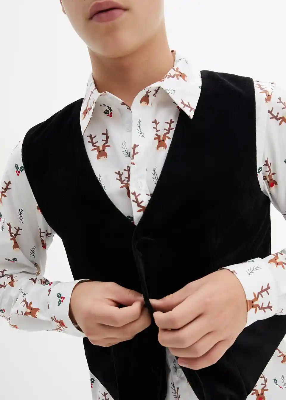 Košulja s dugim rukavima i prsluk od samta za dječake