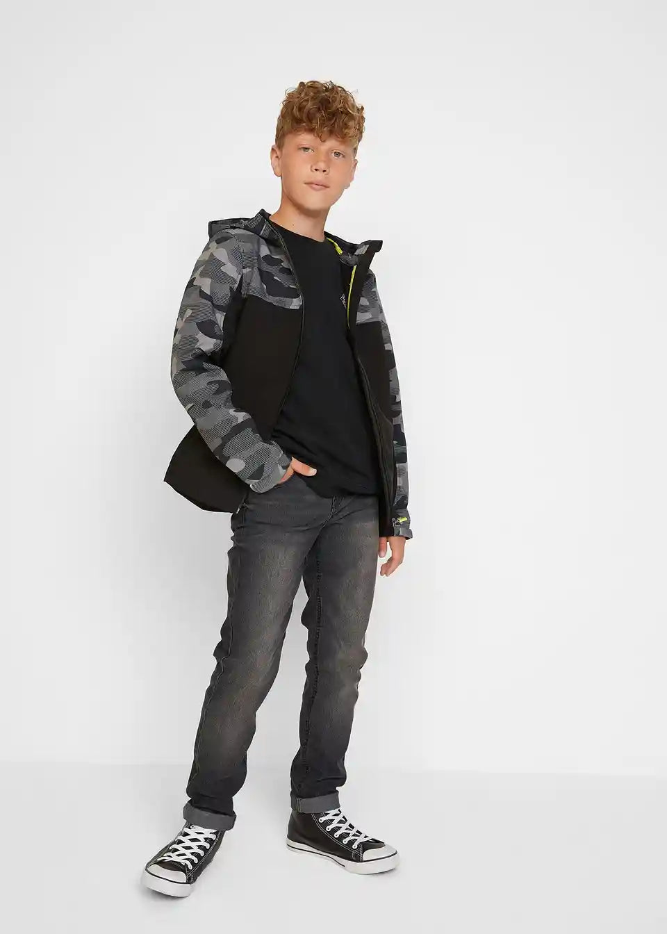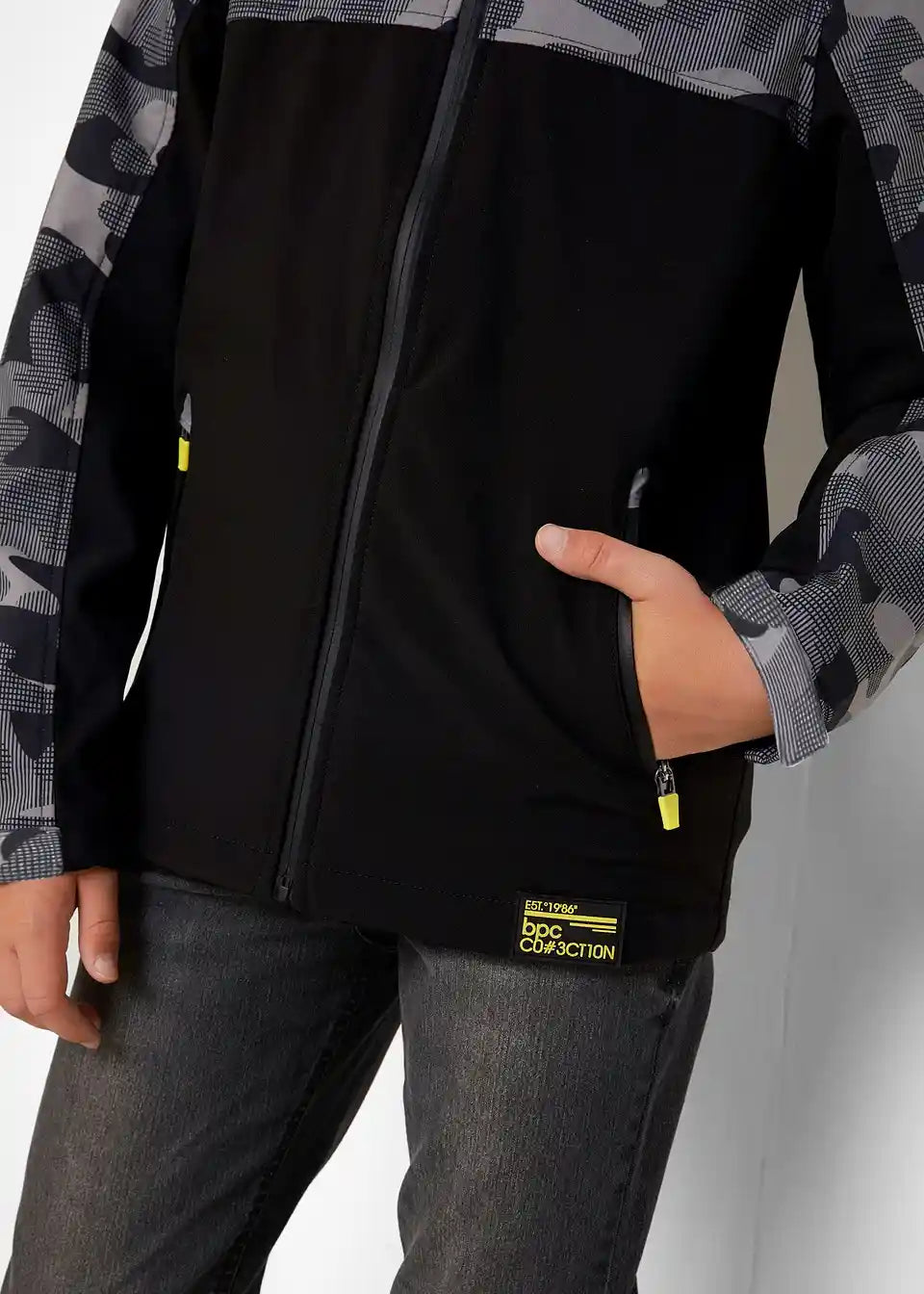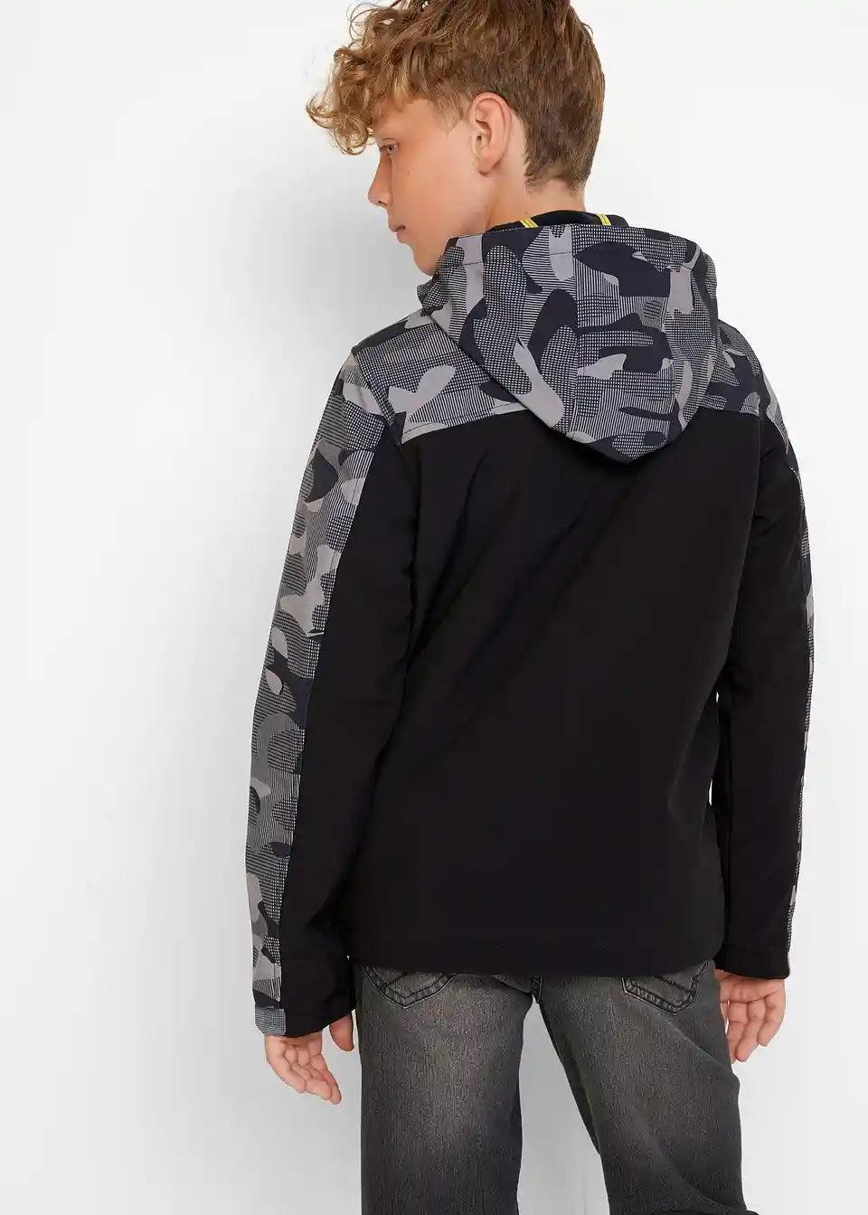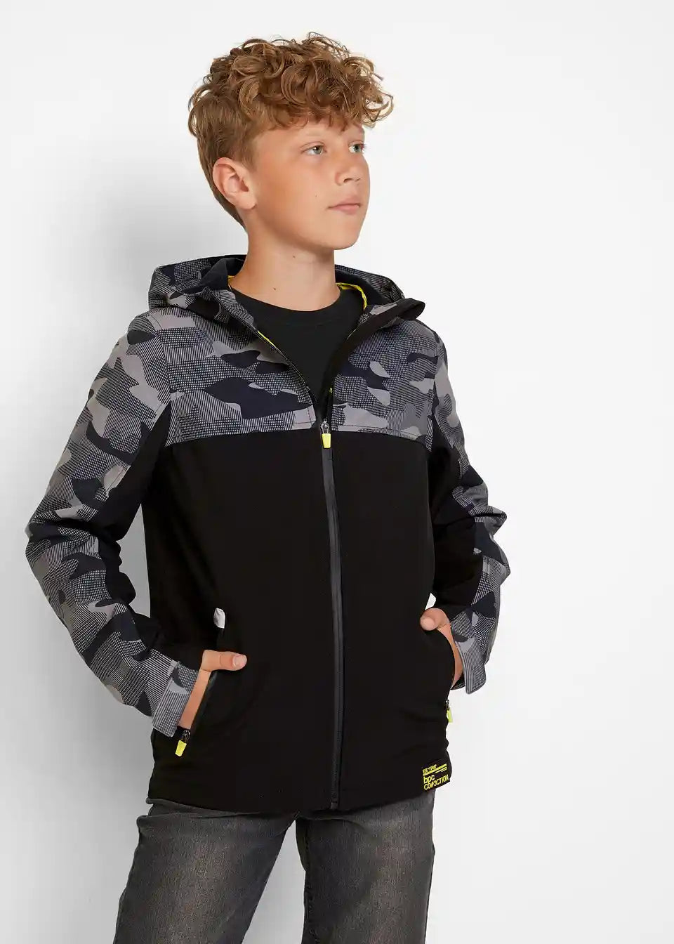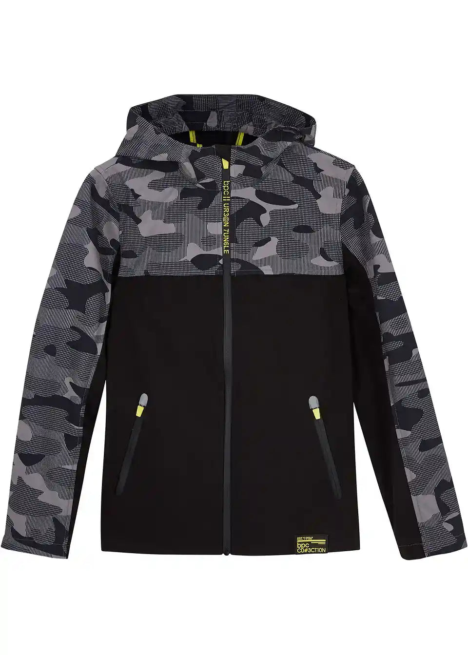 Ova ležerna jakna savršena je za izlete ili šetnje gradom tijekom hladnijih ljetnih dana i u prijelaznim razdobljima. Praktično se zatvara patentnim zatvaračem sprijeda, a bočni džepovi pružaju praktičan prostor za pohranu. U kapuljači se nalazi dodatni gumeni umetak koji štiti od vjetra. Cool dizajn dodatno je poboljšan elementima s uzorkom Camouflage i neonsko žutim detaljima.