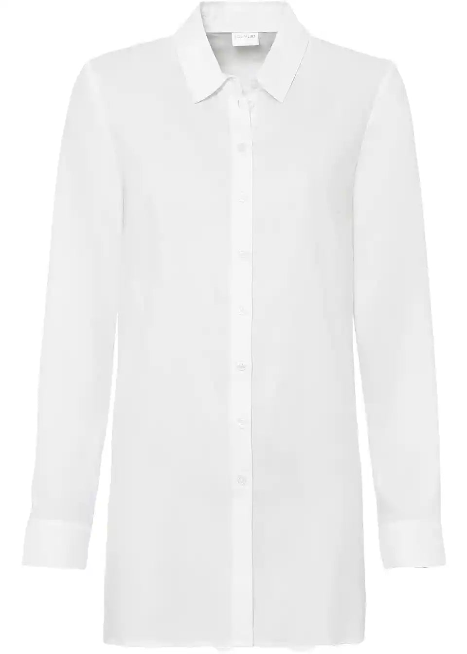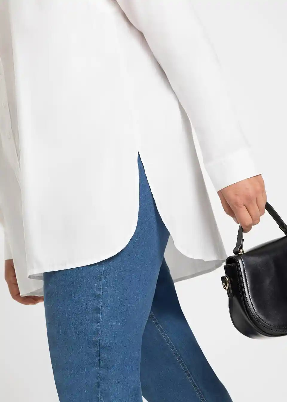 Duga bluza od održive viskoze s modernim detaljem proreza na stranama.