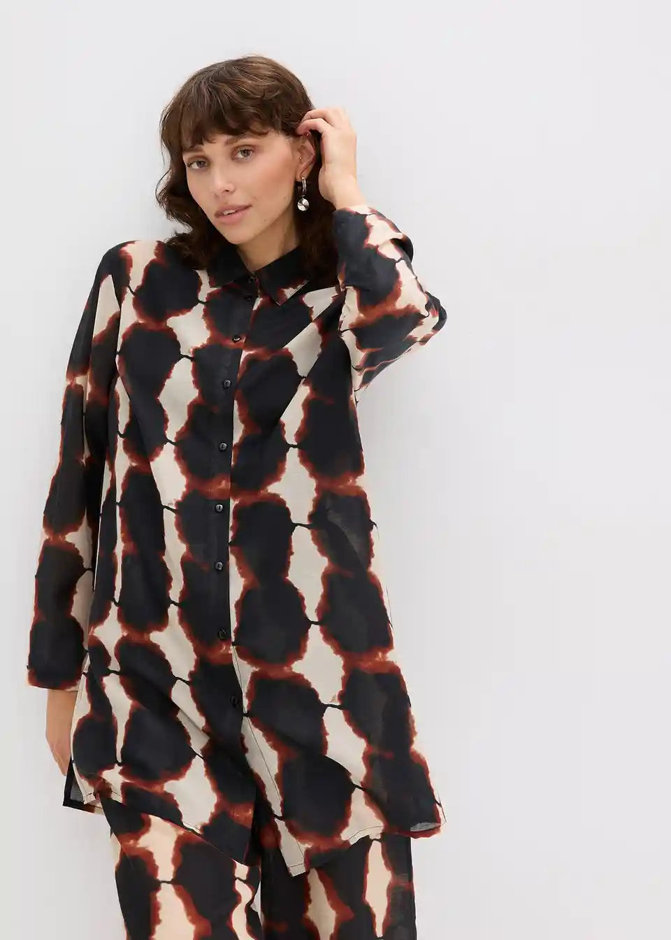 moderna duga bluza s Batik printom i bočnim prorezima
