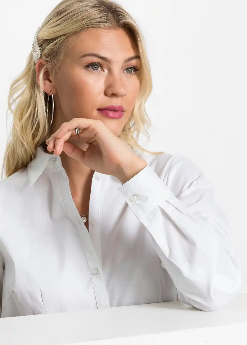 Moderna duga bluza s ovratnikom i kopčanjem na gumbe
