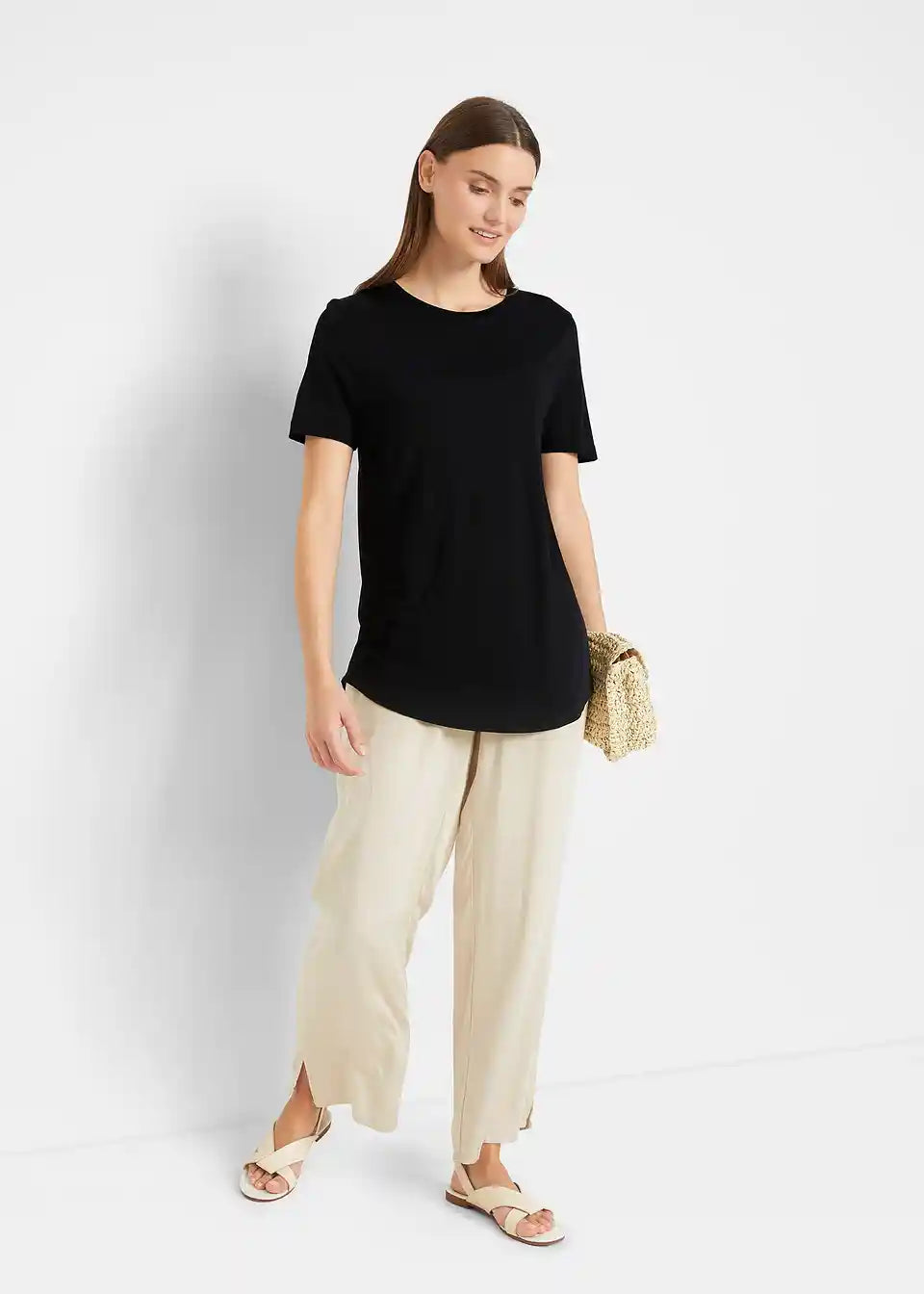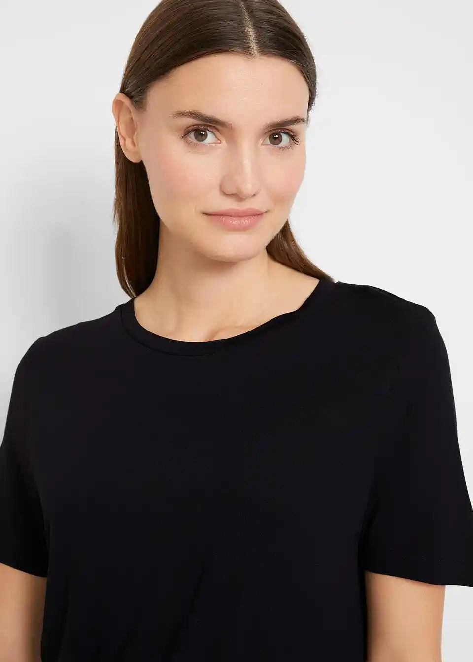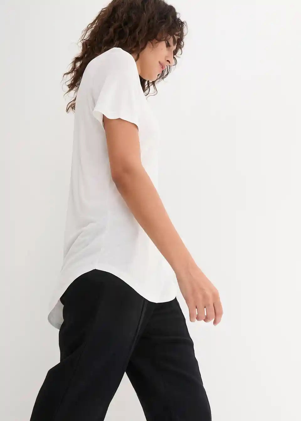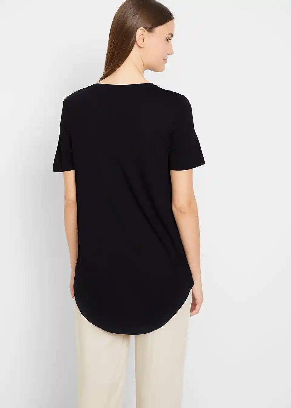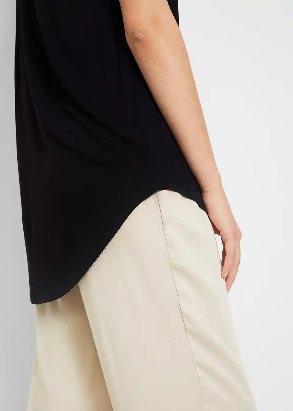 Moderna duga majica, zaobljen rub i okrugli izrez.