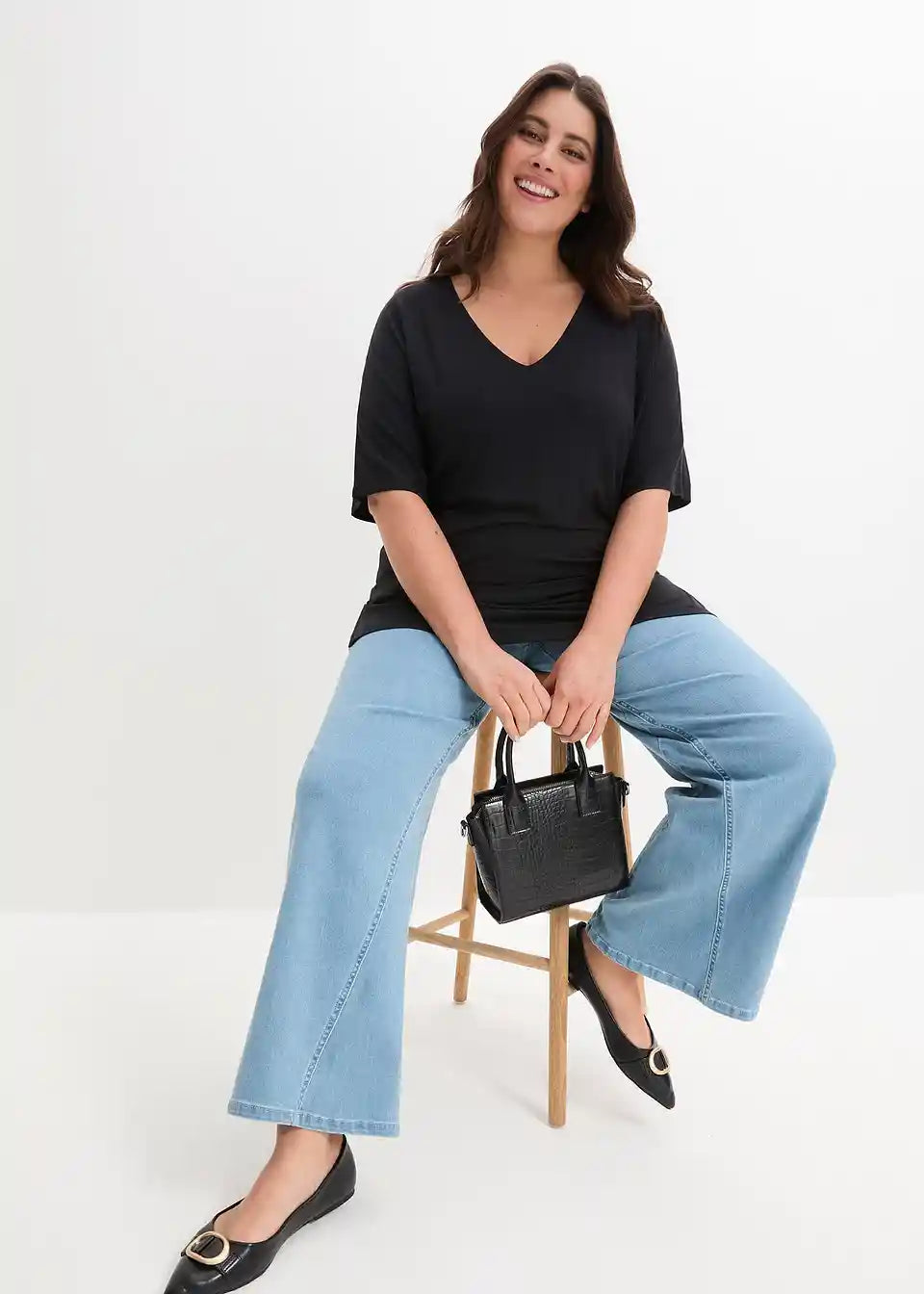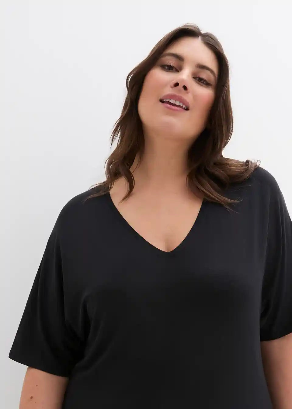 Duga majica s V izrezom i šišmiš rukavima