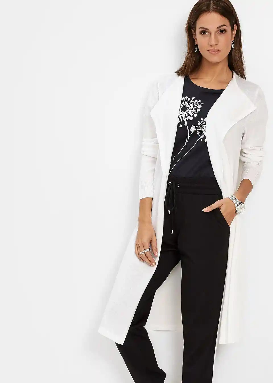Duga pletena vesta s pamukom
