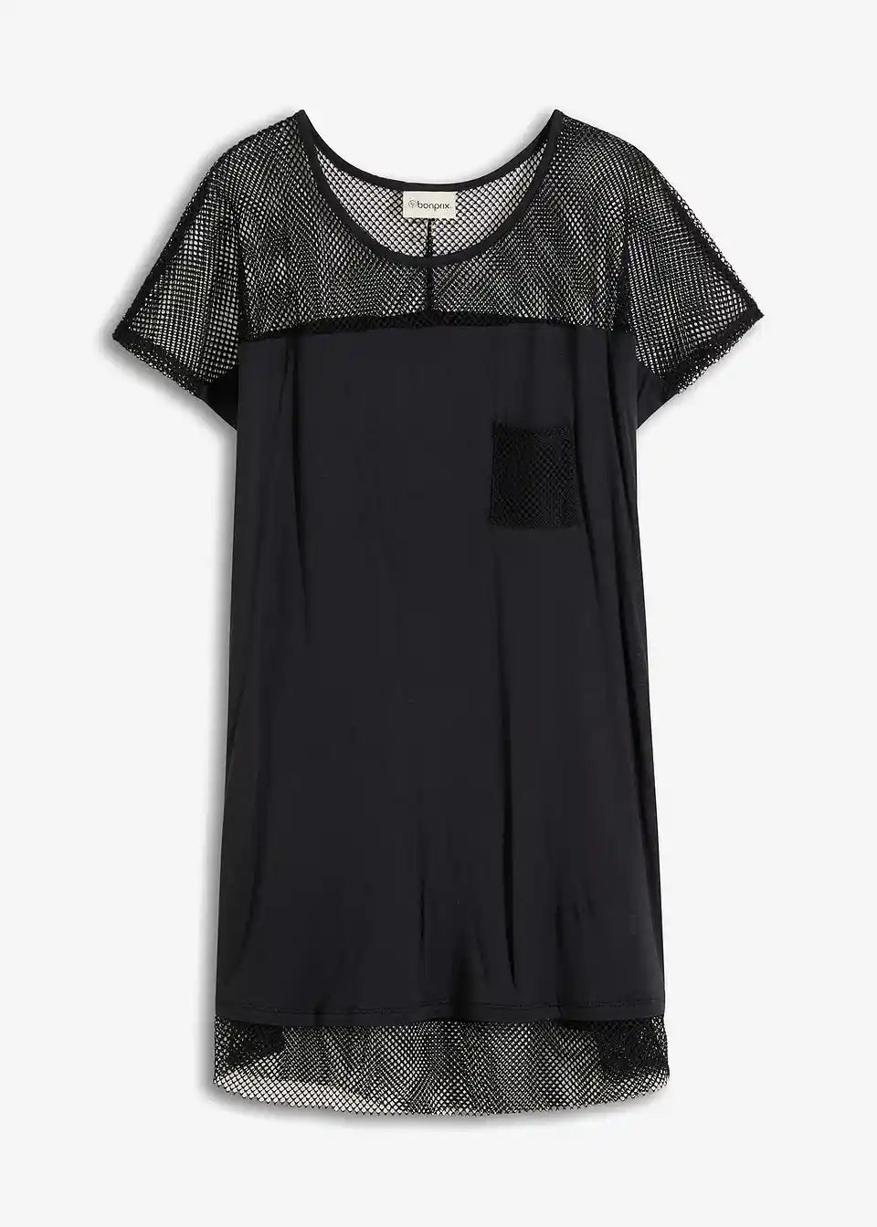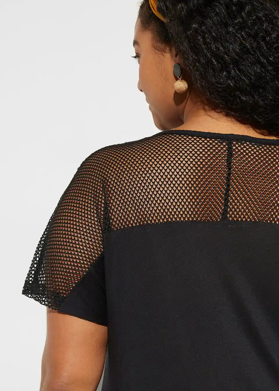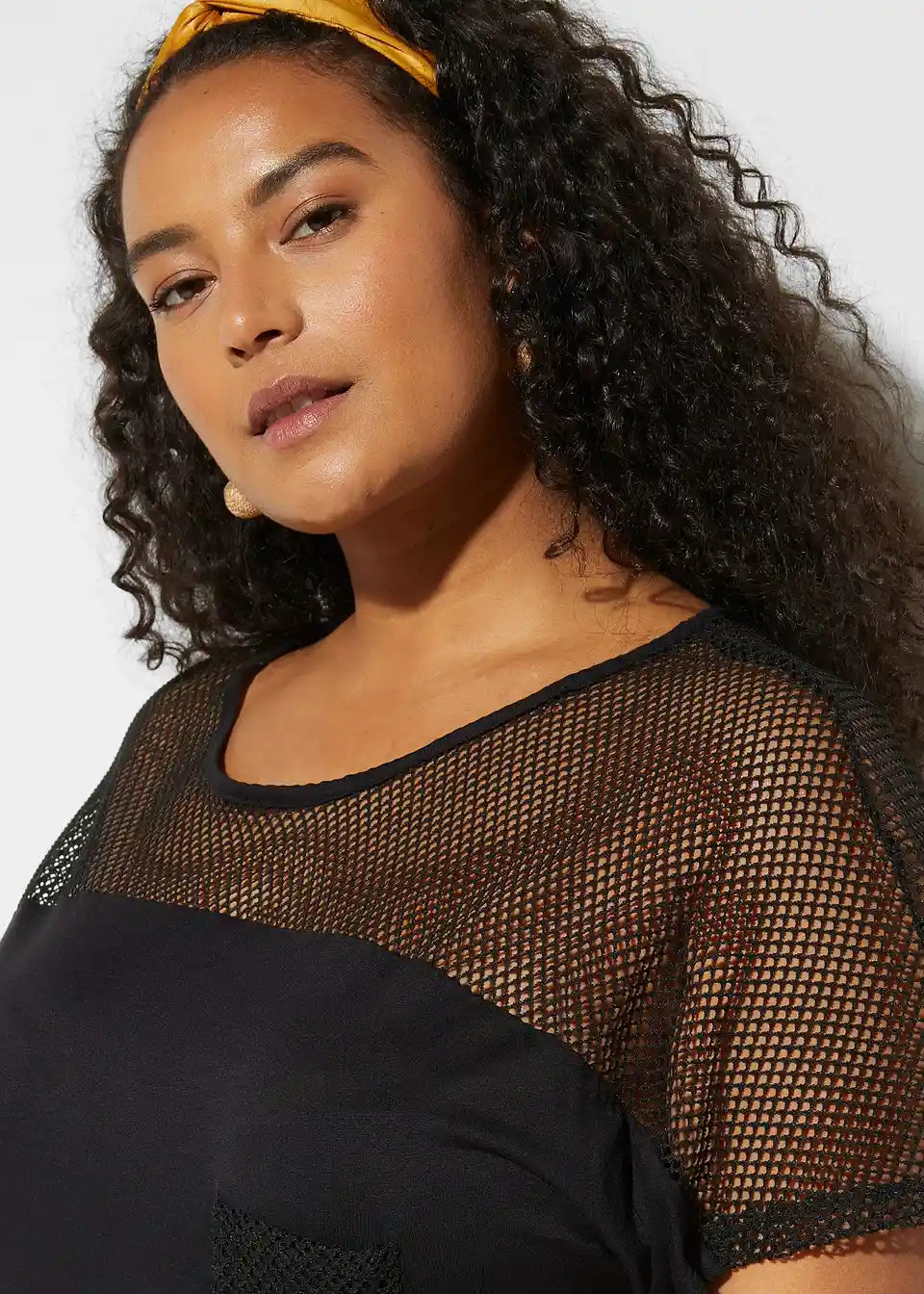 Majica za plažu s okruglim izrezom i ulošcima od mrežaste tkanine.