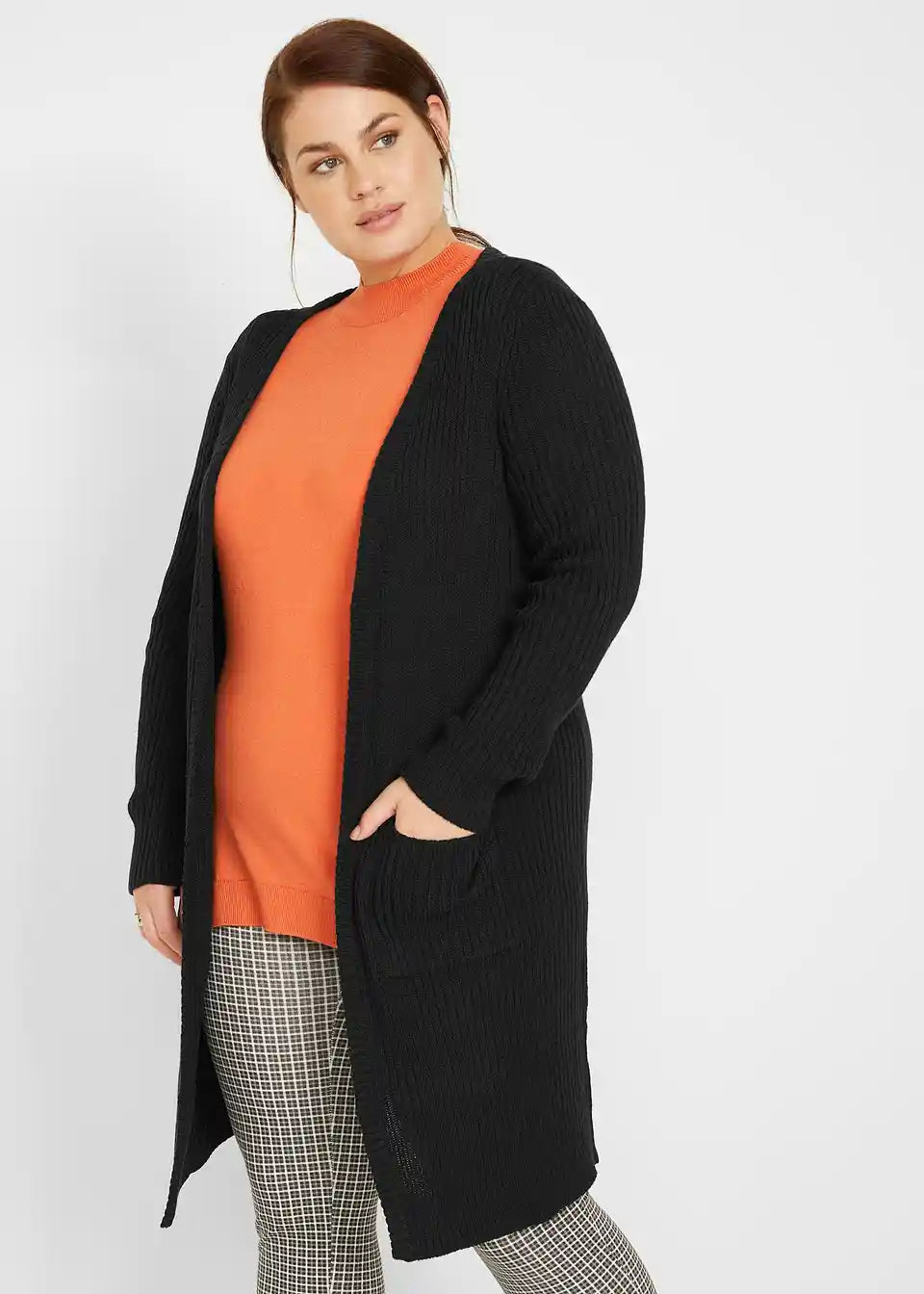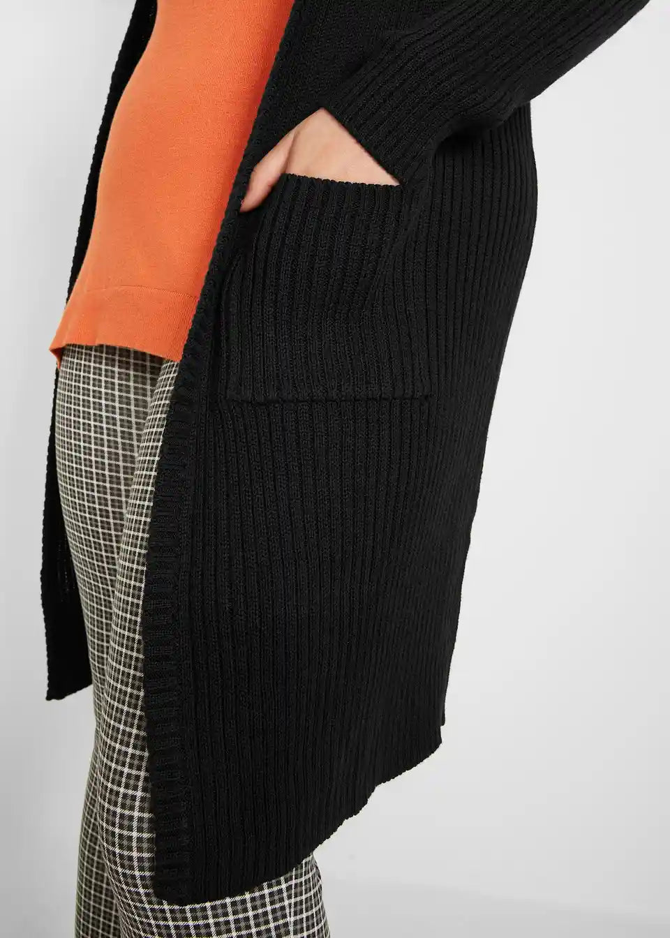 Otvoreni dugi kardigan s našivenim džepovima