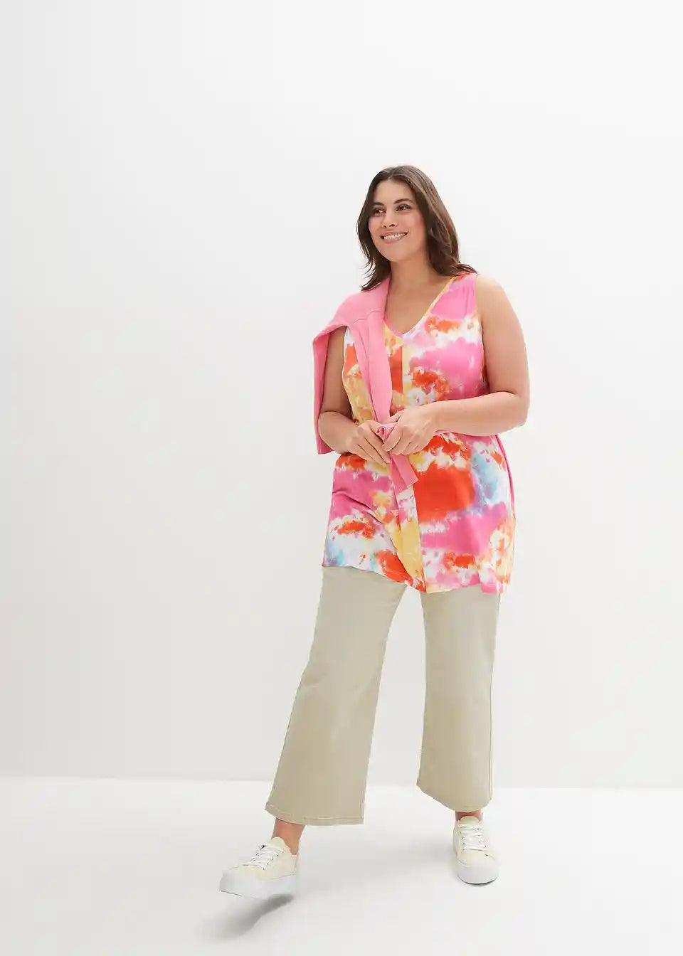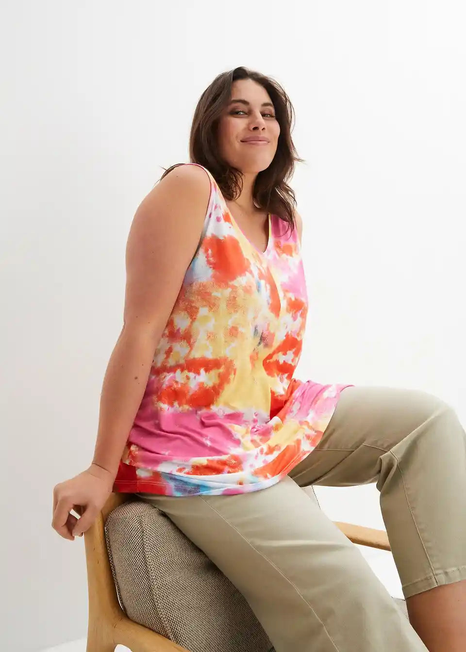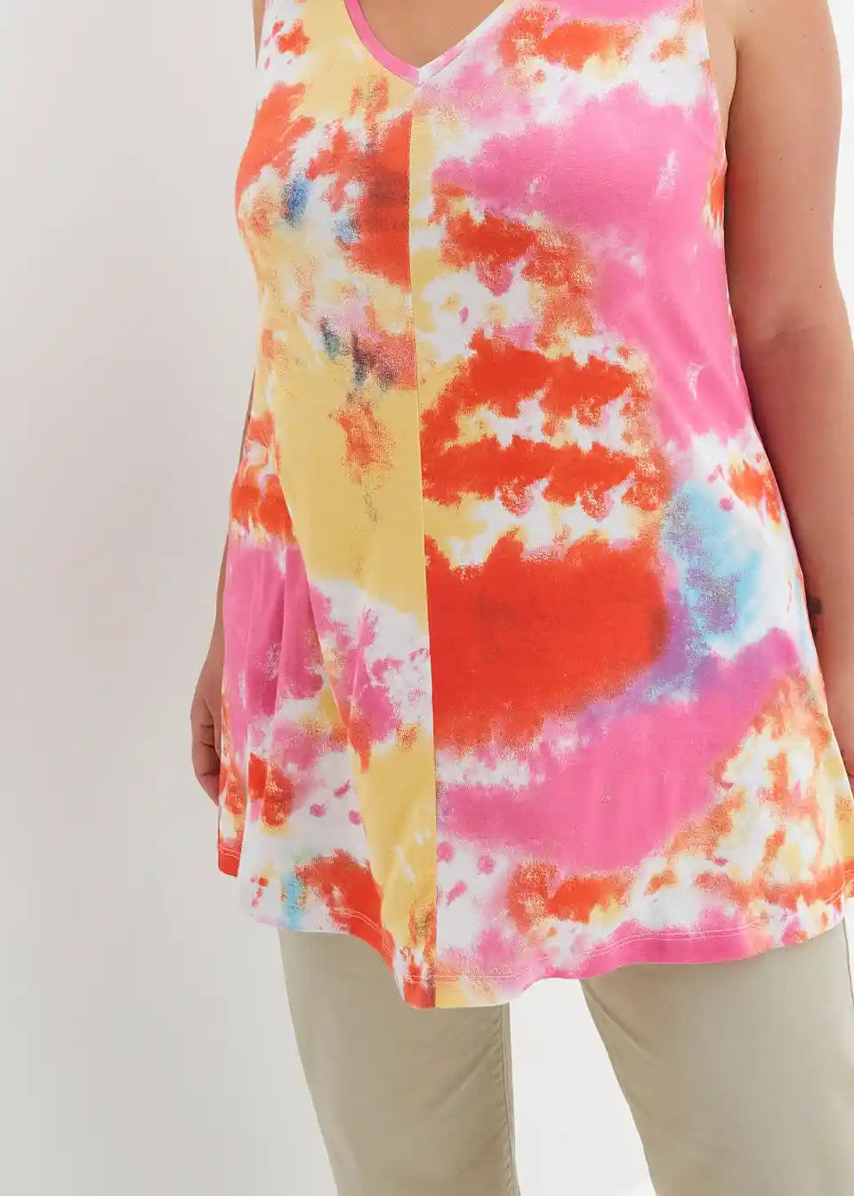 Lagana, lepršava majica u A-liniji s V-izrezom. Svaki komad je jedinstven.