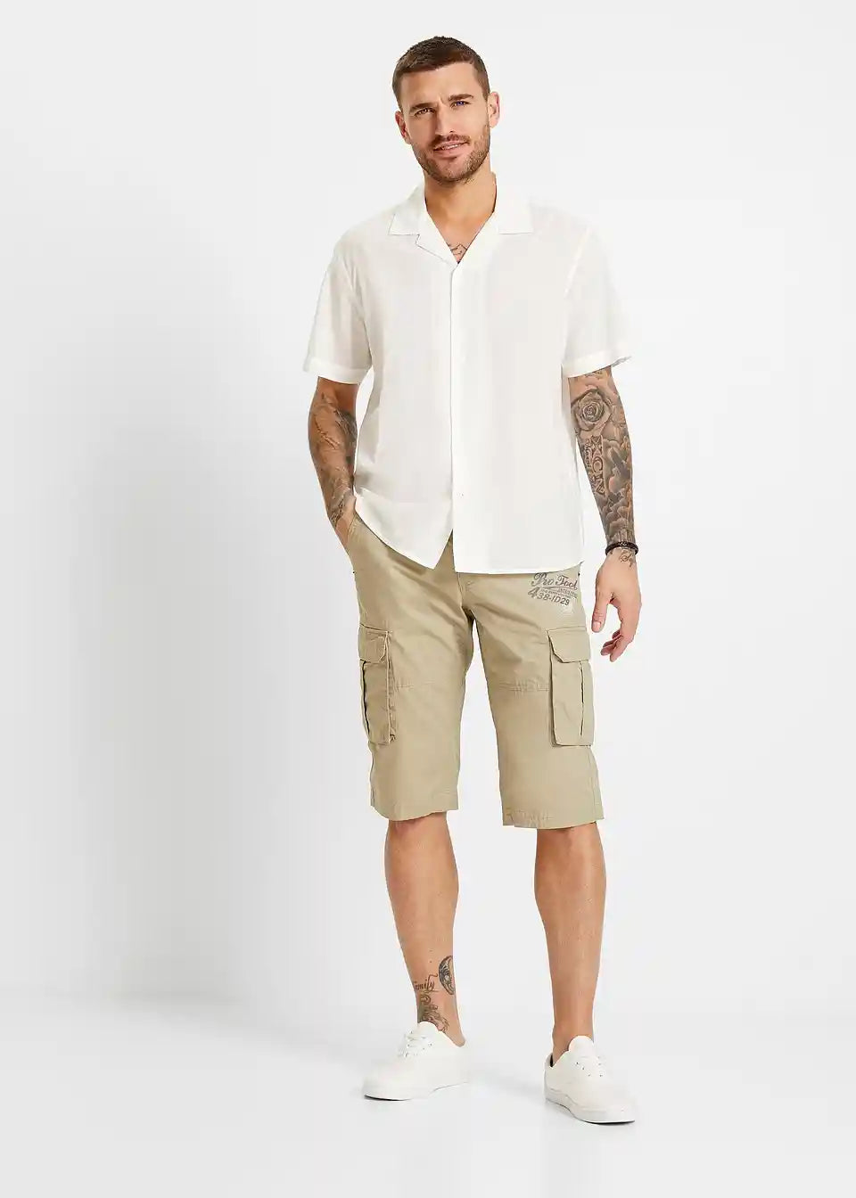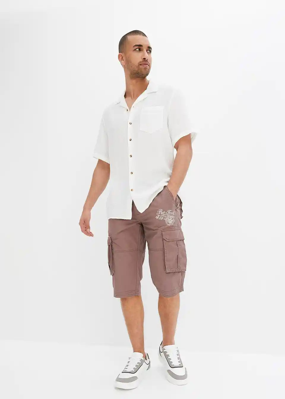 Odličan pratilac za tople ljetne dane su atraktivne muške duge bermude marke bpc, koje oduševljavaju opuštenim krojem. Normalan visok struk s patentnim zatvaračem donosi ugodnu udobnost, a opušten kroj ležerno zaokružuje izgled. Bočni cargo džepovi daju sportski dodir, dok print iznad lijevog džepa stvara prekrasne naglaske.