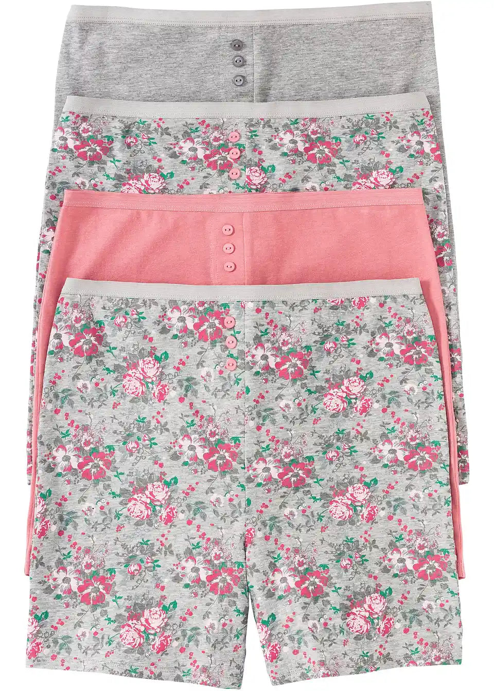 Ovaj paket od 4 komada sadrži 2 s uzorkom i 2 jednobojne duge donje gaće u obliku biciklističkih hlača s visokim i elastičnim strukom.