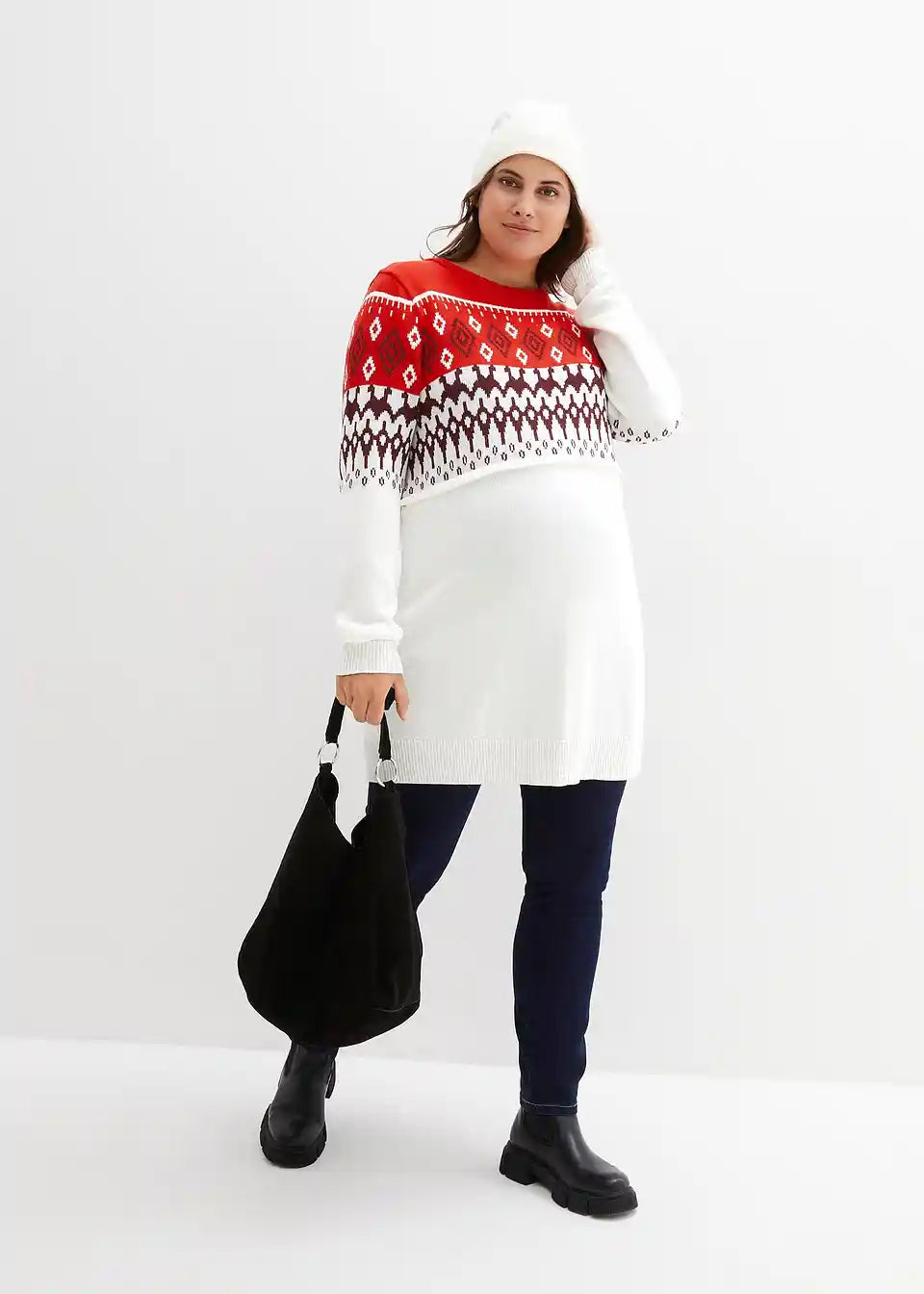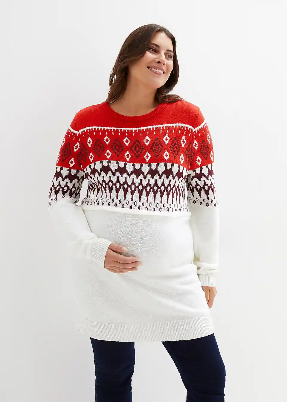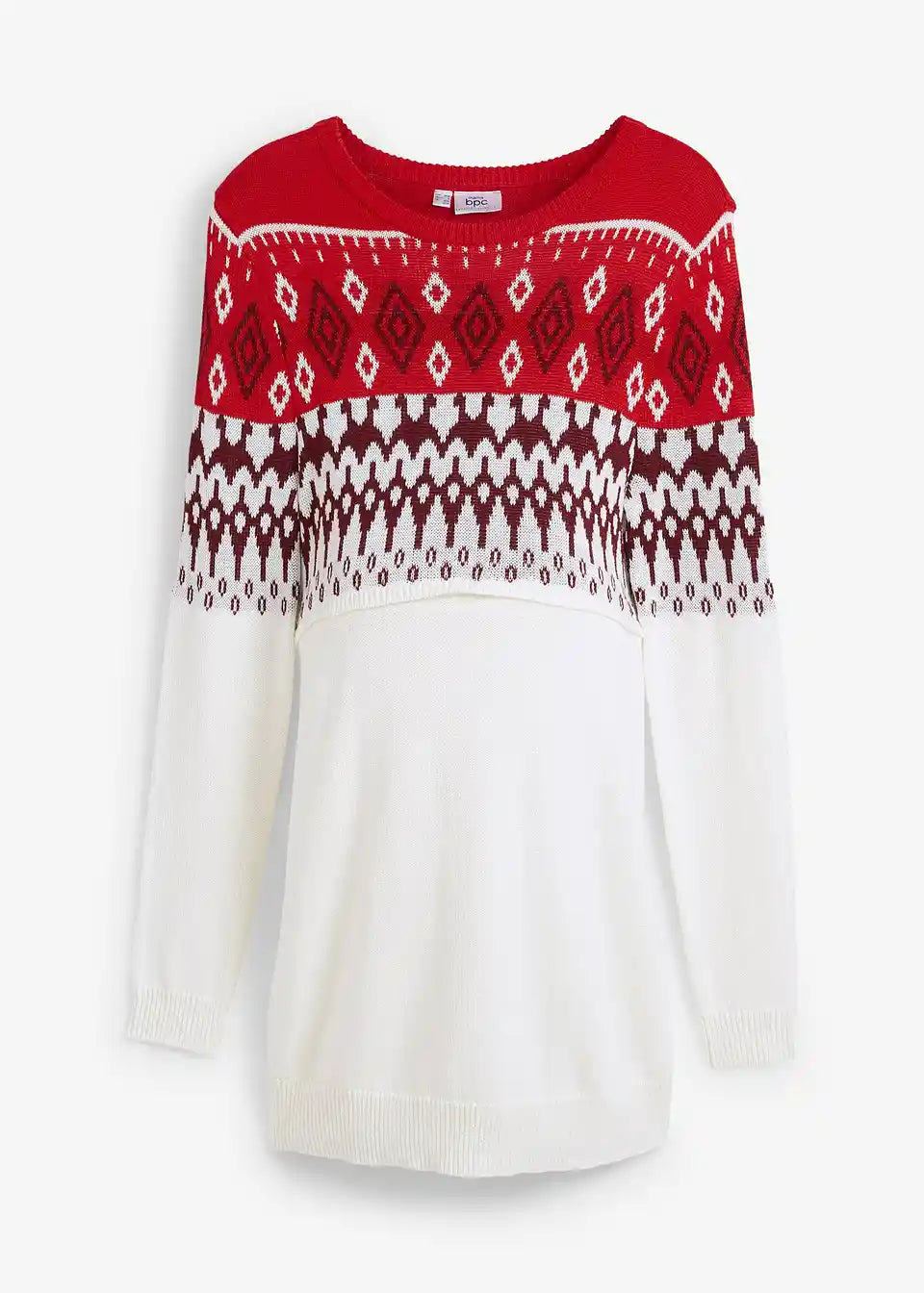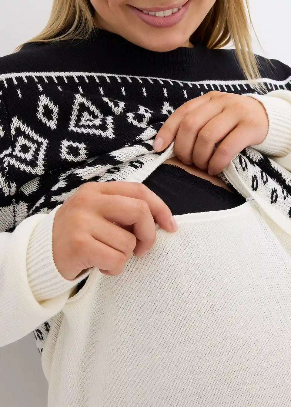 Mekani, udobni pulover za trudnoću i razdoblje dojenja. Dizajn s dvostrukim slojevima pomaže u sprječavanju gubitka topline i omogućava ugodno dojenje za majku i dijete.