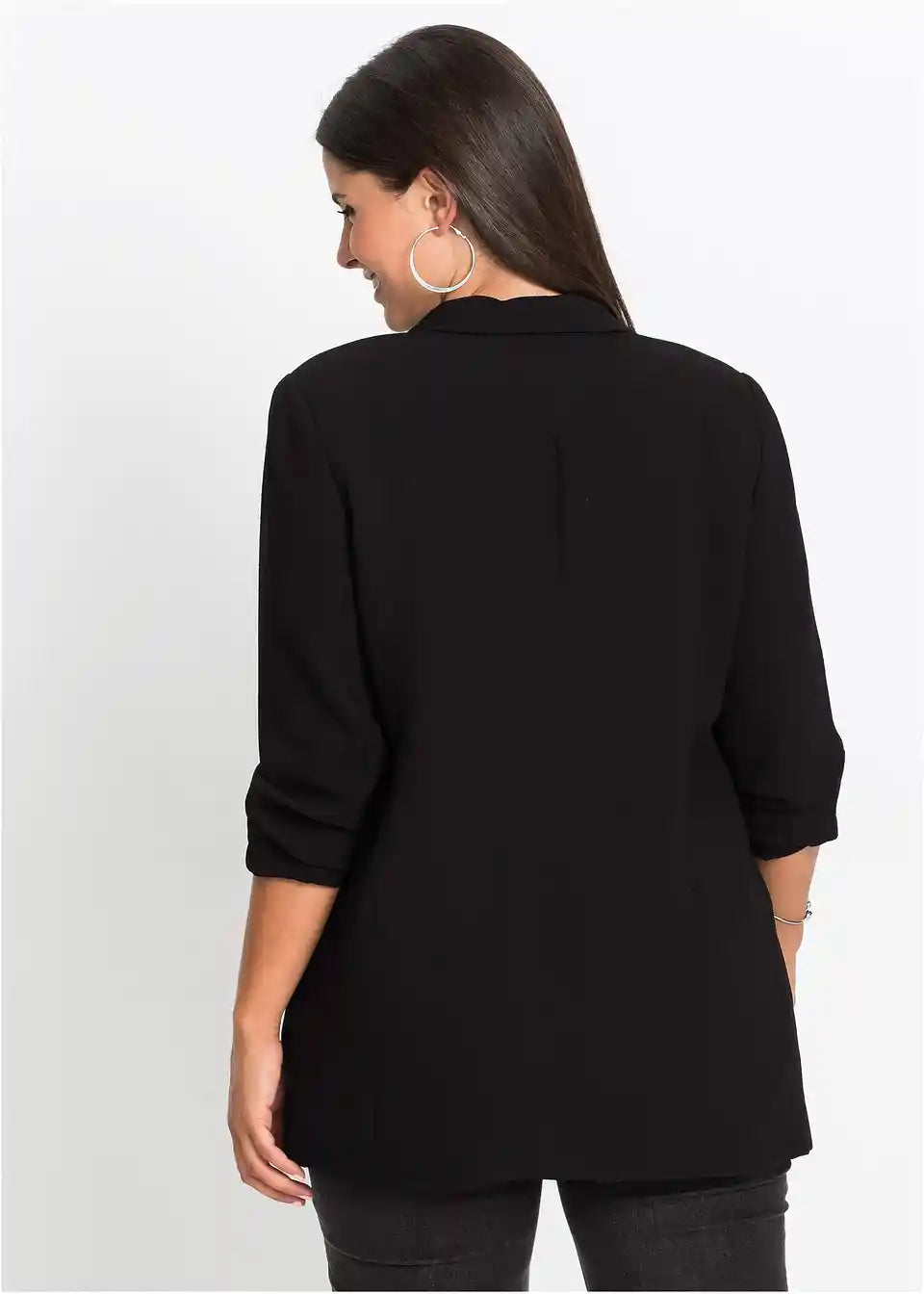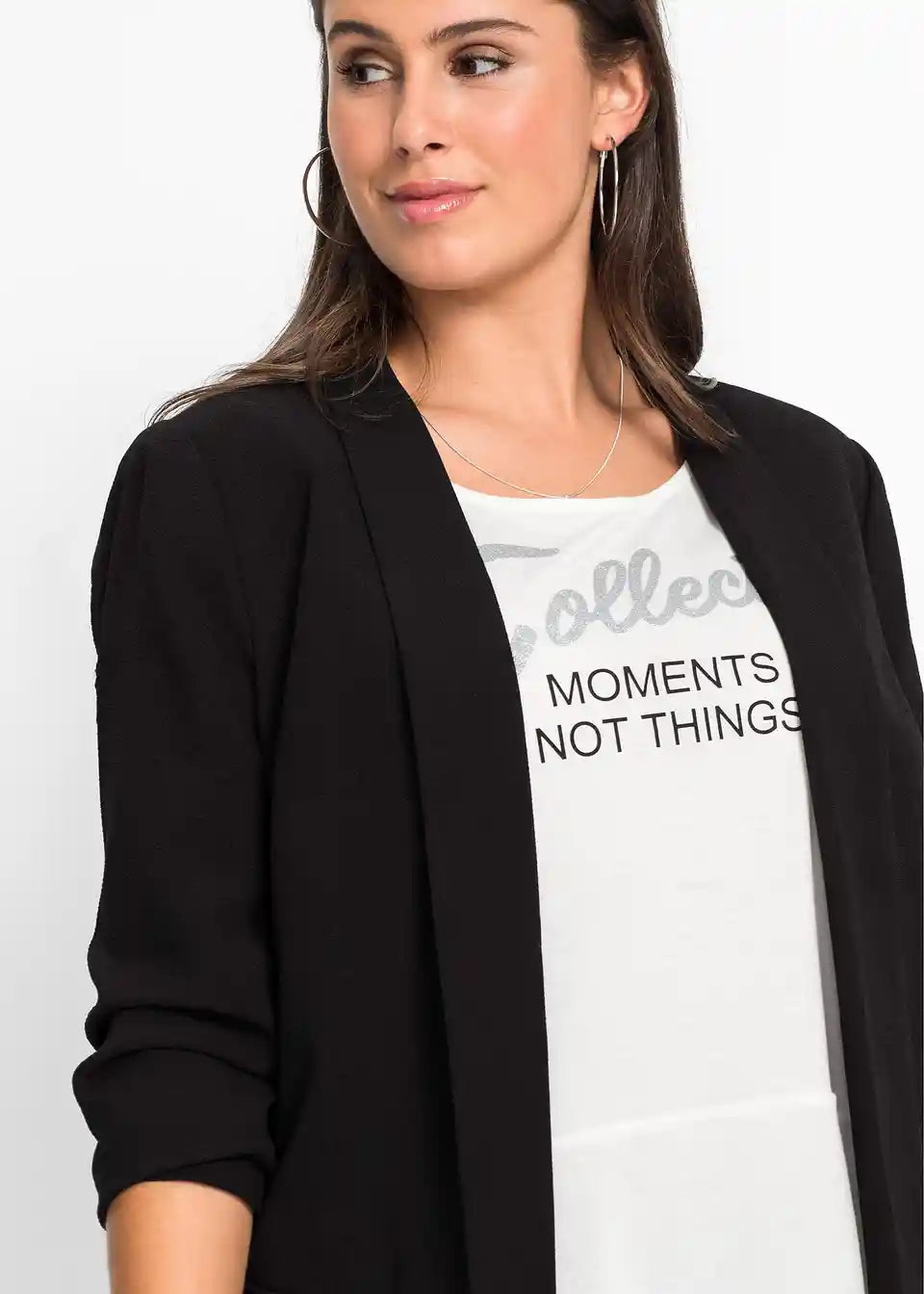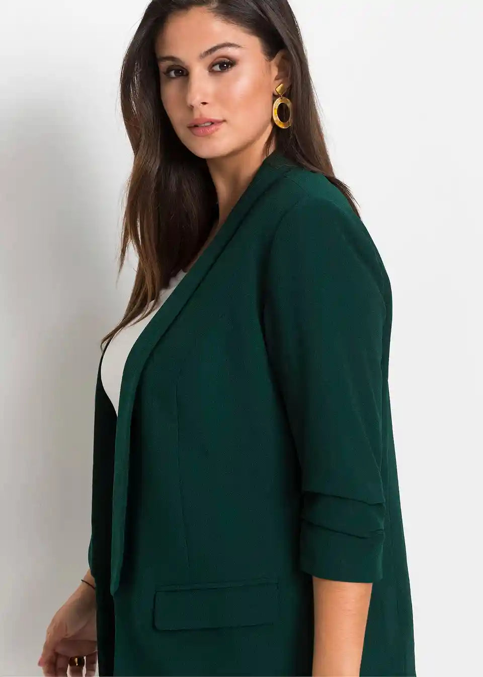 Ležerno krojen dugi blejzer s drapiranim rukavima i rever ovratnikom.