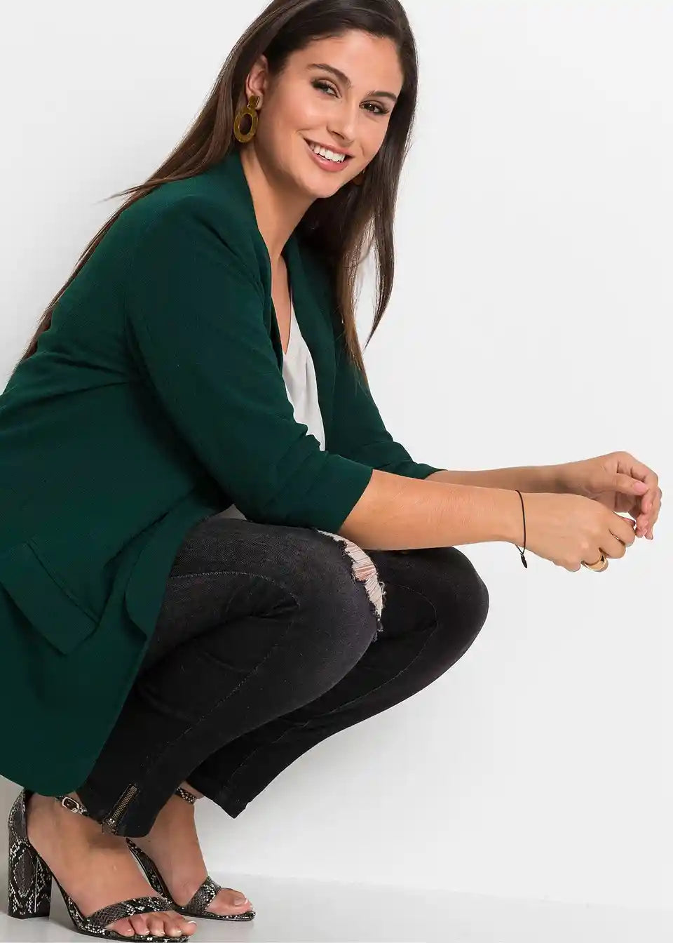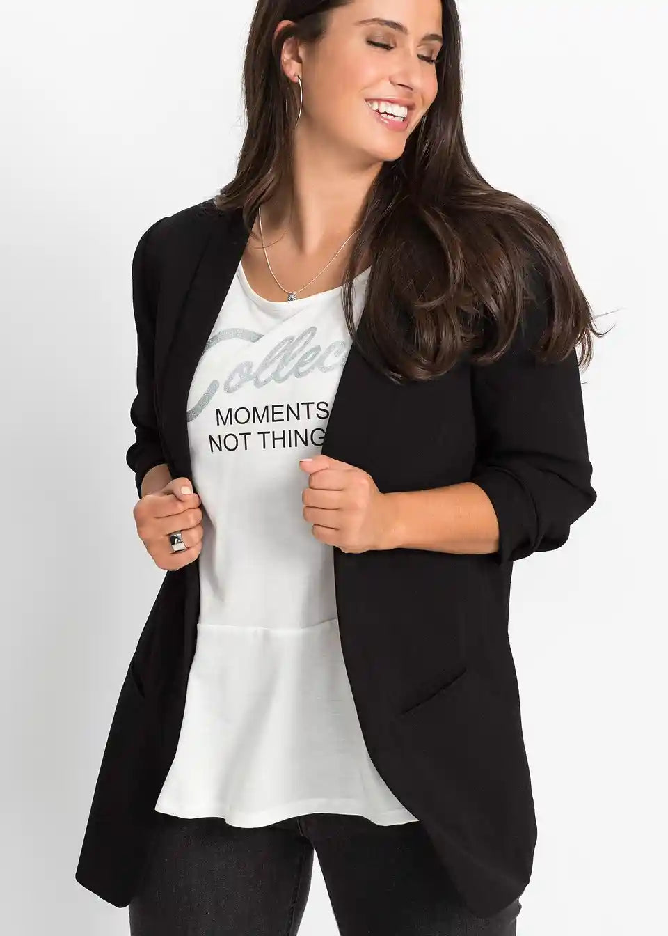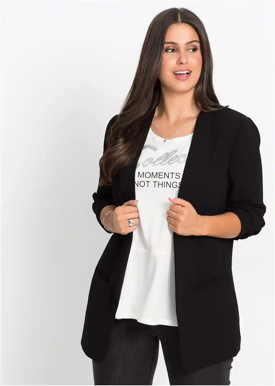 Ležerno krojen dugi blejzer s drapiranim rukavima i rever ovratnikom.