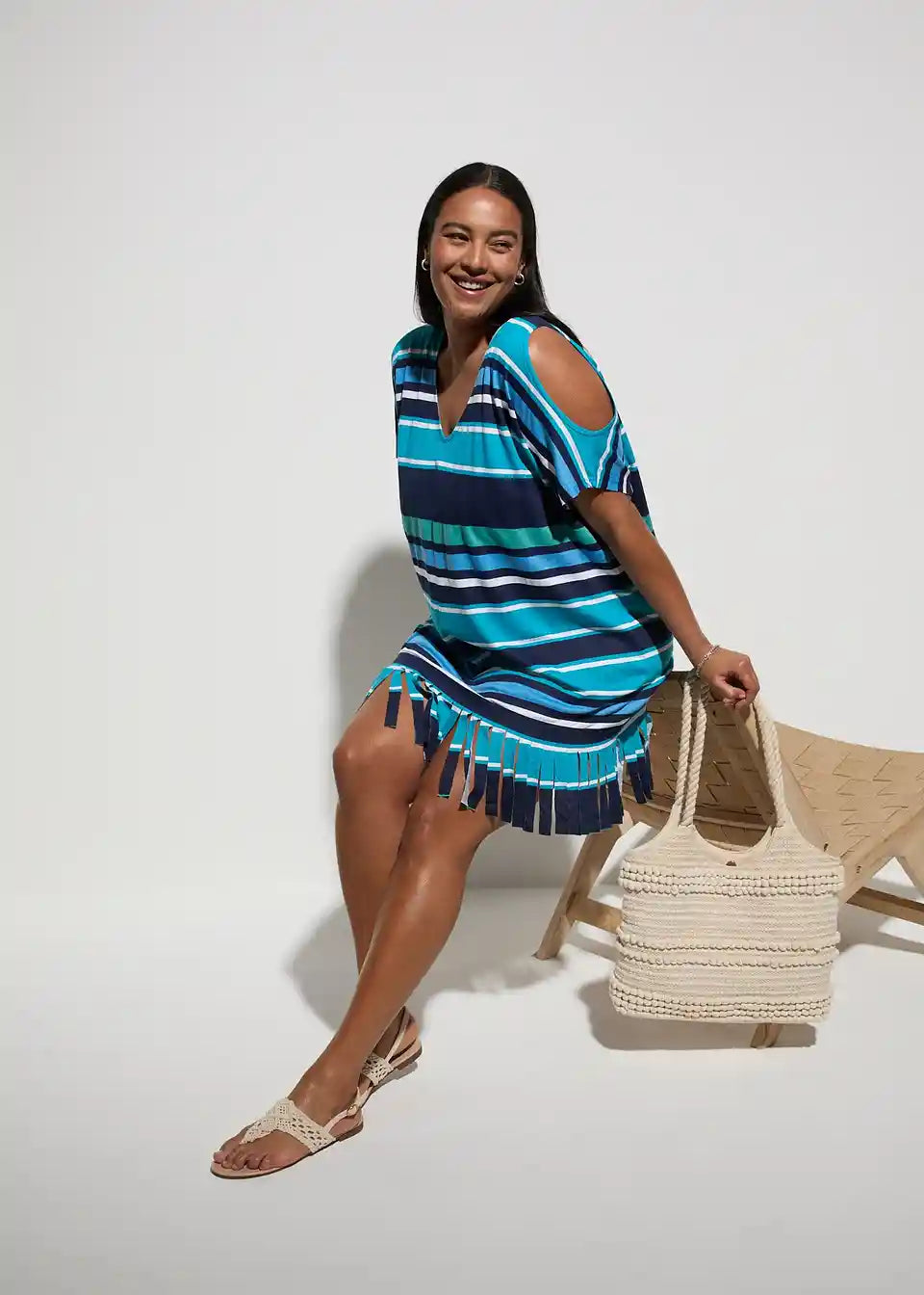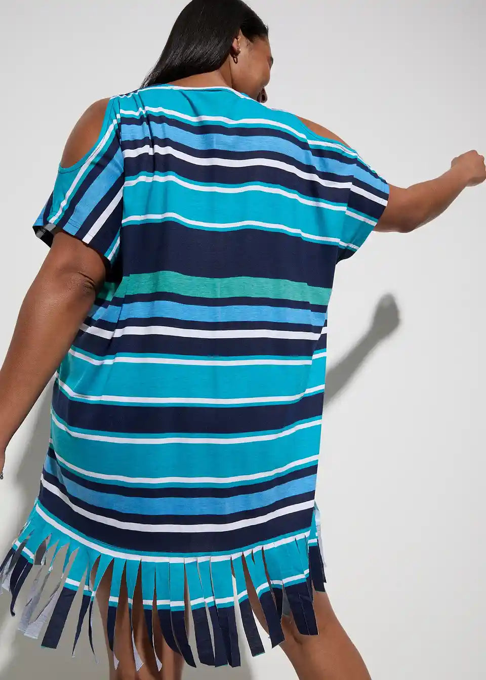 Oversized plažni shirt od jersey materijala s resama na rubu.