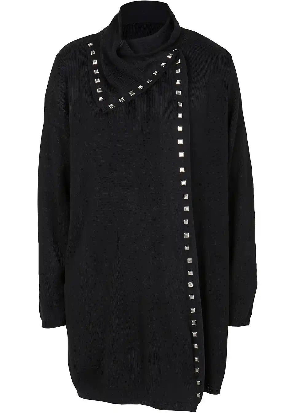Dugi pleteni kardigan sa šal ovratnikom i originalnim wrap-around zatvaranjem