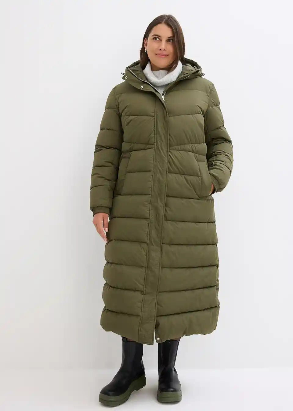 Dugi prošiveni kaput s kapuljačom
