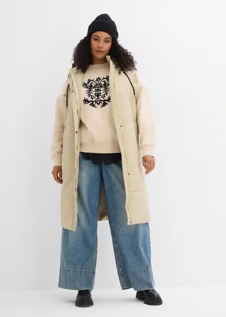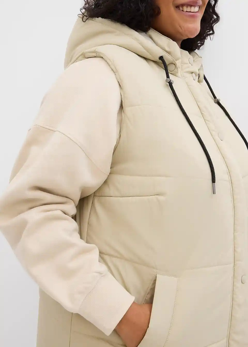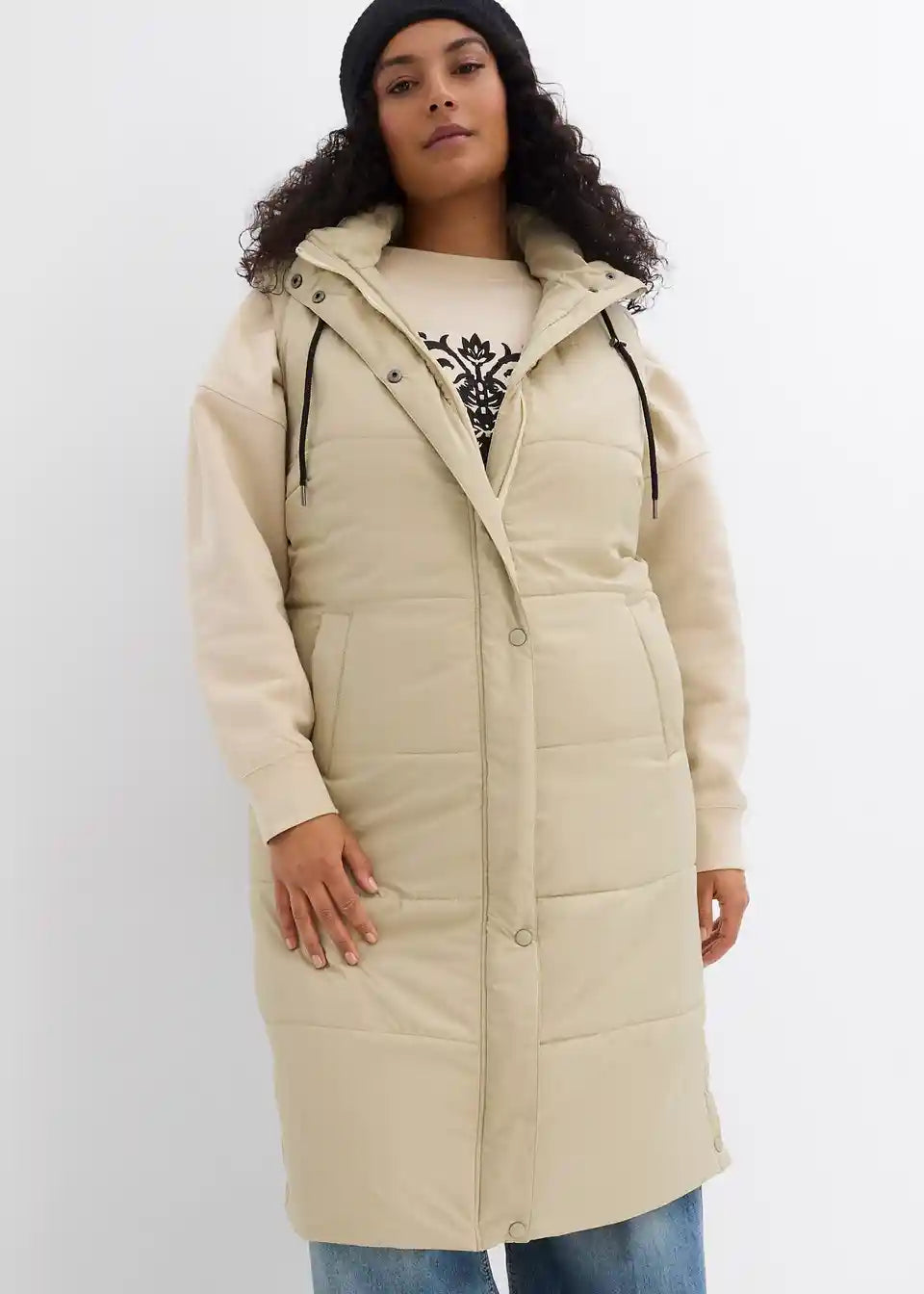 Dugi prošiveni prsluk s patentnim zatvaračem i kapuljačom