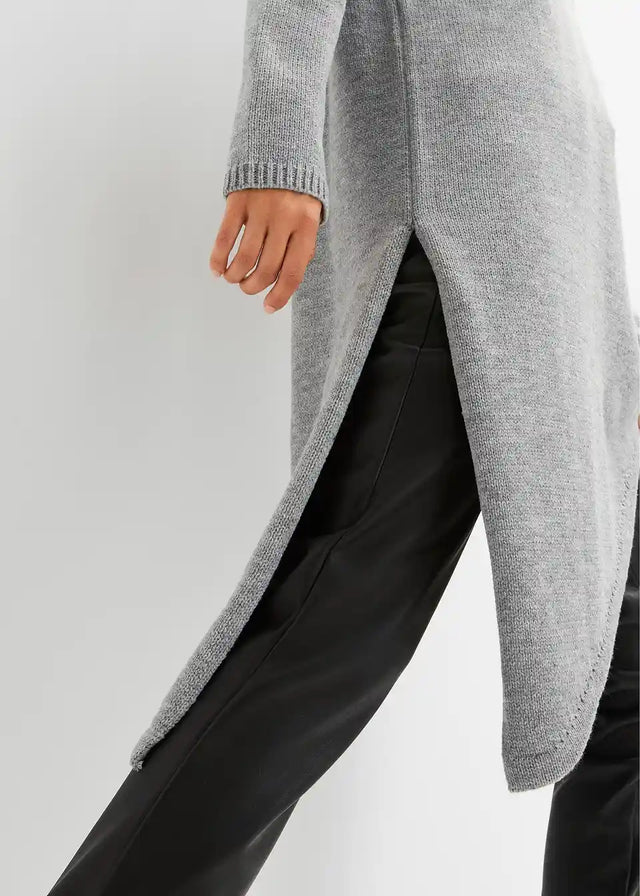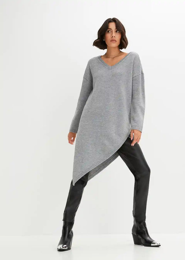 Man braucht ihn nicht kleiner zu kaufen, wenn er nicht eng anliegen soll. super schön, kuschelig und streckt, da wünscht man sich noch lange Beine dazu. Auch die Ärmel sind gerade so nicht zu lang