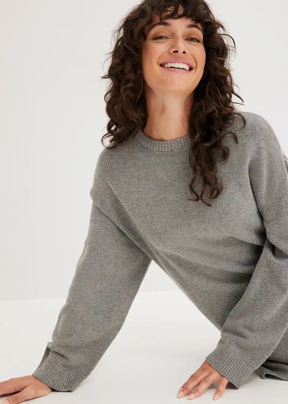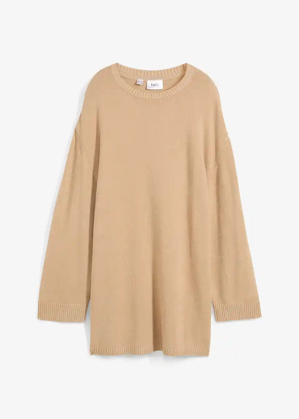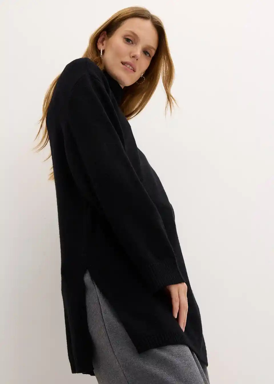 Dugi pulover od finog pletiva s modernim prorezima na bočnim stranama