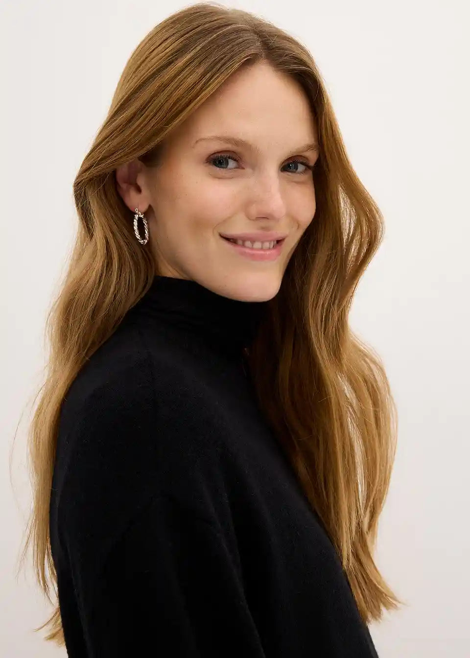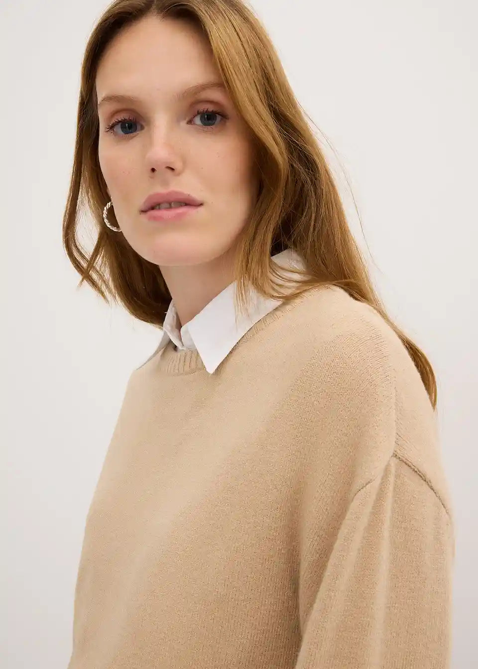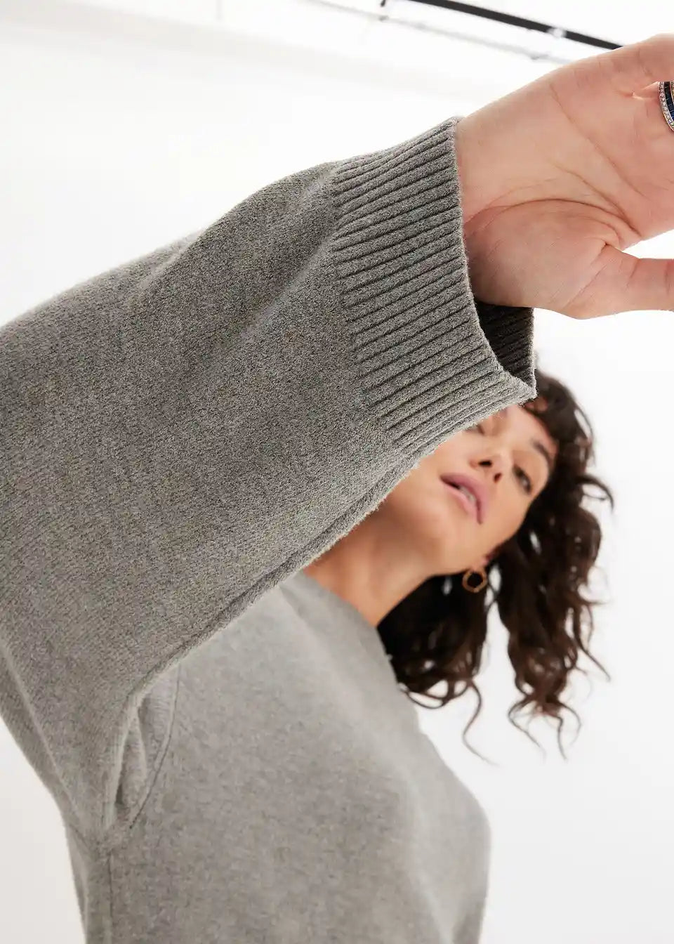 Dugi fino pleteni pulover s prorezima sa strane od materijala s udjelom viskoze