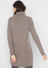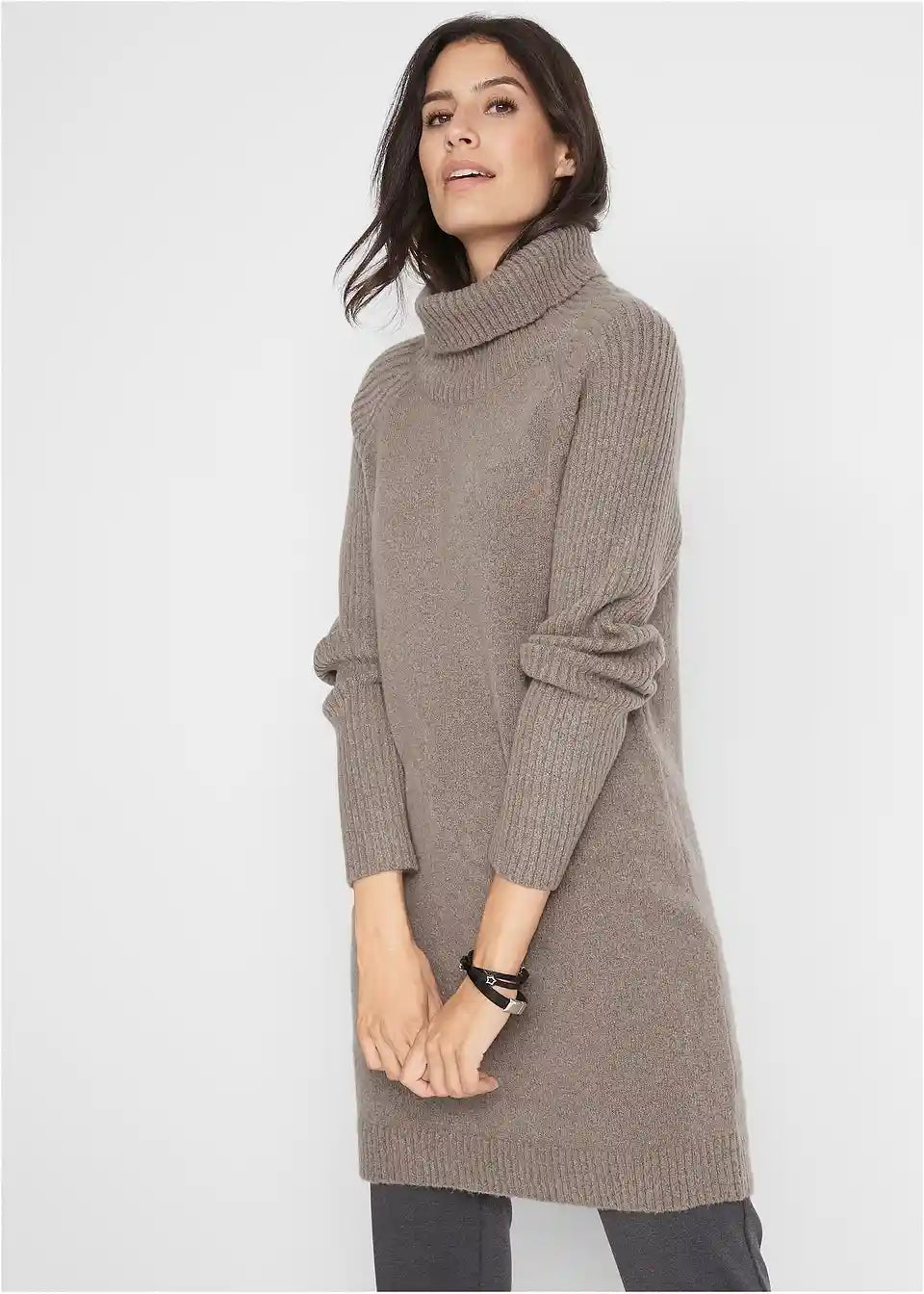 Dugi pulover s rol kragnom i rebrastim rukavima