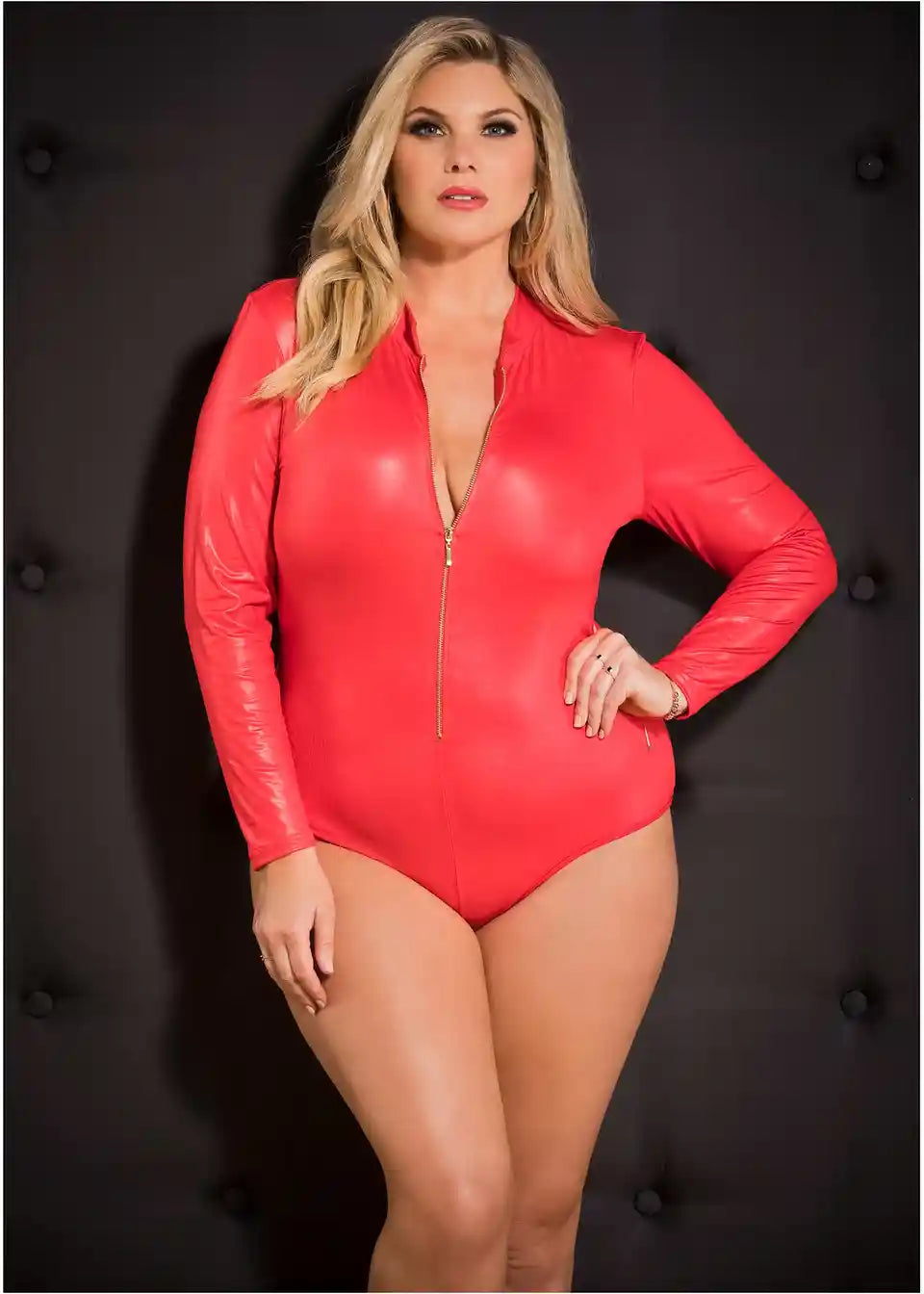 Seksi, seksi, seksi! Ovaj vrući body s dugim rukavima i ouvert dizajnom ističe vaše obline i pruža optimalnu udobnost zahvaljujući svom super elastičnom materijalu. Patentni zatvarač na dekolteu omogućuje vam da vaše grudi budu seksi u prvom planu te da pokažete onoliko svojih atributa koliko želite. Body je dostupan i u velikim veličinama.