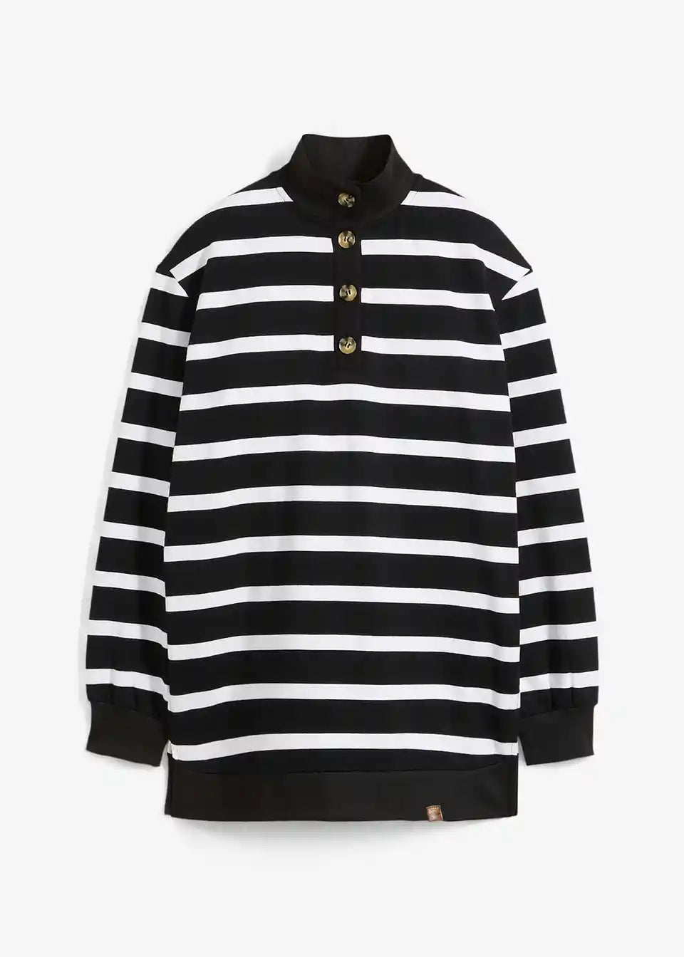 Ležerni dugi sweatshirt s Troyer ovratnikom i gumbima