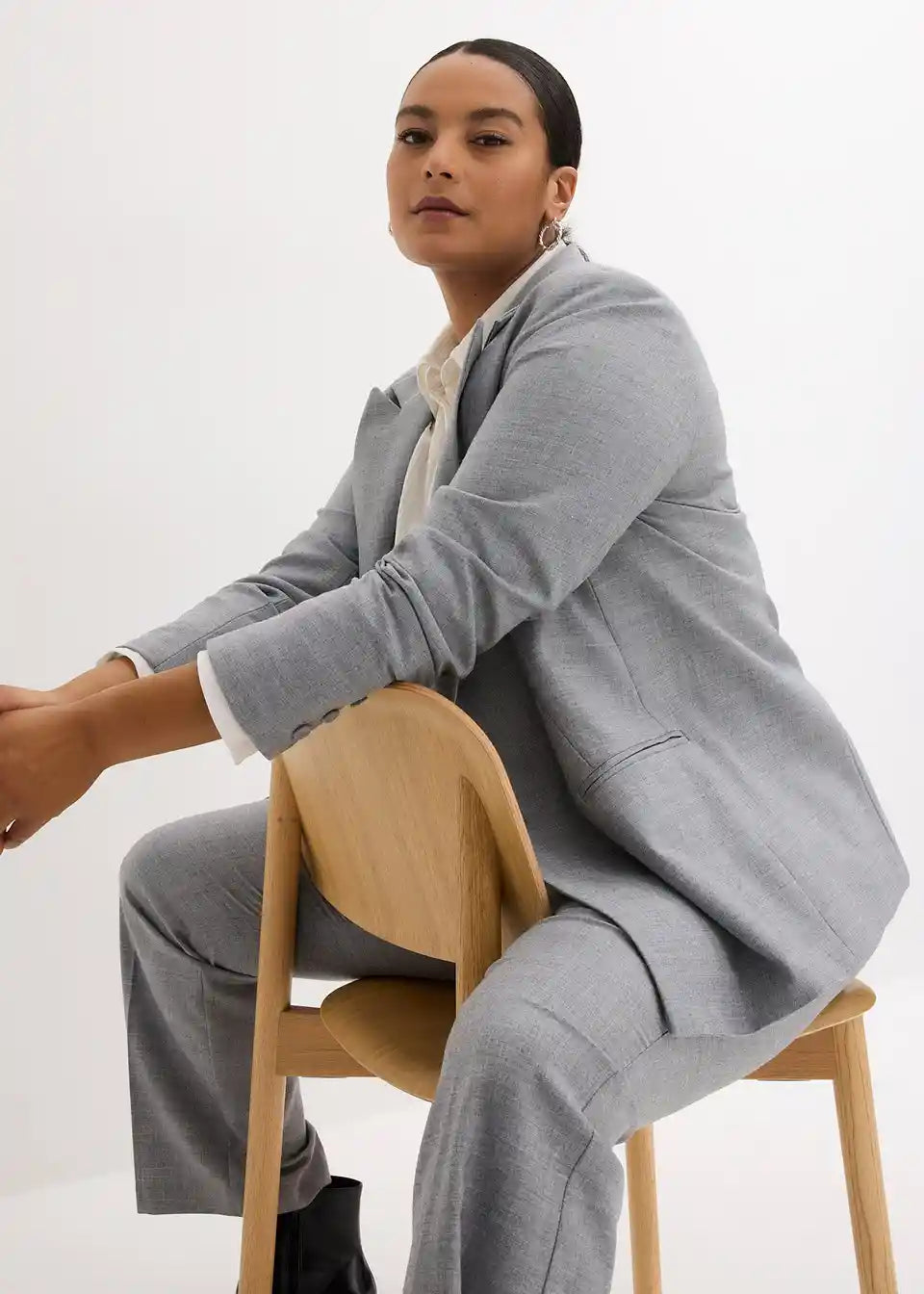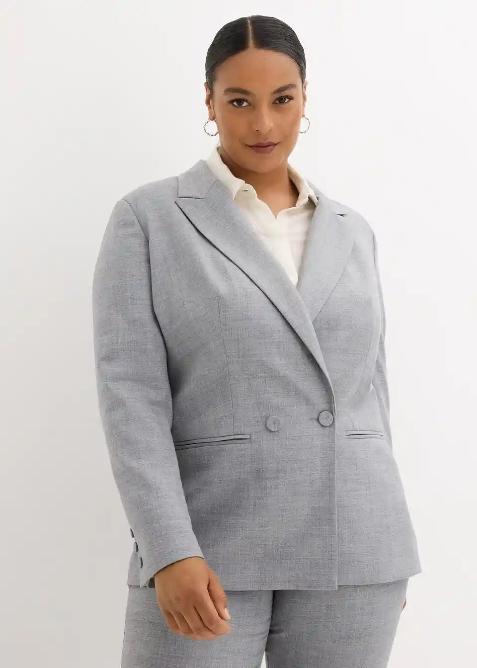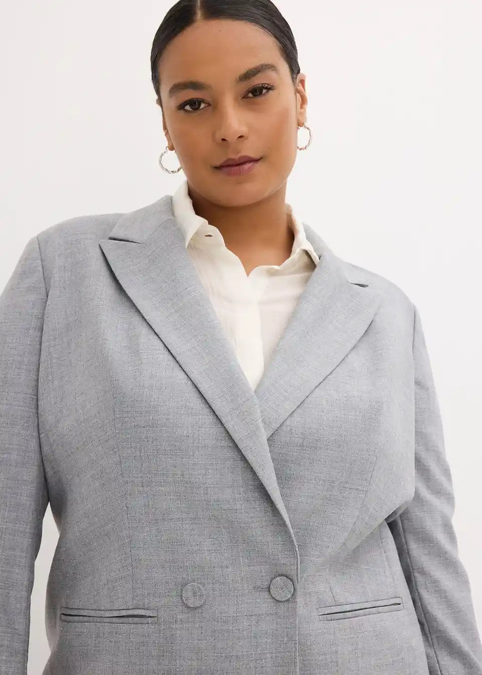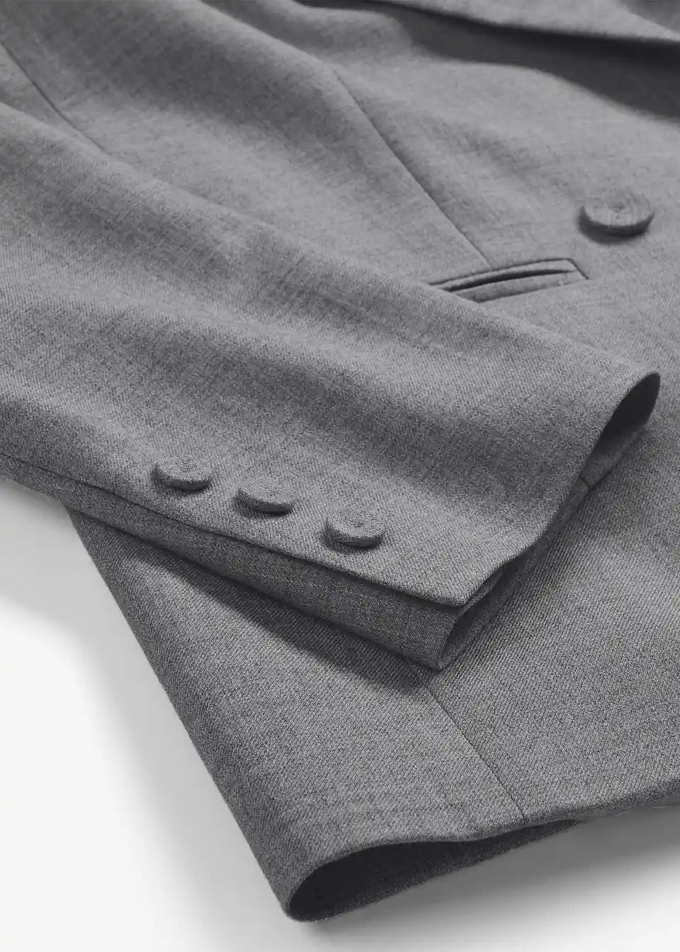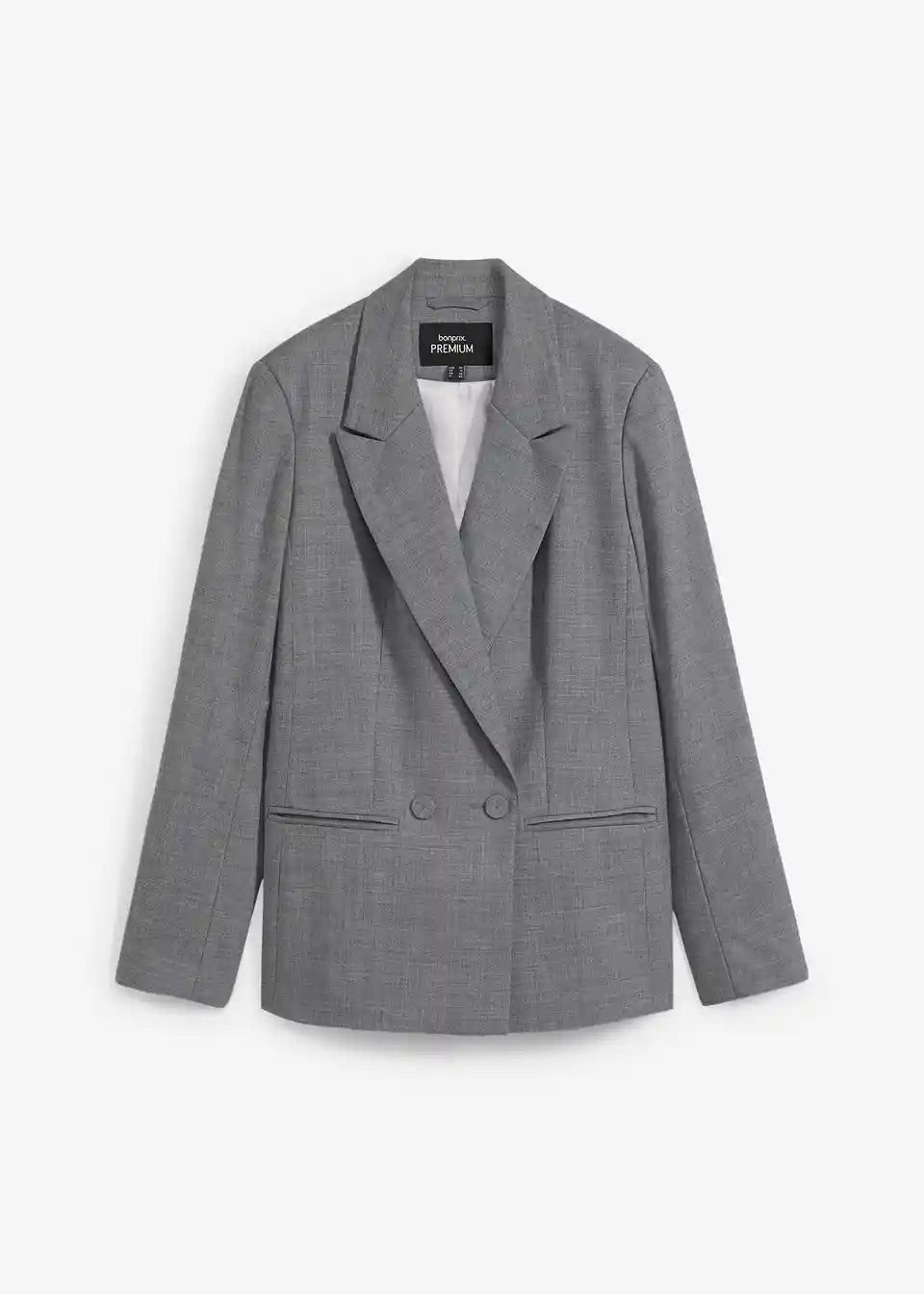 moderni sako s pojačanim ramenima od plemenite mješavine vune, s dugmadima prekrivenim tkaninom i paspuliranim džepovima