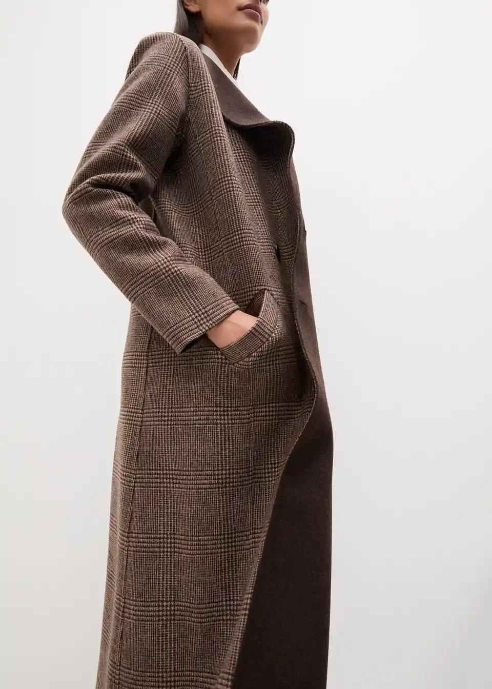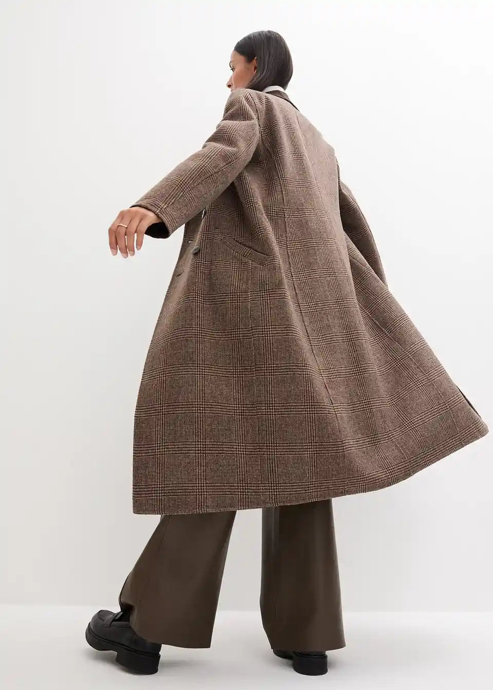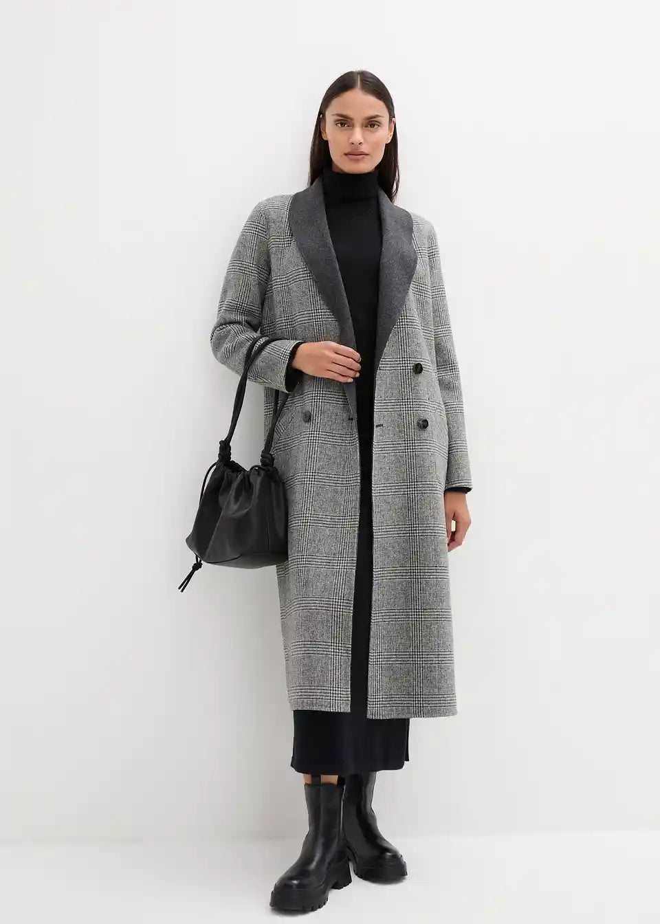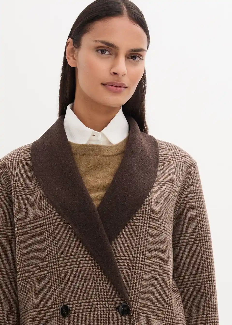 elegantan vuneni kaput s dvije strane: jednobojan s jedne strane, bezvremenski Glencheck-uzorak s druge strane