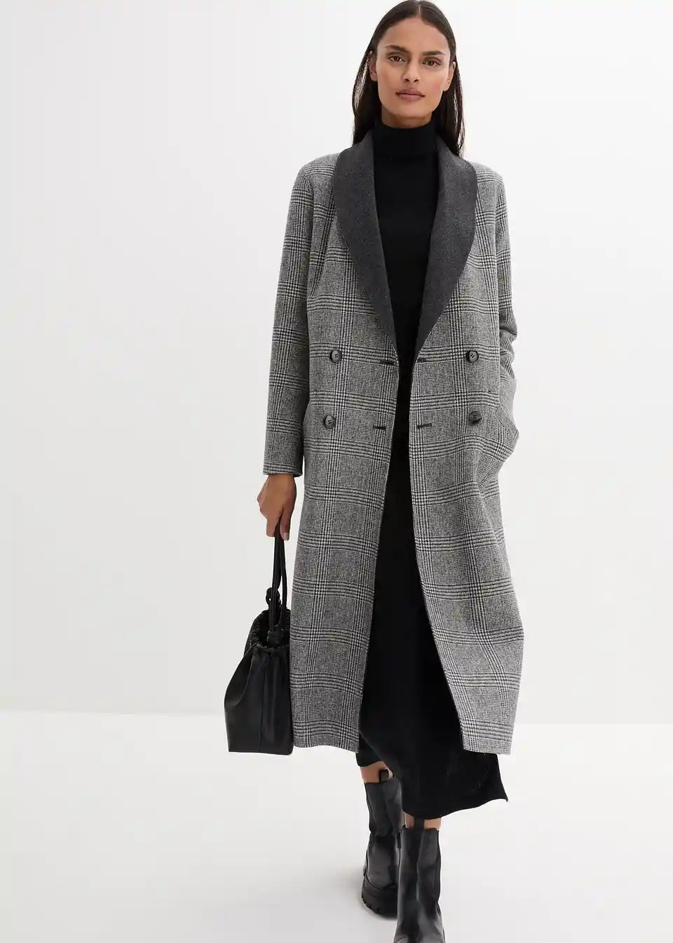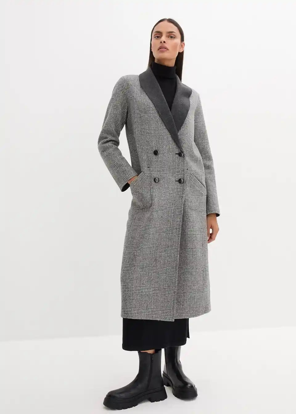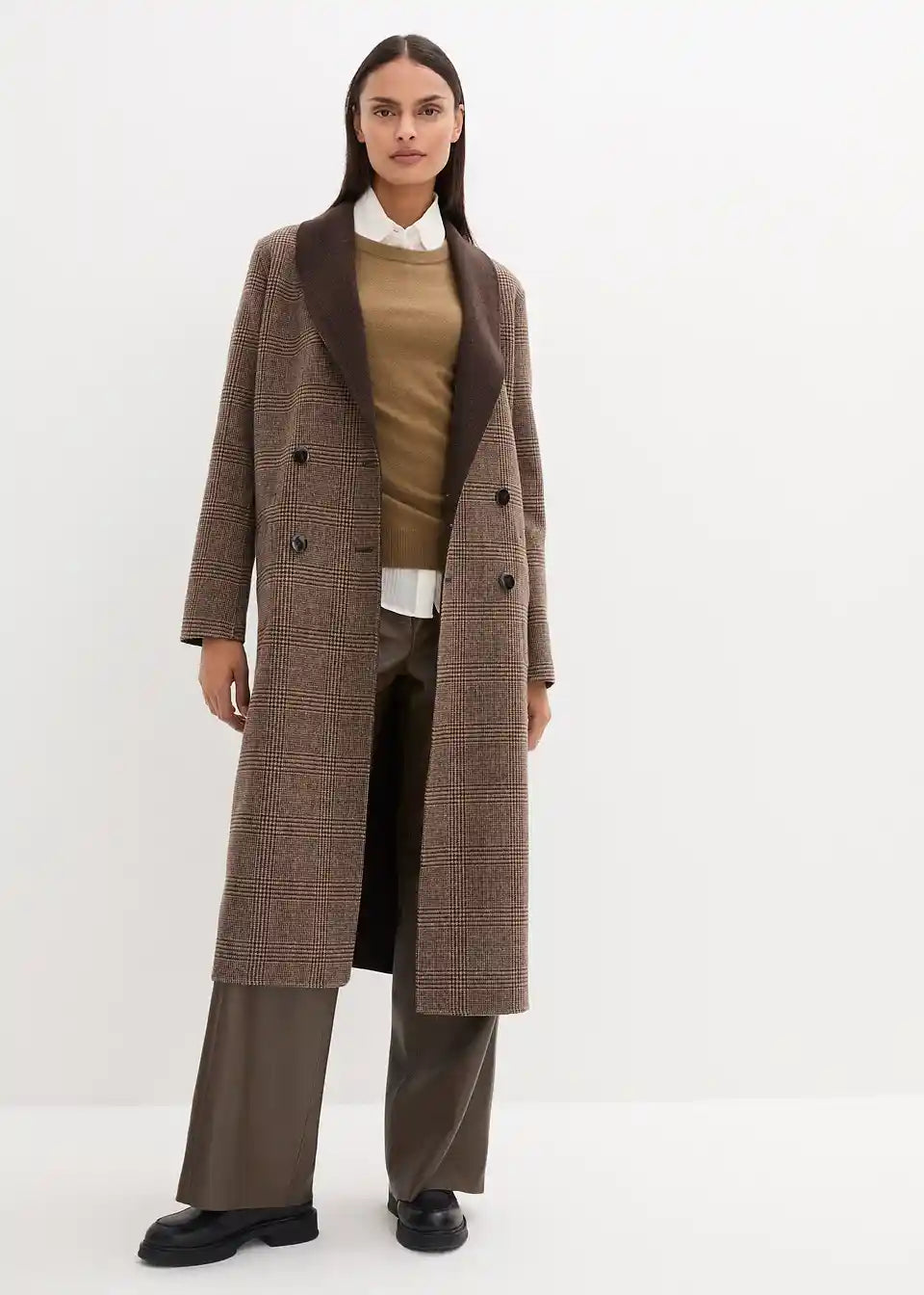 elegantan vuneni kaput s dvije strane: jednobojan s jedne strane, bezvremenski Glencheck-uzorak s druge strane