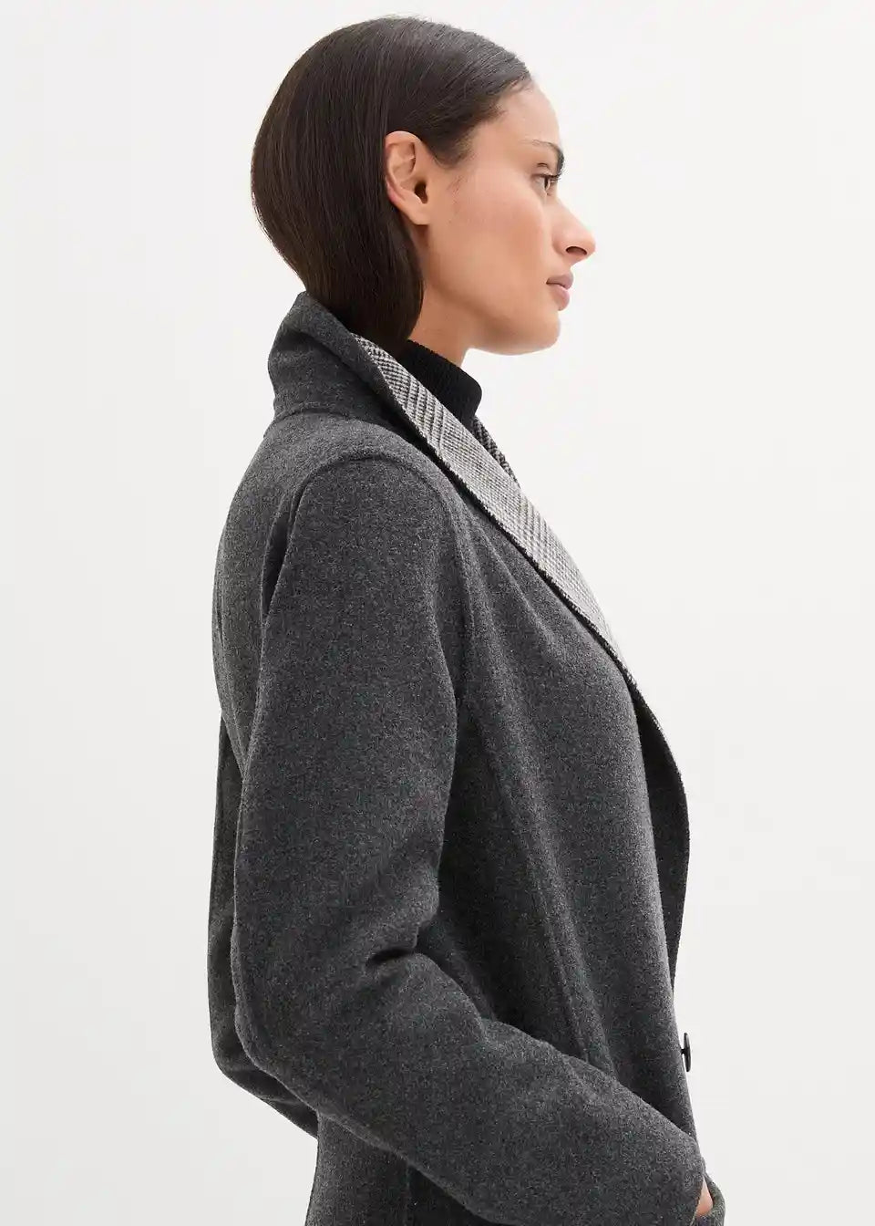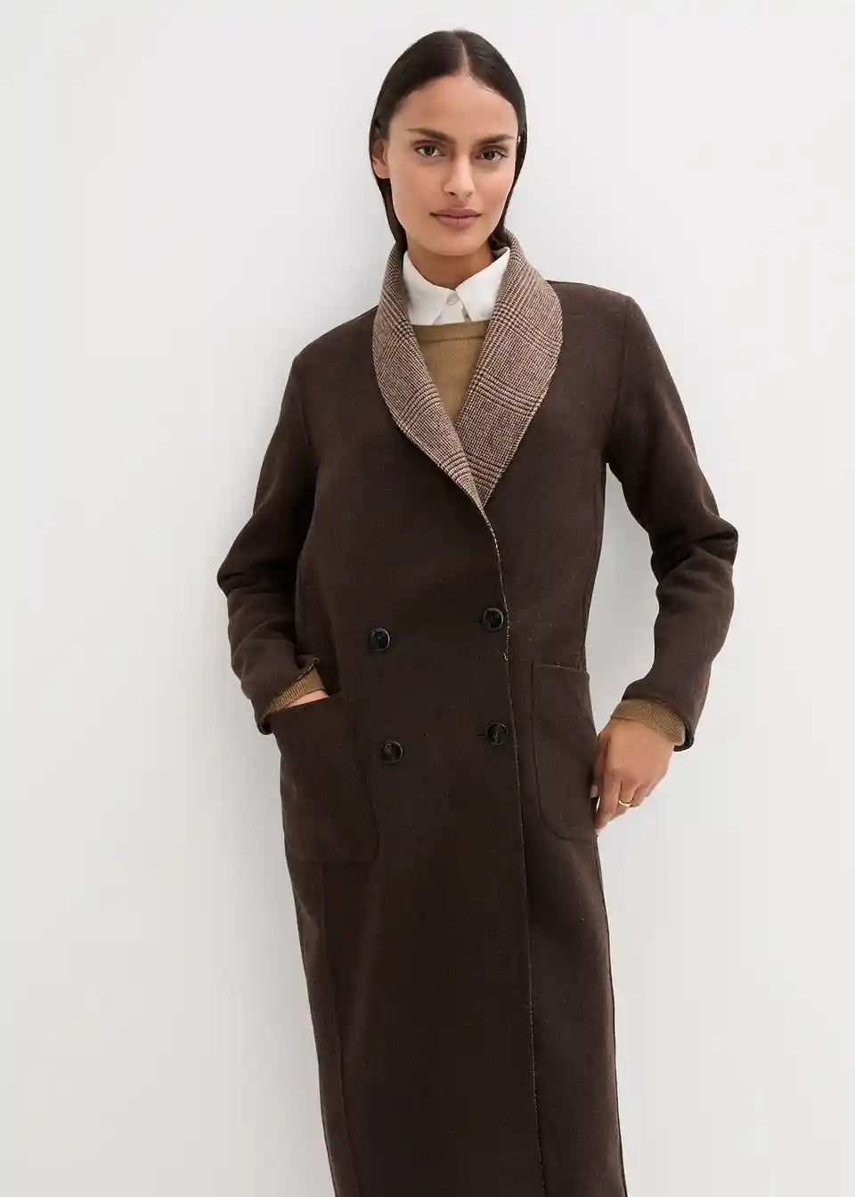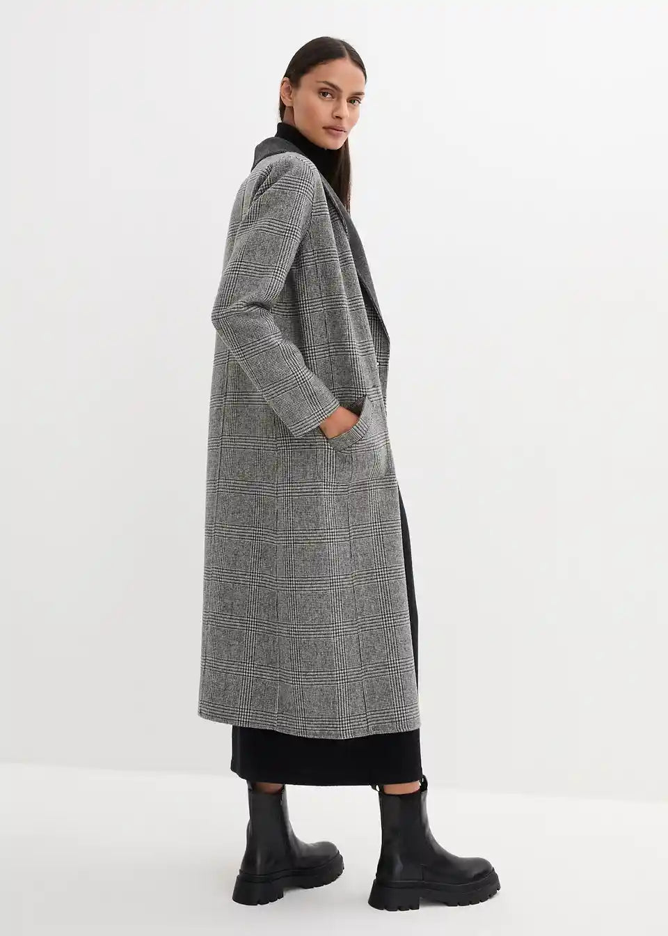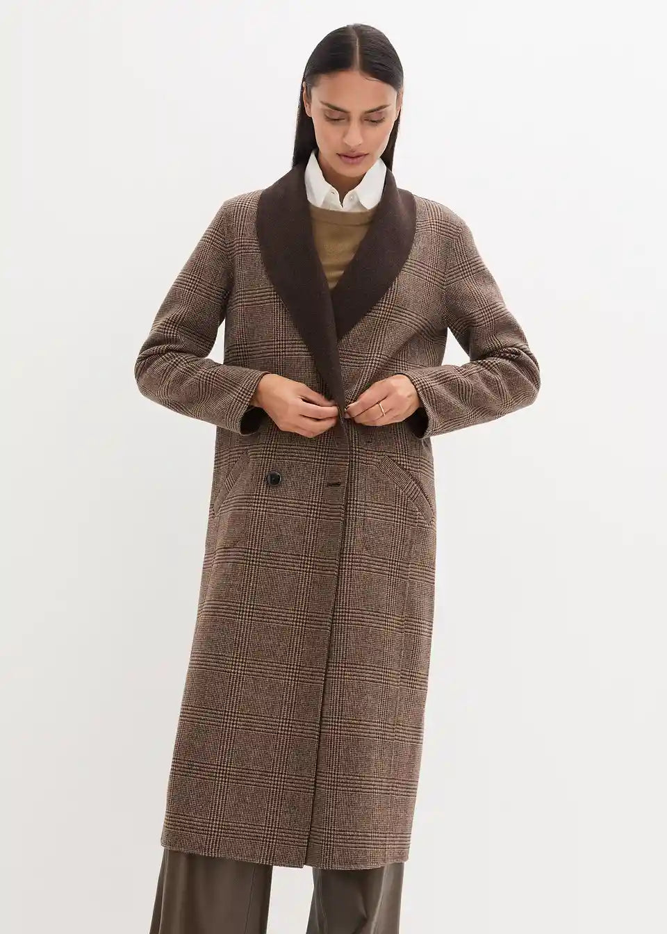 elegantan vuneni kaput s dvije strane: jednobojan s jedne strane, bezvremenski Glencheck-uzorak s druge strane