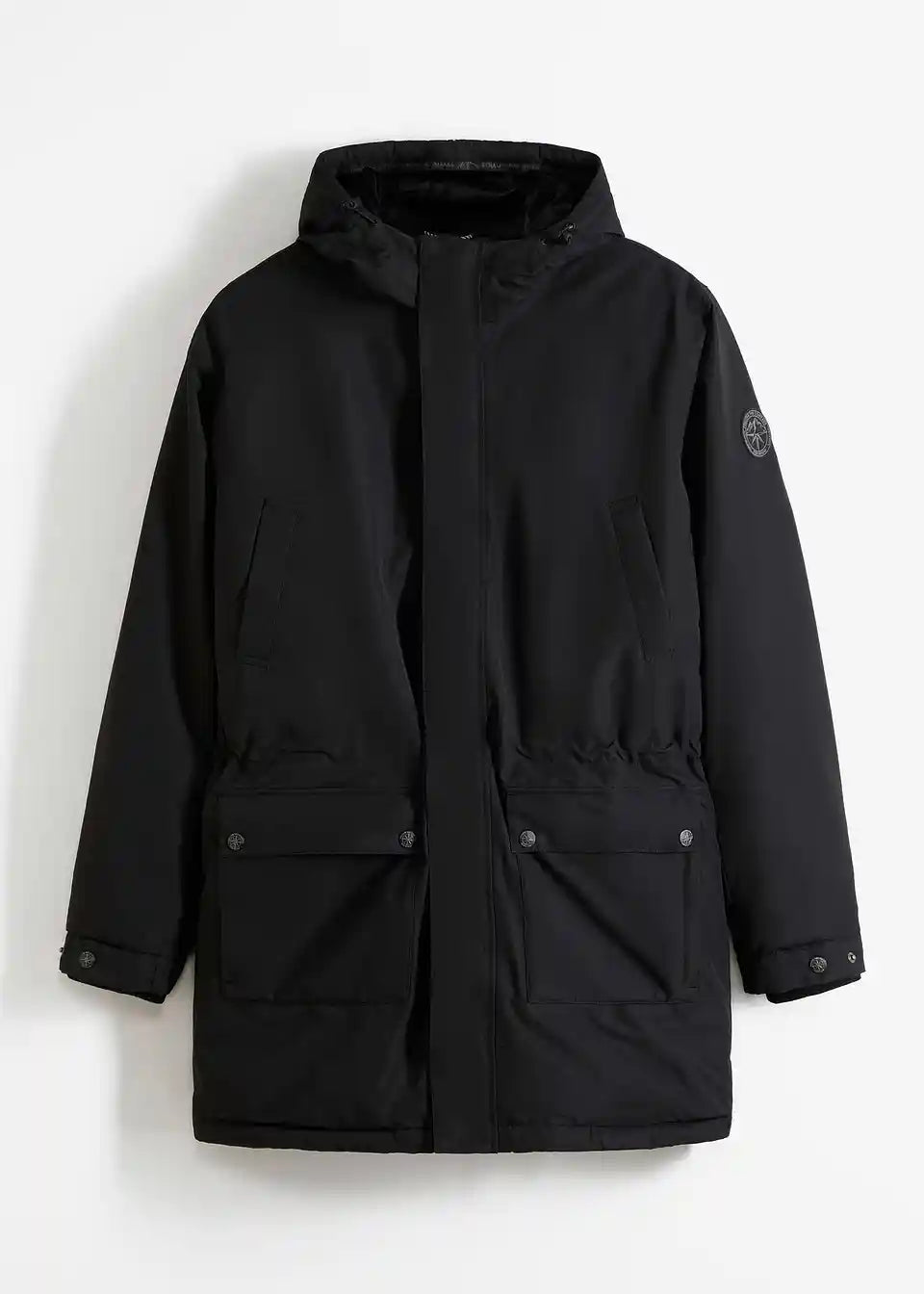 Moderan termo parka, sastavljen od hard-shell jakne i unutarnje prošivene jakne. Parka je proizvedena s recikliranim perjem i iznutra je prošivena. Osim toga, parka posjeduje više funkcija.