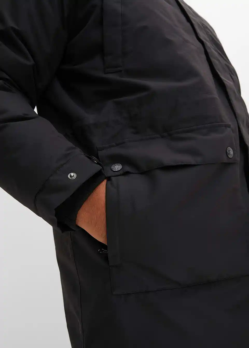 Moderan Termo Parka, sastoji se od tvrdog vanjskog sloja i unutarnje prošivene jakne. Parka je proizveden s recikliranim perjem i unutra je prošiven. Osim toga, Parka ima nekoliko funkcionalnosti.
