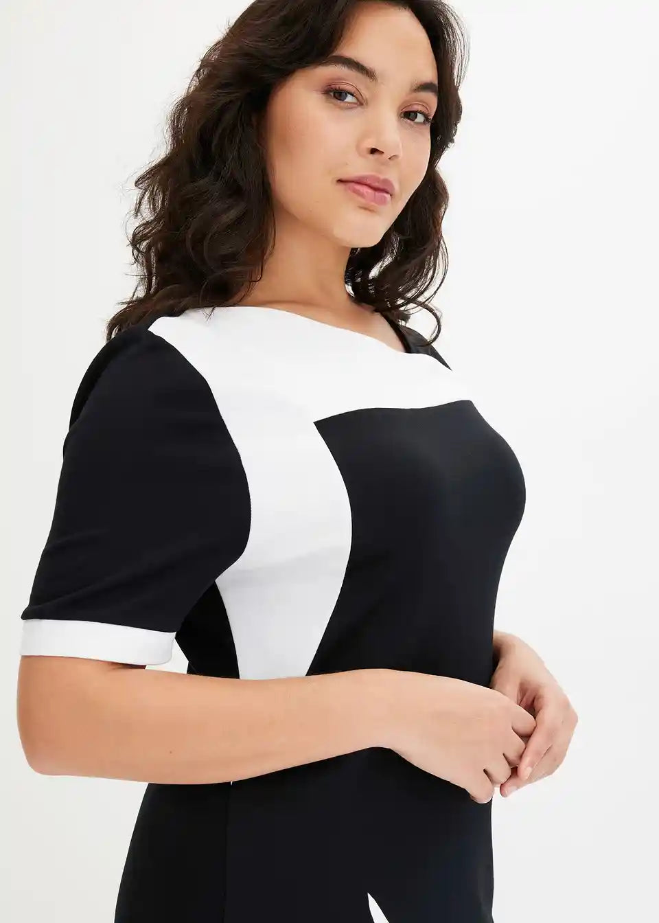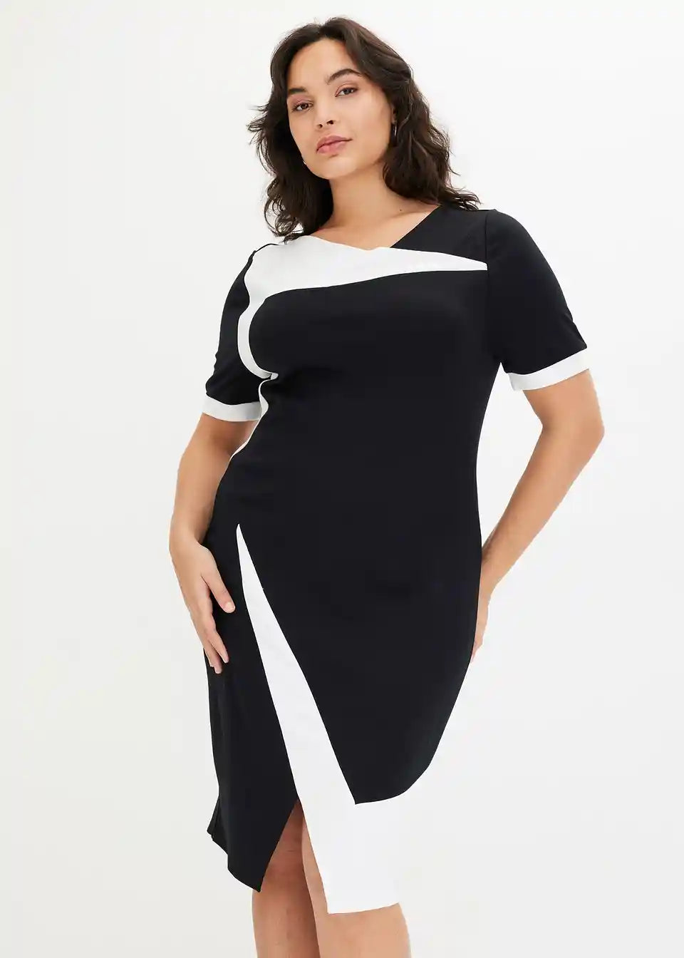 Klasična etui haljina s modernim V-izrezom. Kroj uz tijelo.