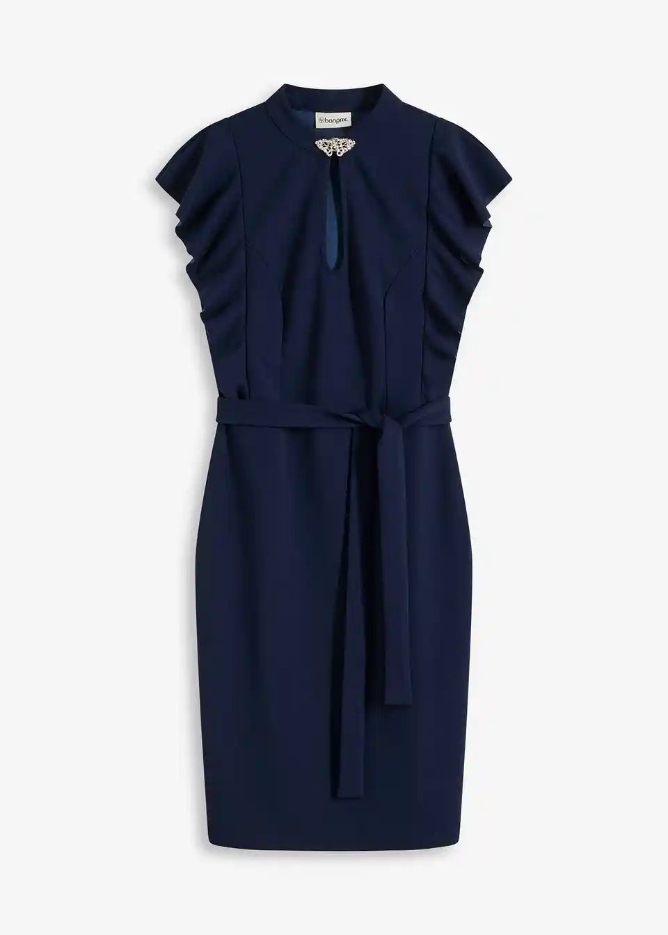 Moderno i ženstveno: Etuikleid s volan rukavima i visokim ovratnikom, te kopčanjem u obliku modnog dodatka na izrezu