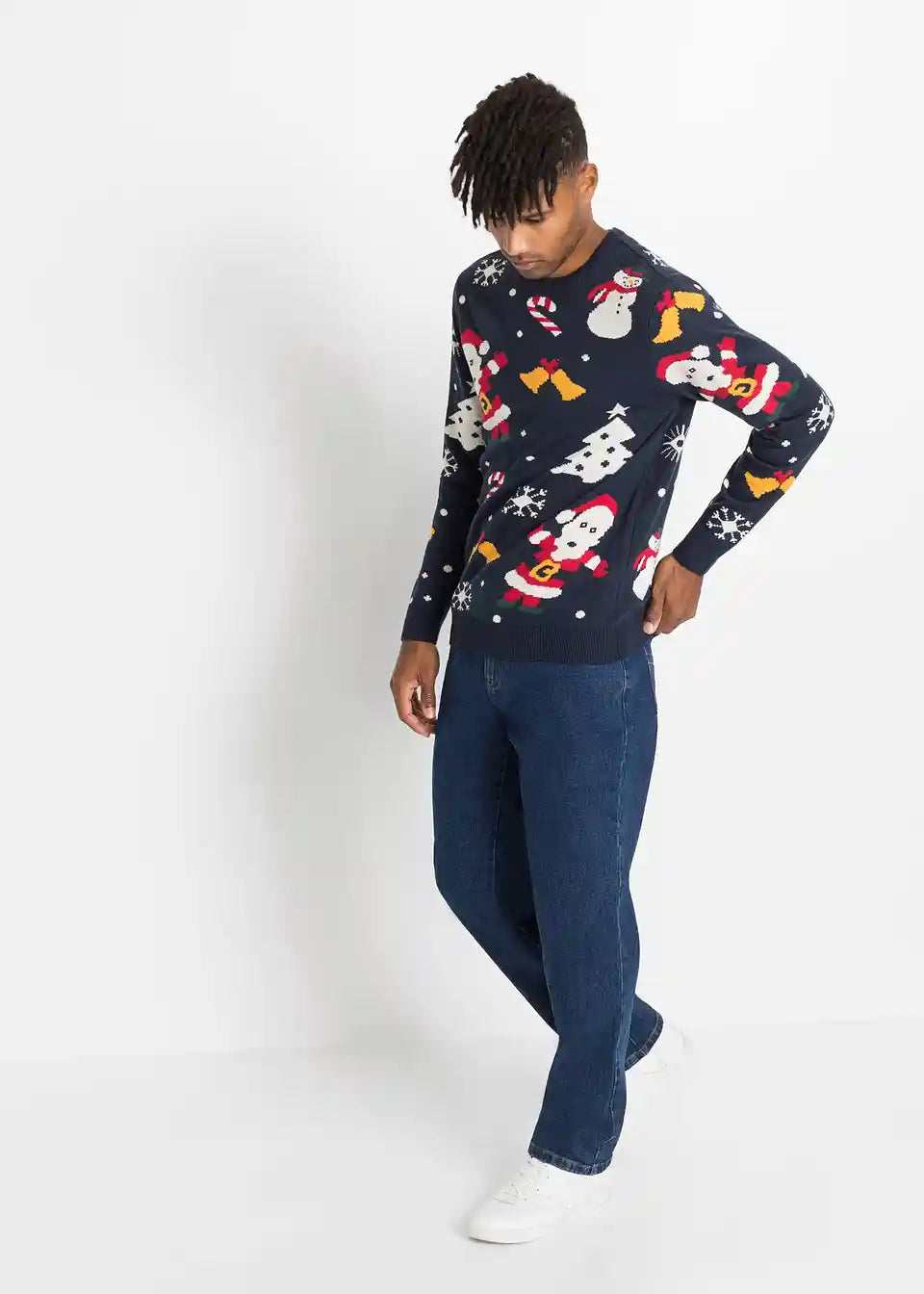 Lijepi pulover s božićnim motivom i rebrastim obrubima, periv u perilici