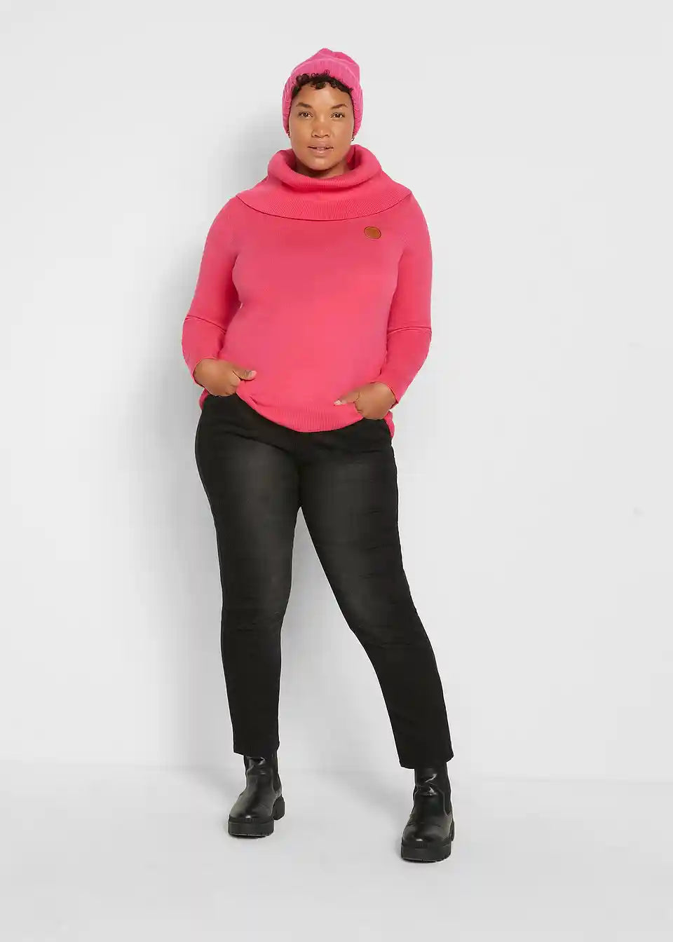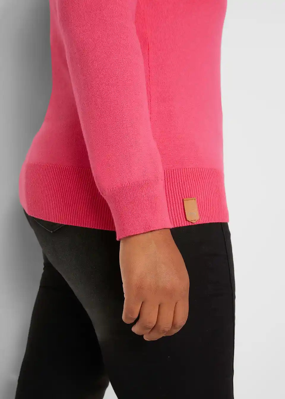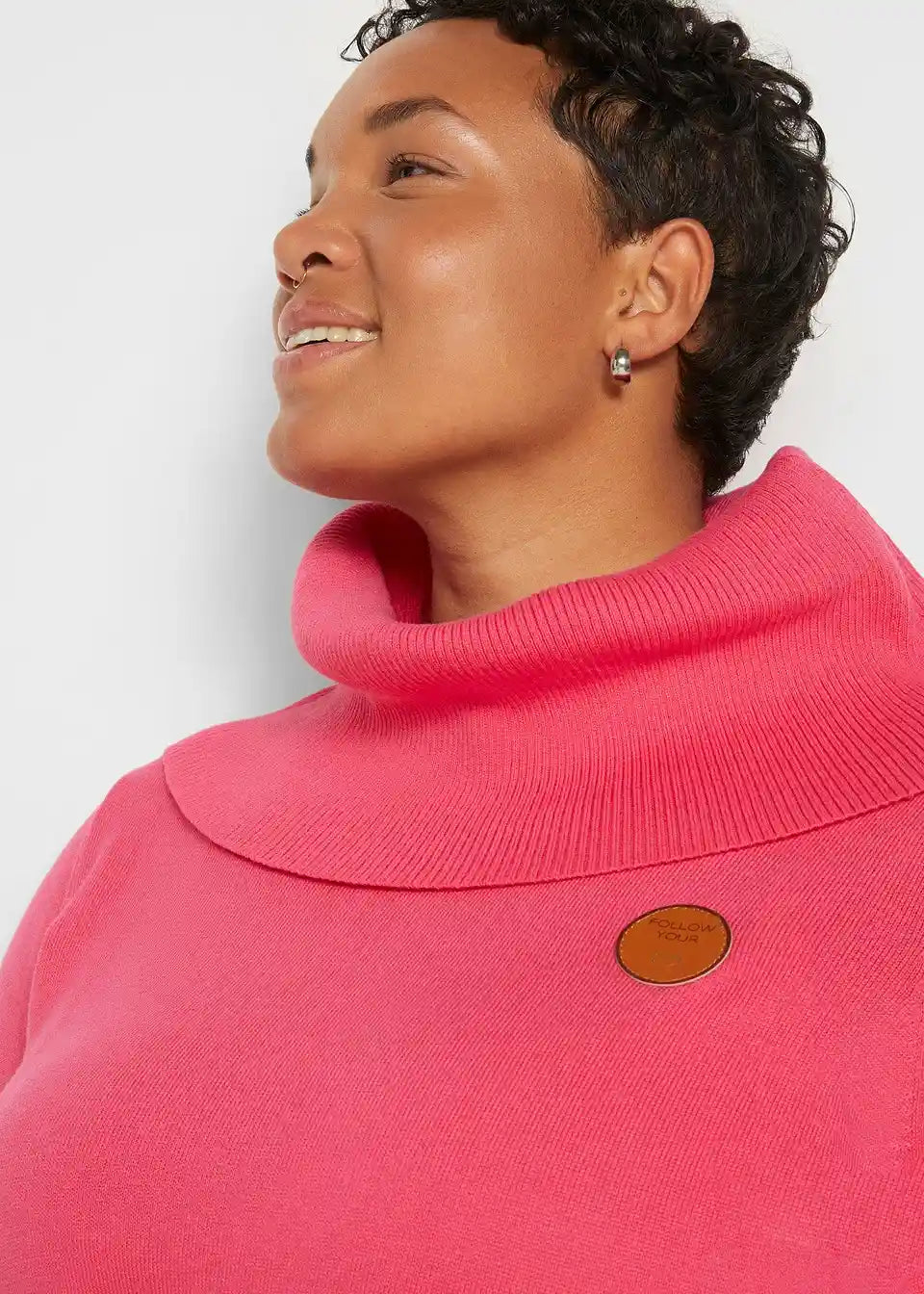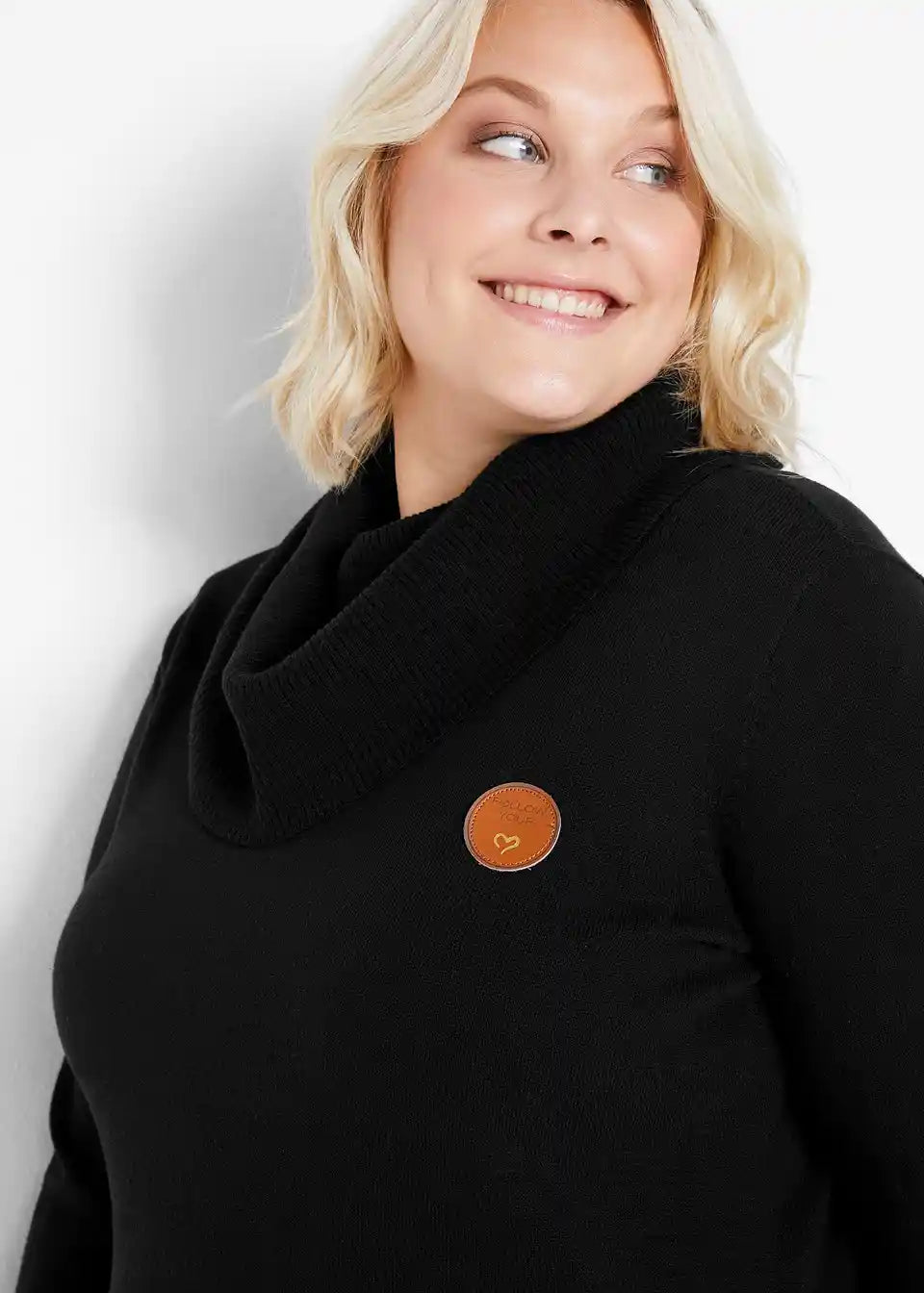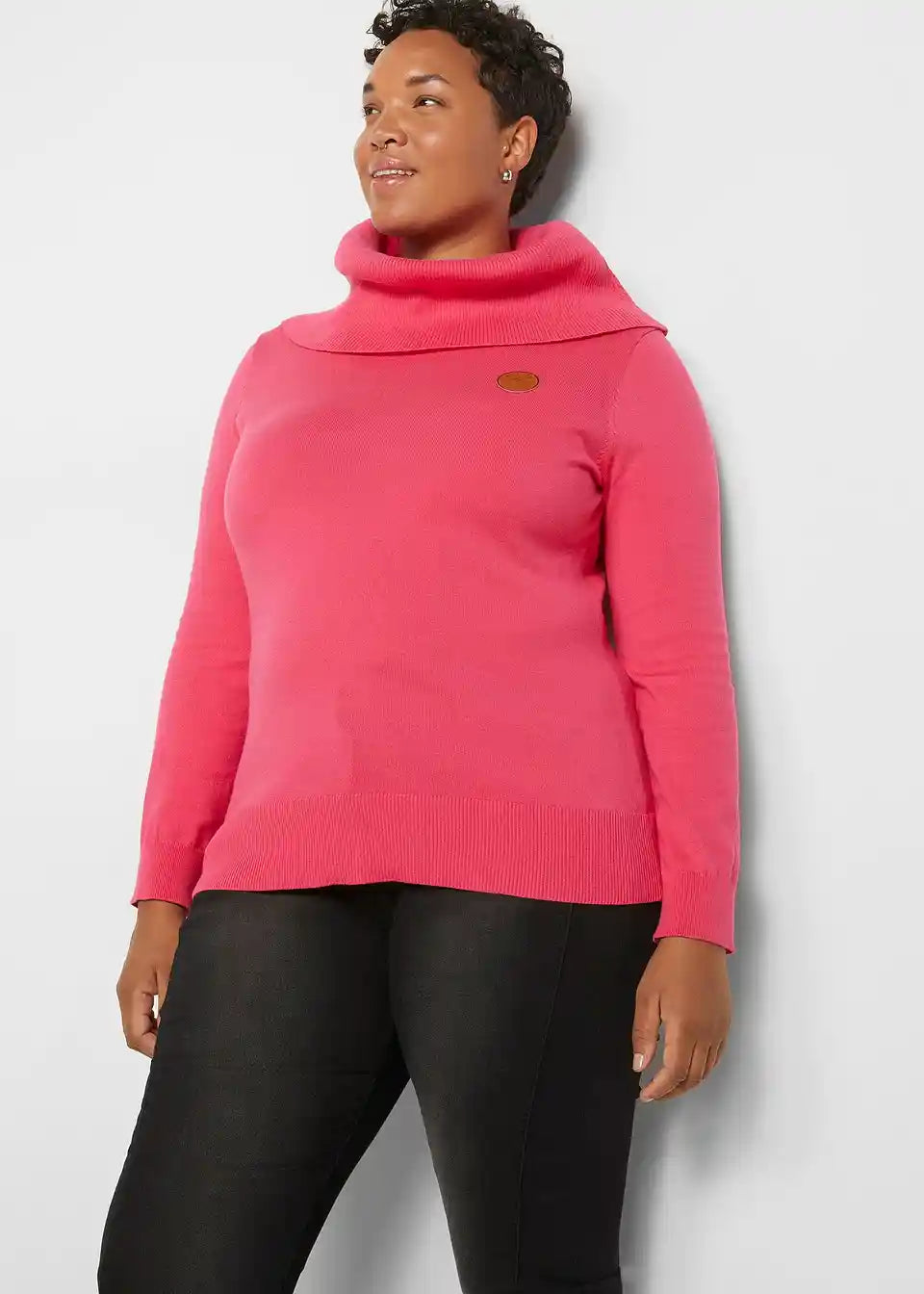 Udoban pulover s rol ovratnikom i kožnim detaljima