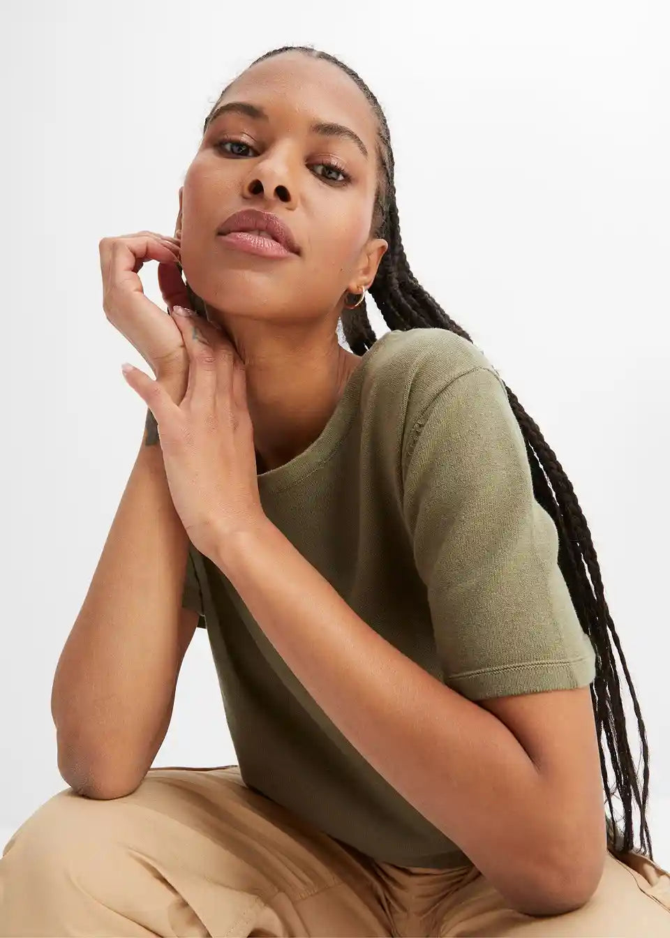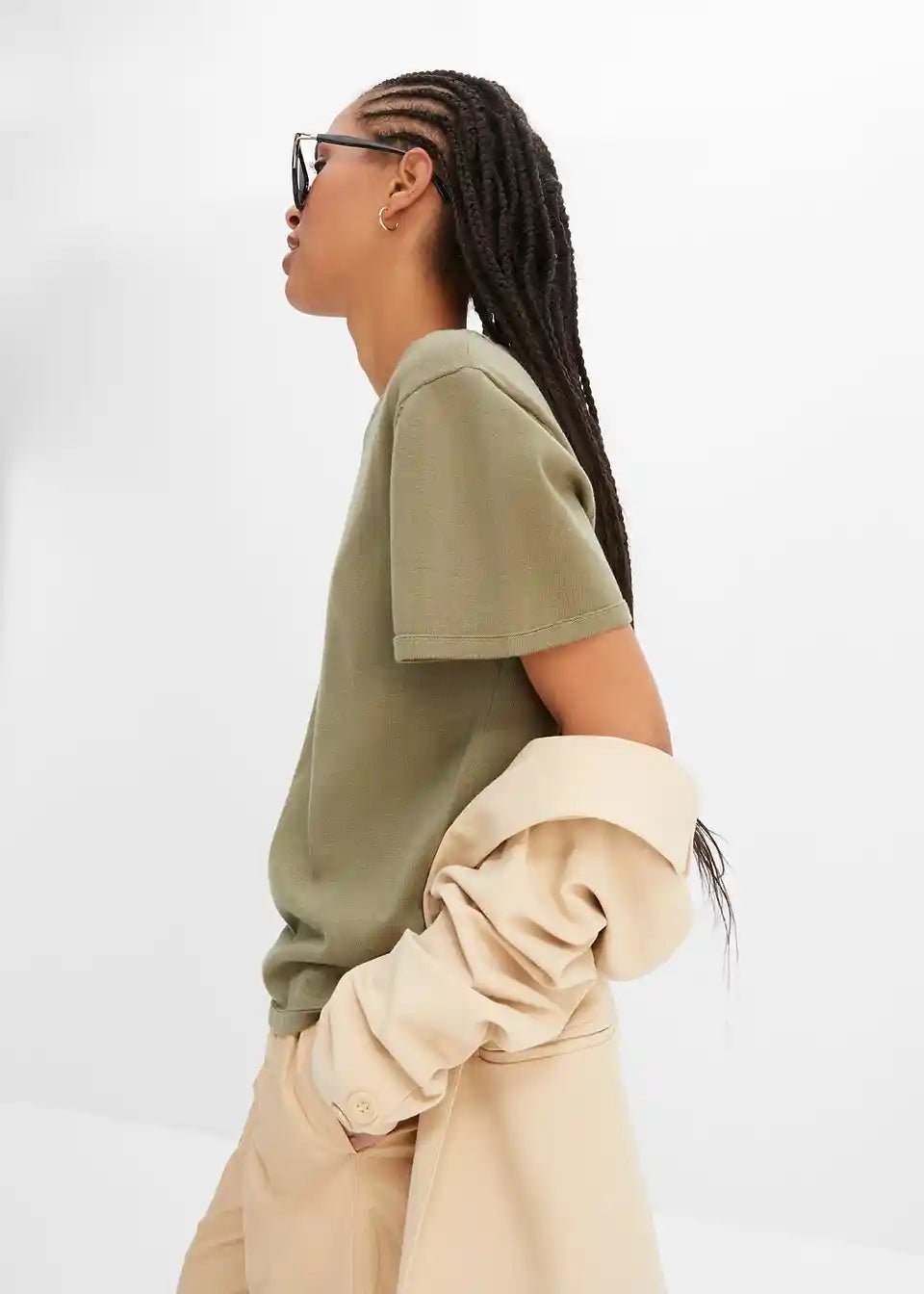 Pamučna Majica od Finog Pletiva s Okruglim Izrezom