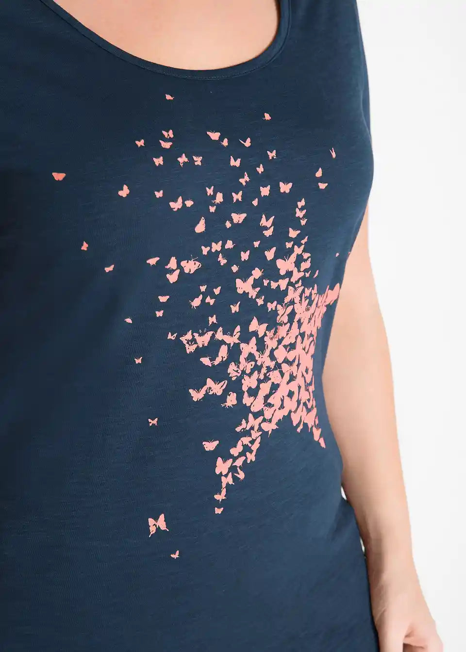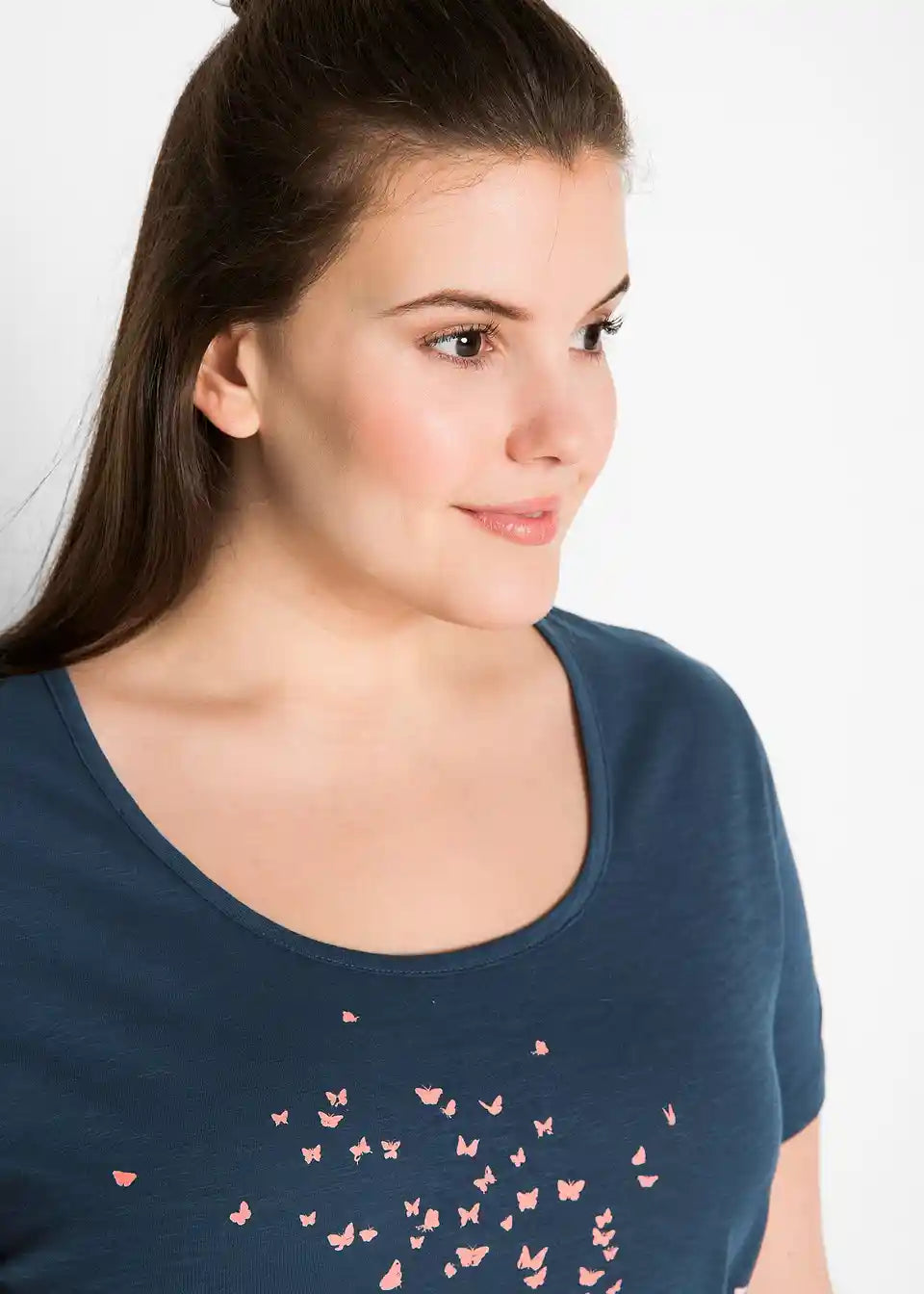 Ova majica s poludugim rukavima od flammgarn tkanine udobno uokviruje ženske konture svojim ležernim, širokim krojem. Model elegantno prikriva i osigurava ugodan osjećaj tijela. Vizualno, majica marke bpc oduševljava svojim prekrasnim printom sprijeda. Kvaliteta flammgarn tkanine lagano je melirana i naglašava lijep dizajn. Kombinirano s rastezljivim trapericama, atraktivna majica dolazi posebno do izražaja.