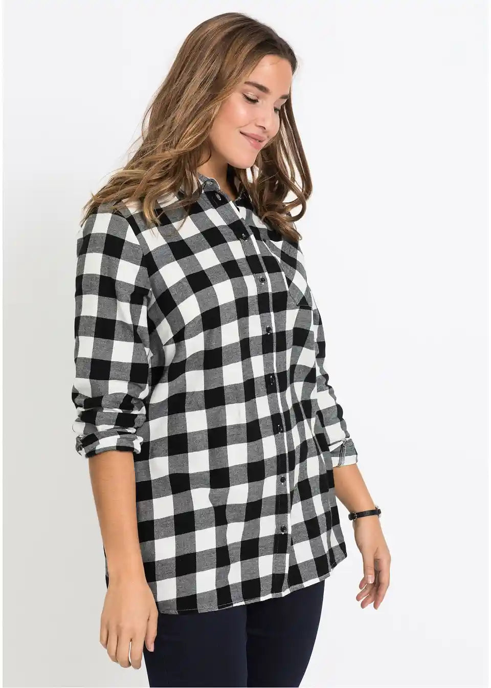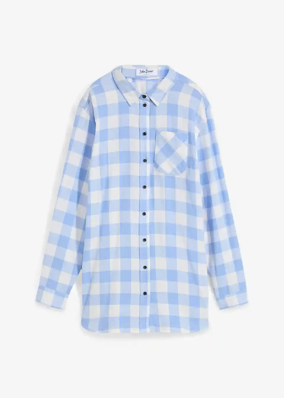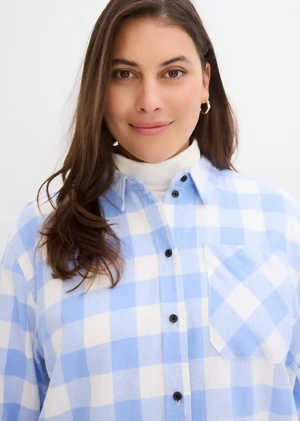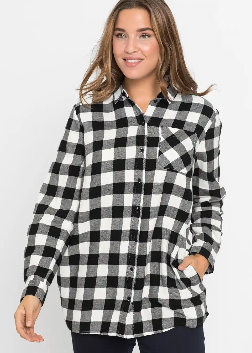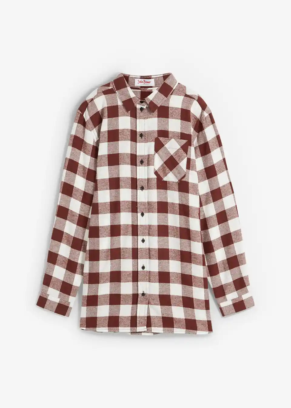 Ova bluza dugih rukava brenda John Baner pruža ženama moderan izgled. Odlikuje se mekom flanelskom tkaninom i privlačnim kariranim uzorkom. Model se ističe dugim krojem i blago zaobljenim rubom. Flanel duga bluza ima ležeran kroj i može se zakopčati s gumbima. Jedan džep na prsima zaokružuje opušteni dizajn.